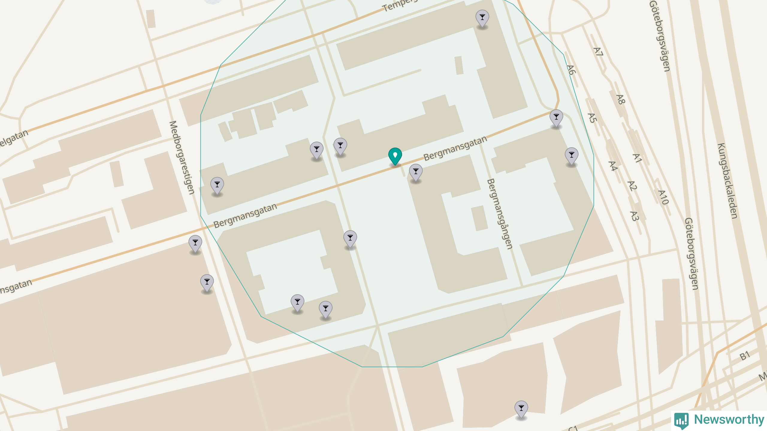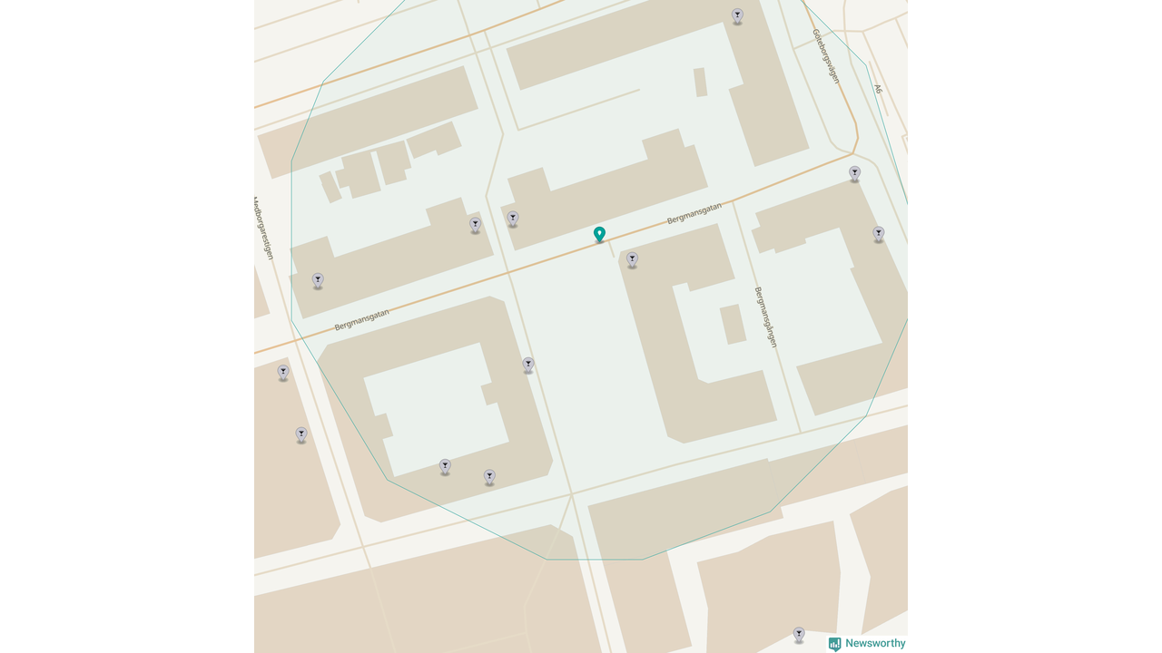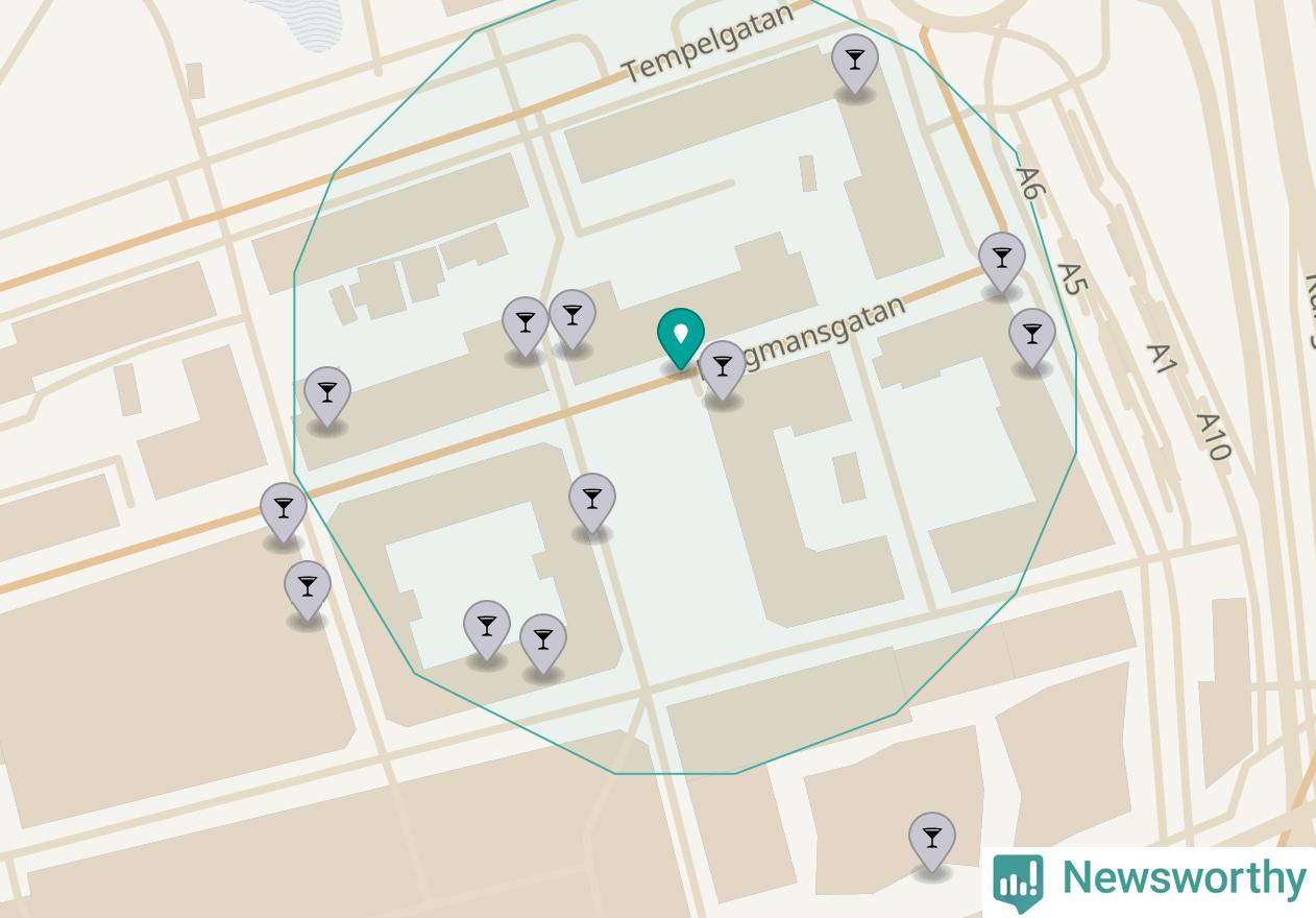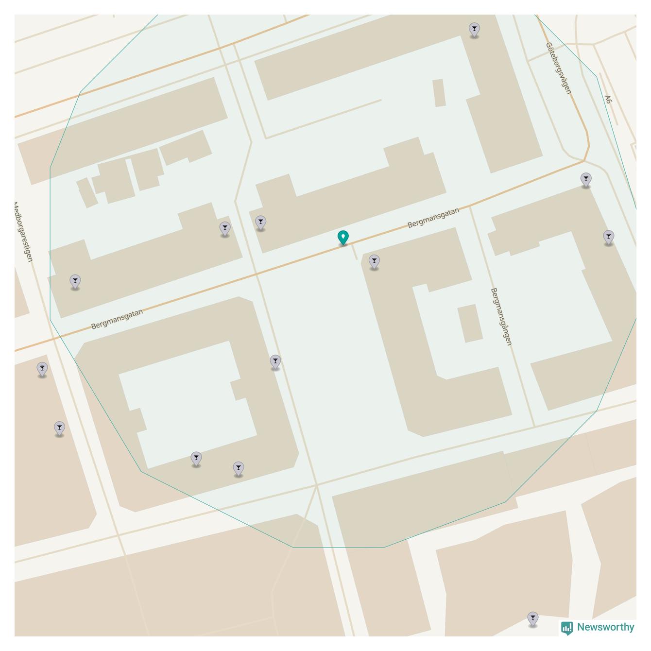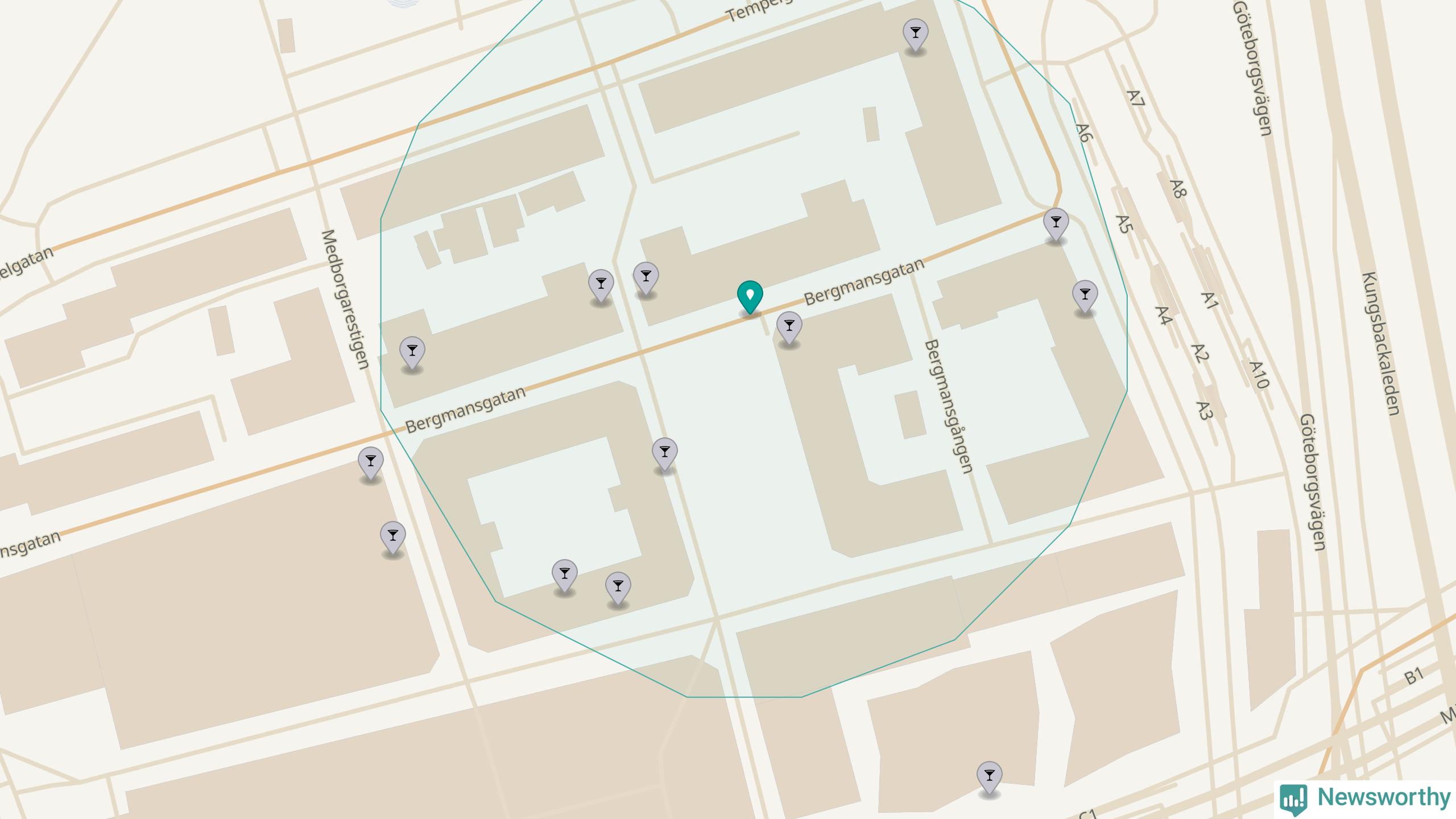 Om du står på Bergmansgatan har du sisådär tio krogar, restauranger eller hotell med serveringstillstånd inom en radie på 100 meter. Det är den krogtätaste platsen i Mölndals kommun.