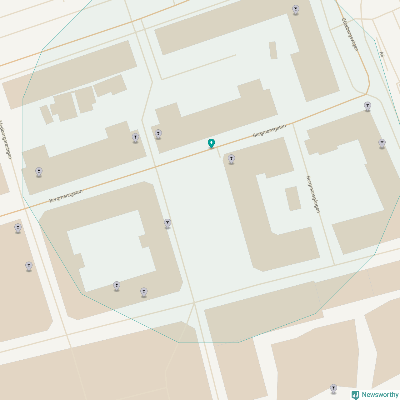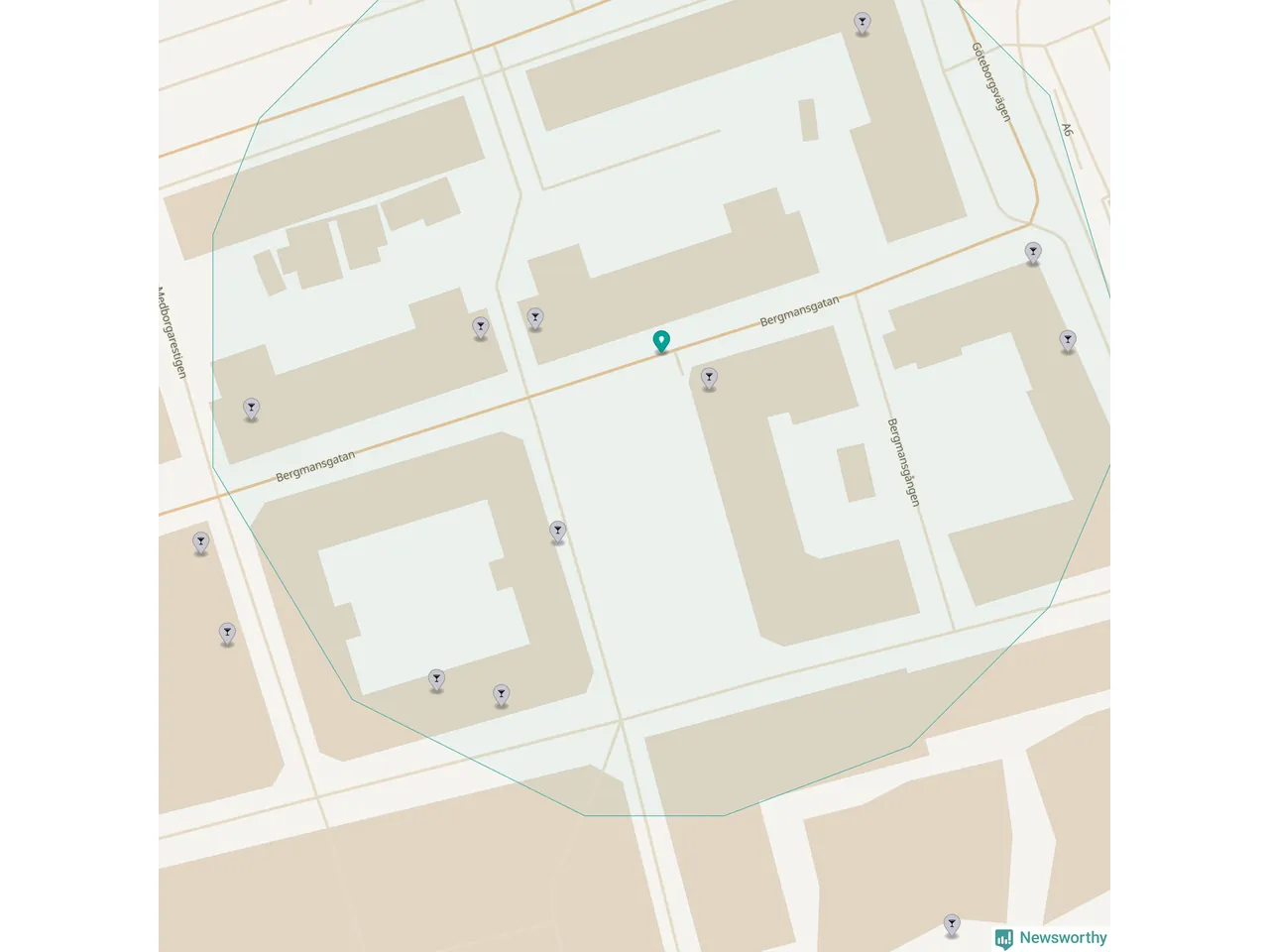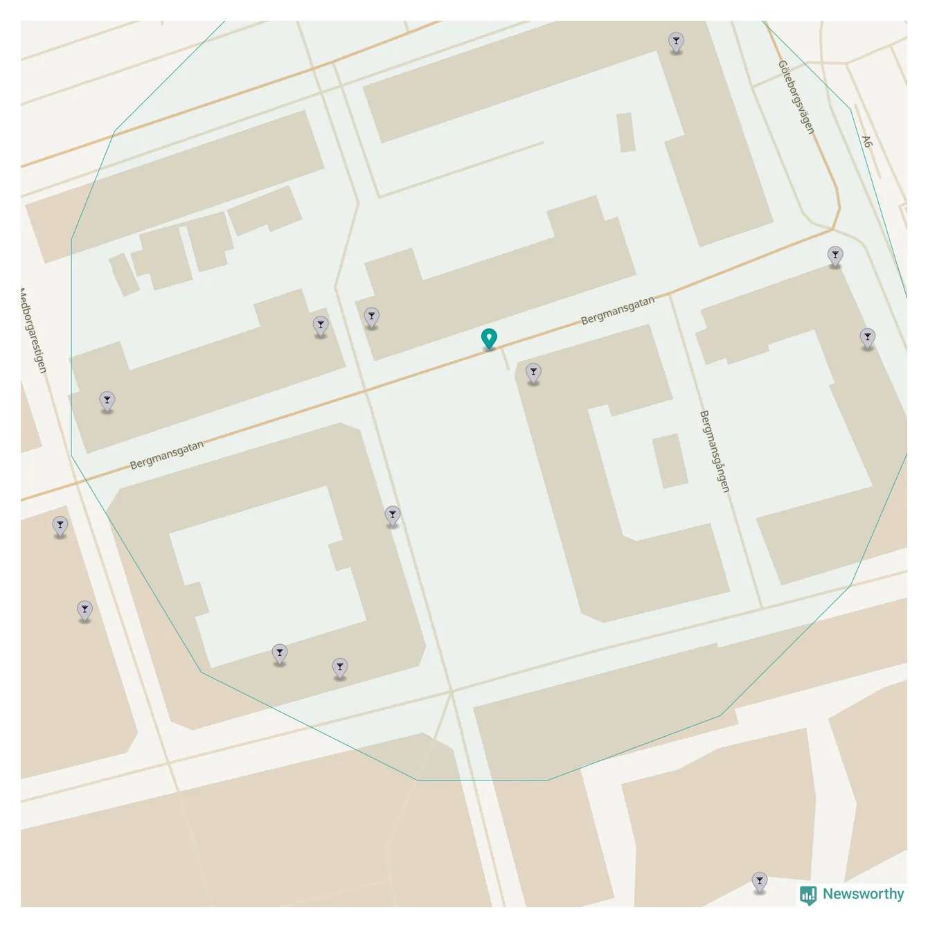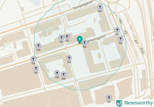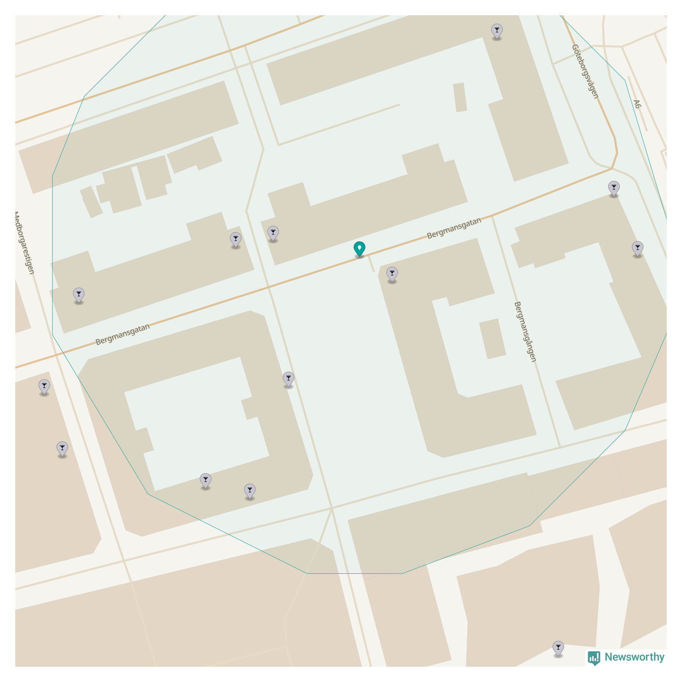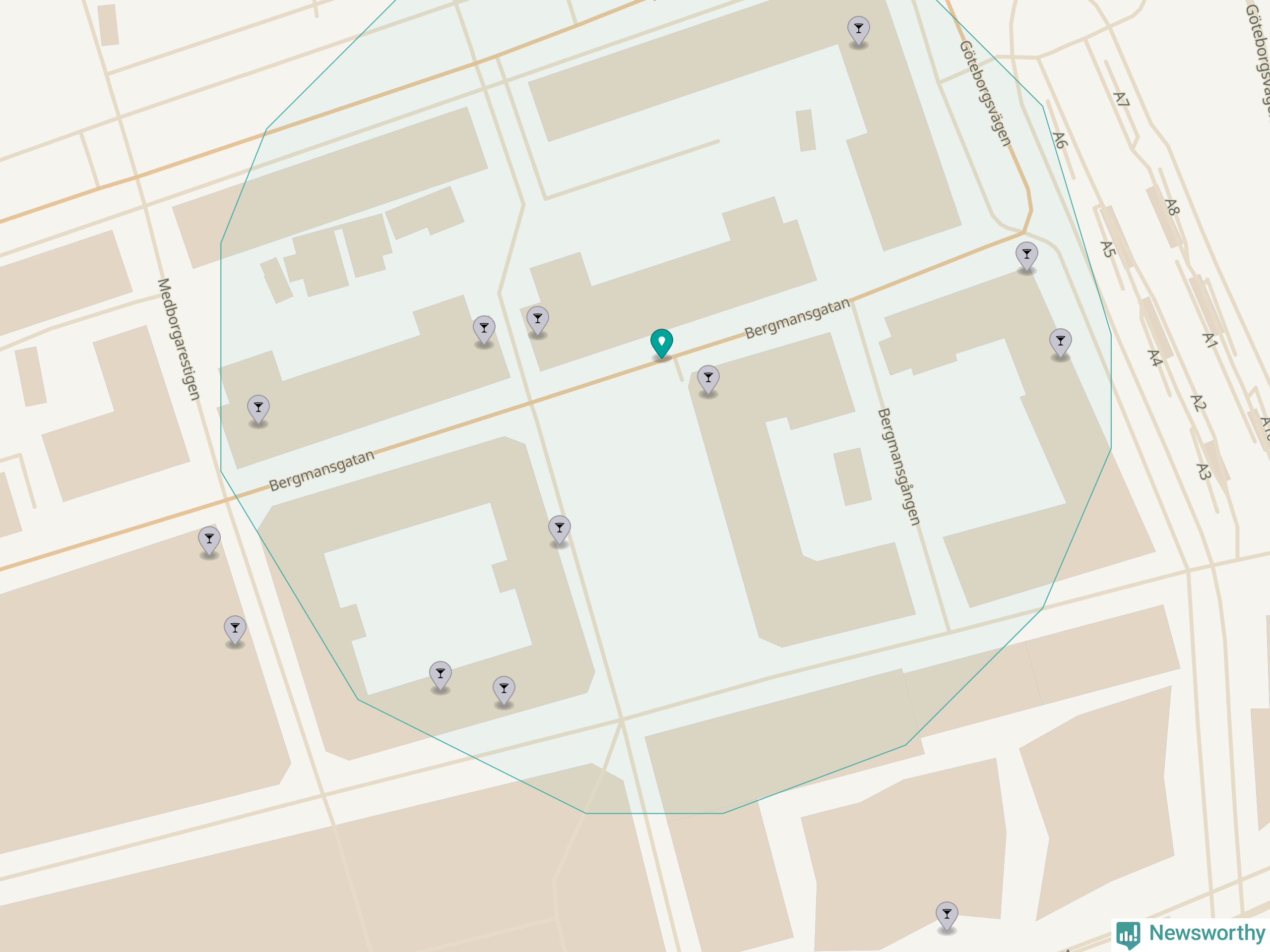 Om du står på Bergmansgatan har du sisådär tio krogar, restauranger eller hotell med serveringstillstånd inom en radie på 100 meter. Det är den krogtätaste platsen i Mölndals kommun.