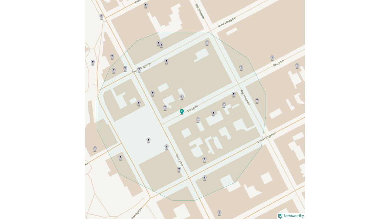 Tätast ligger förstås barerna ofta centralt i större städer. Den plats i Kalmar län där de ligger tätast ligger i Kalmar kommun: Om du står på Storgatan har du 25 krogar, restauranger eller hotell med serveringstillstånd inom en radie på 100 meter.