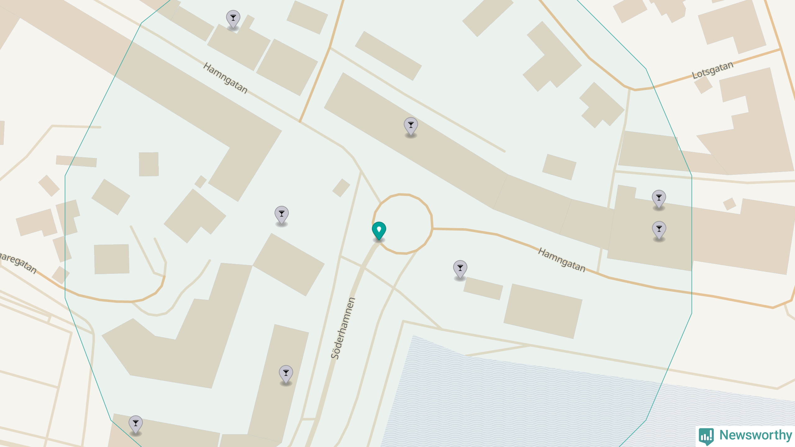Om du står på Hamngatan har du åtta krogar, restauranger eller hotell med serveringstillstånd inom en radie på 100 meter. Det är den krogtätaste platsen i Vaxholms kommun.