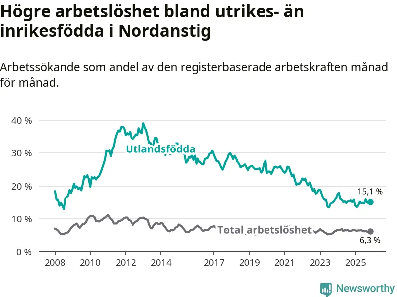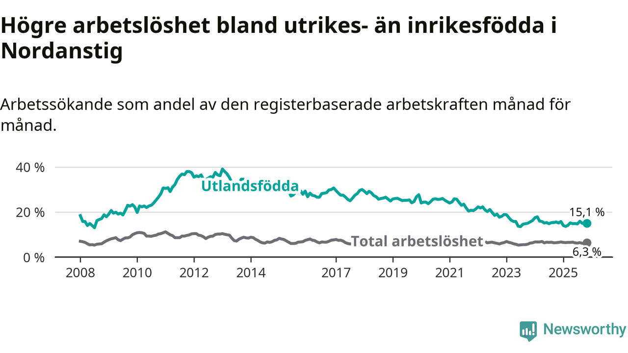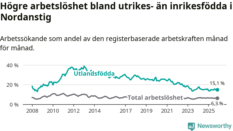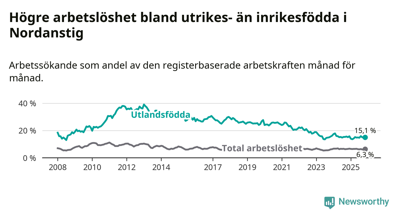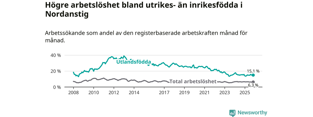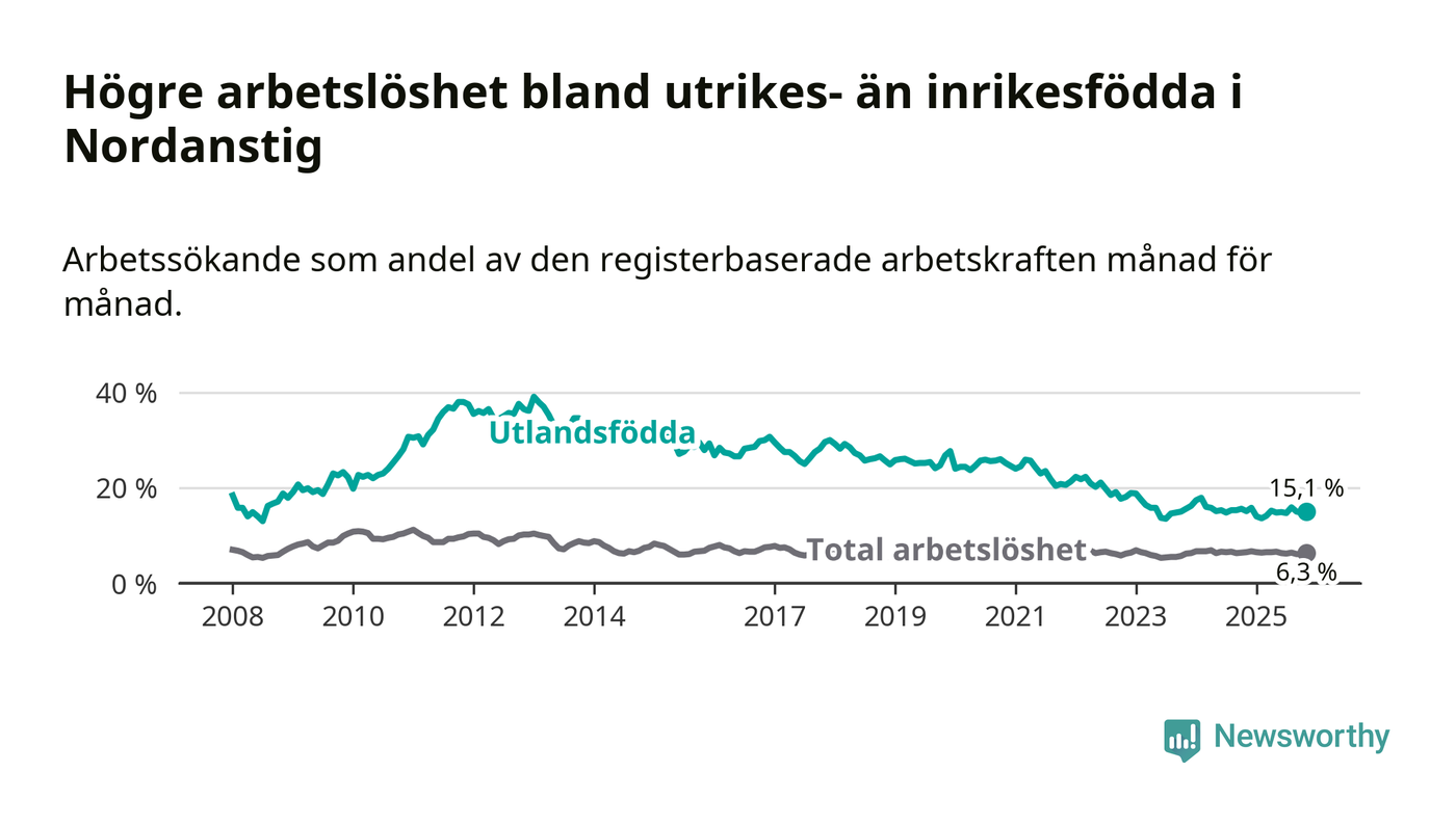 Läs mer om arbetslösheten bland utlandsfödda längre ner i den här texten.