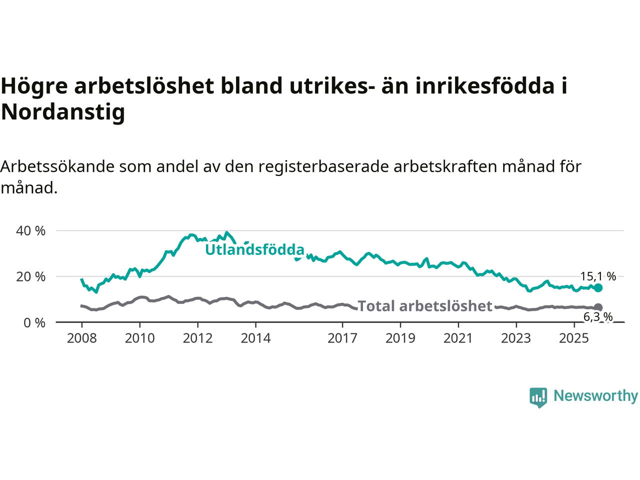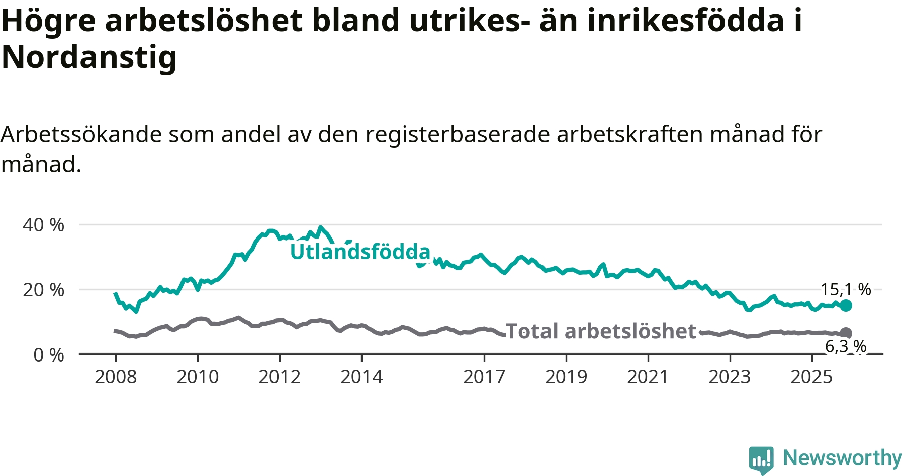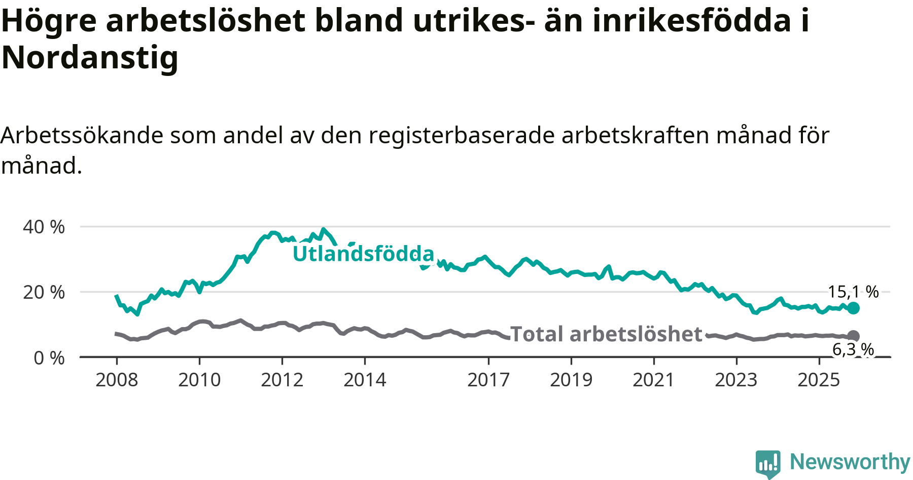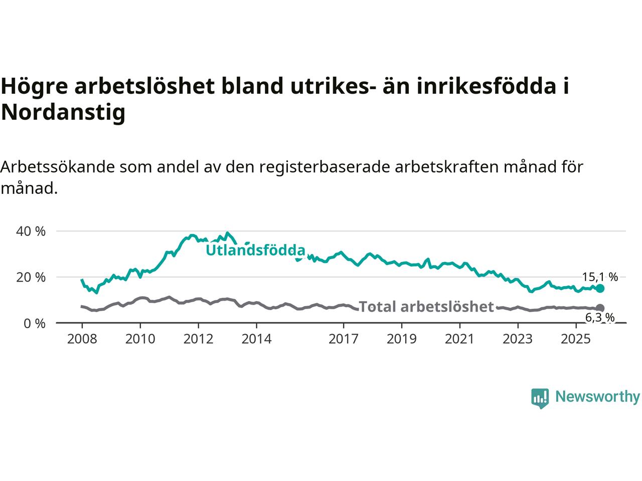 Läs mer om arbetslösheten bland utlandsfödda längre ner i den här texten.