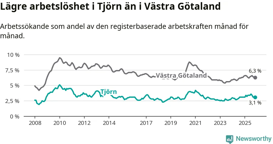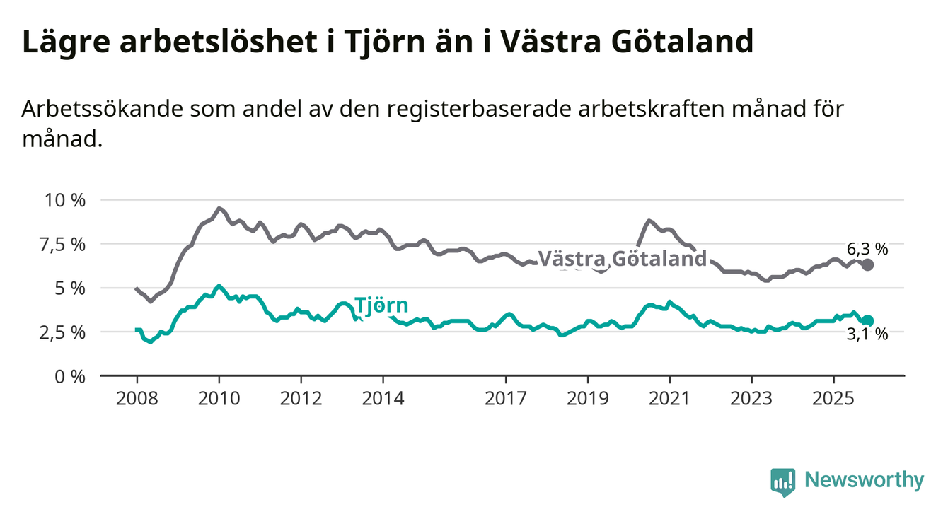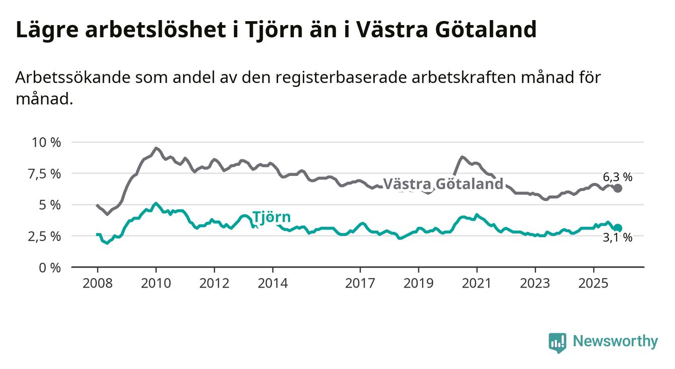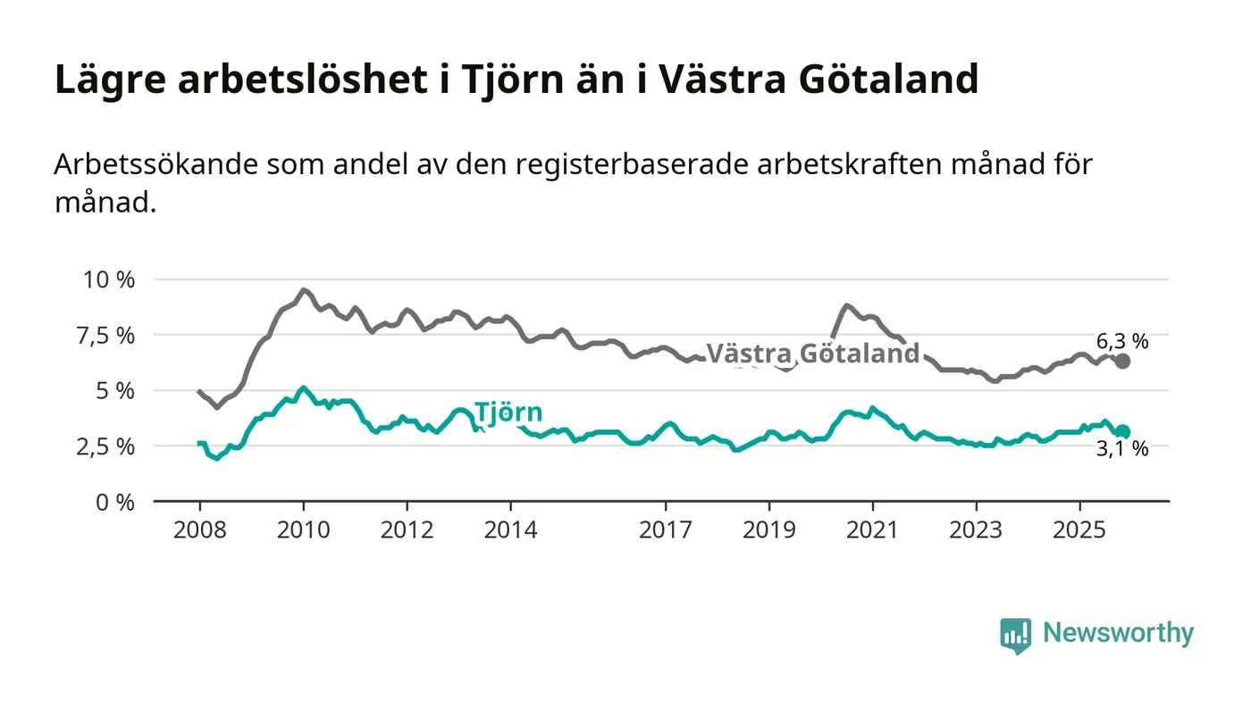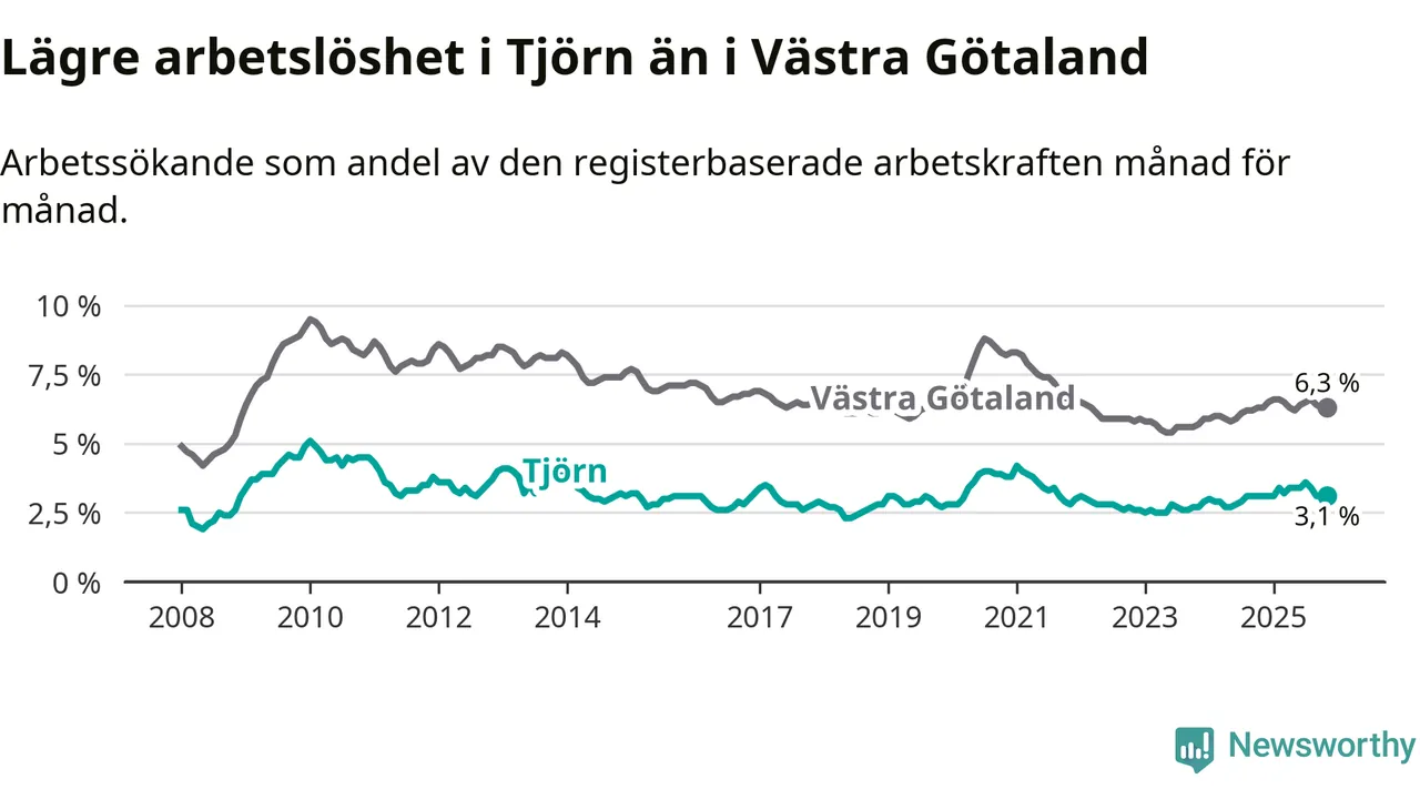 Graf: Arbetslöshet i Tjörns kommun och Västra Götalands län
