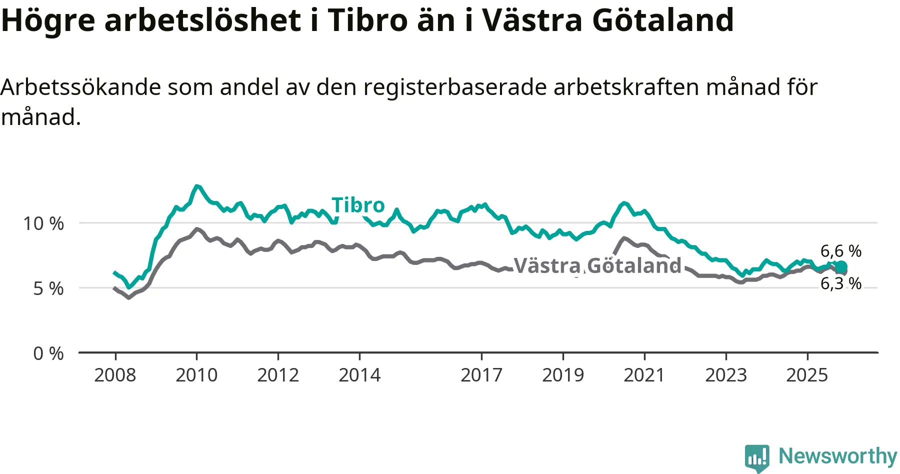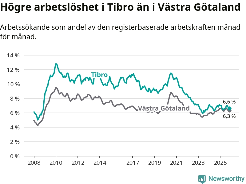 Graf: Arbetslöshet i Tibro kommun och Västra Götalands län