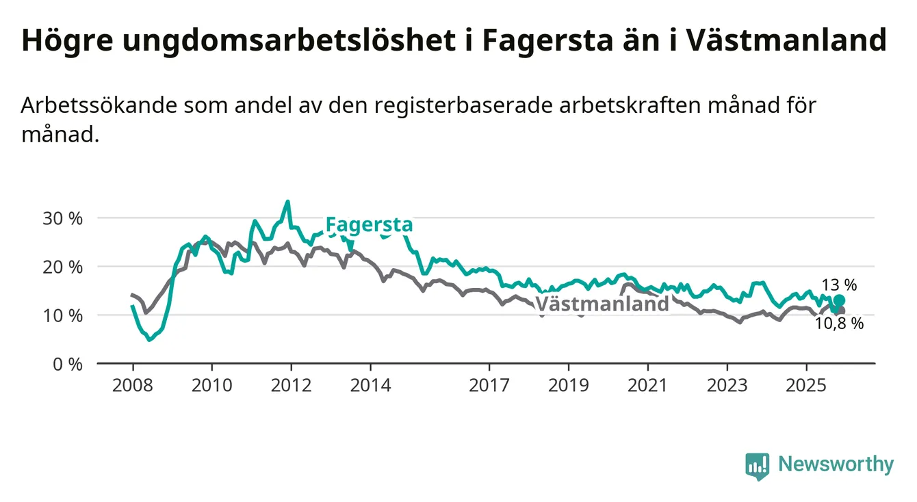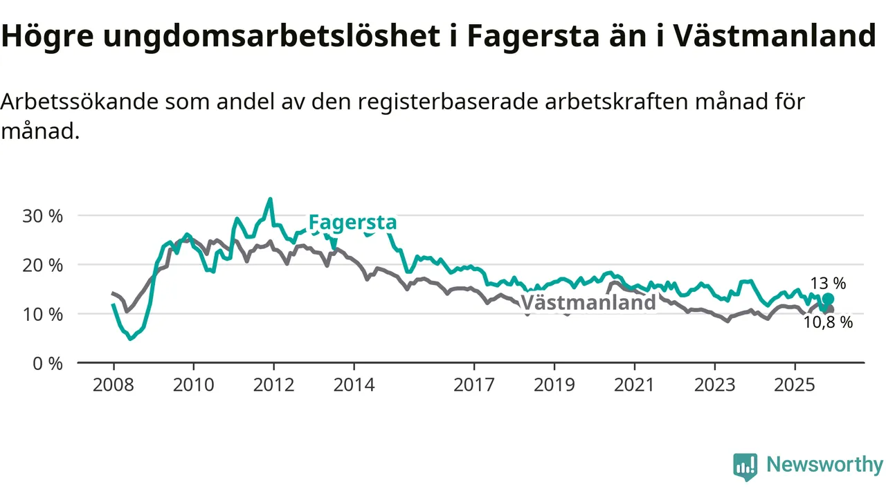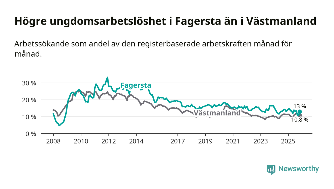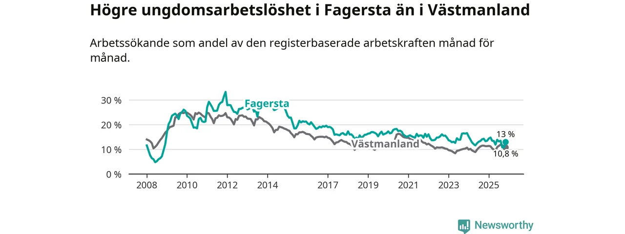 Graf: Arbetslöshet bland unga i Fagersta kommun och Västmanlands län