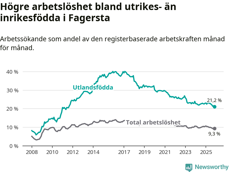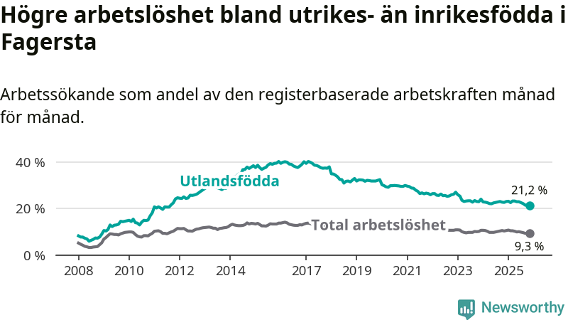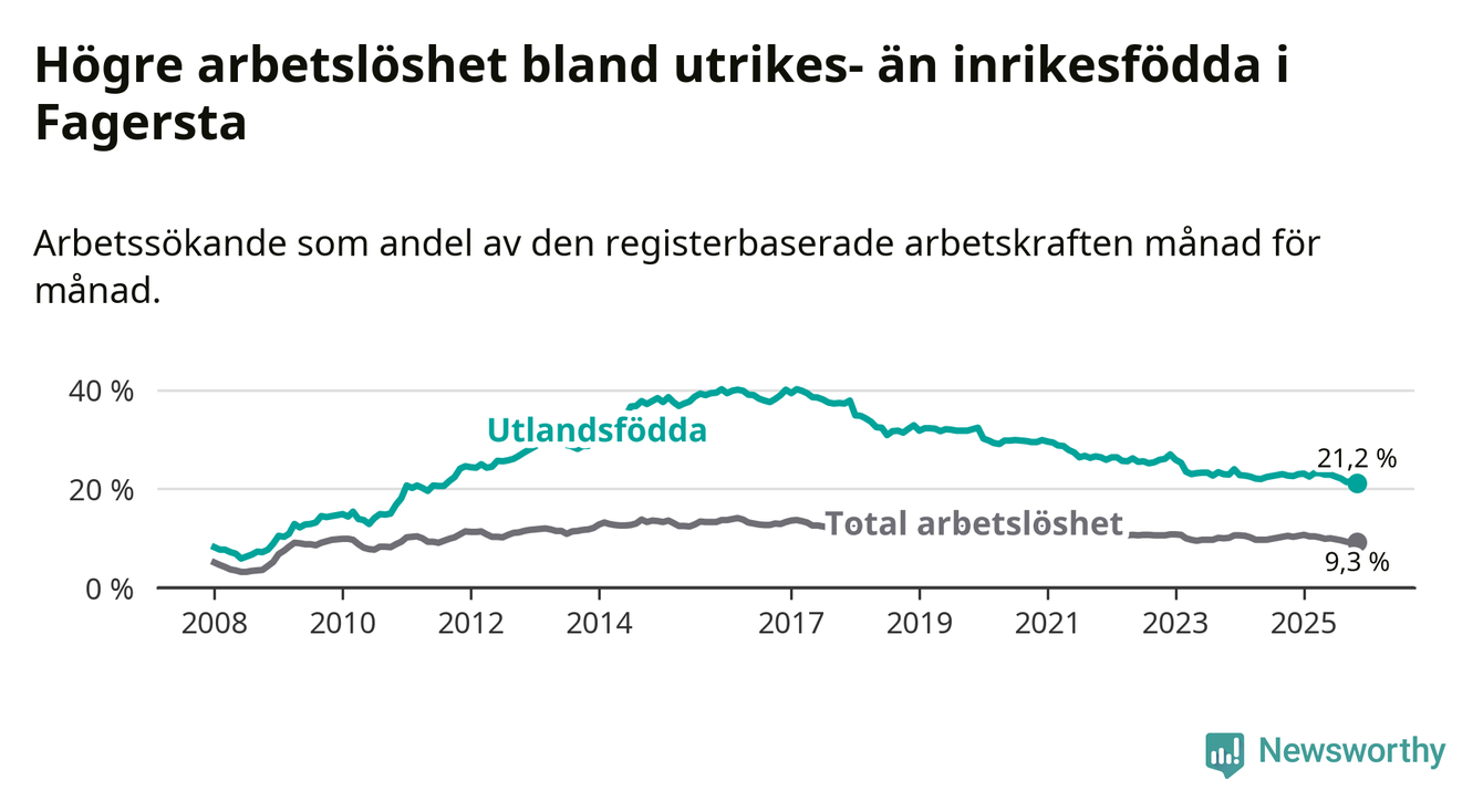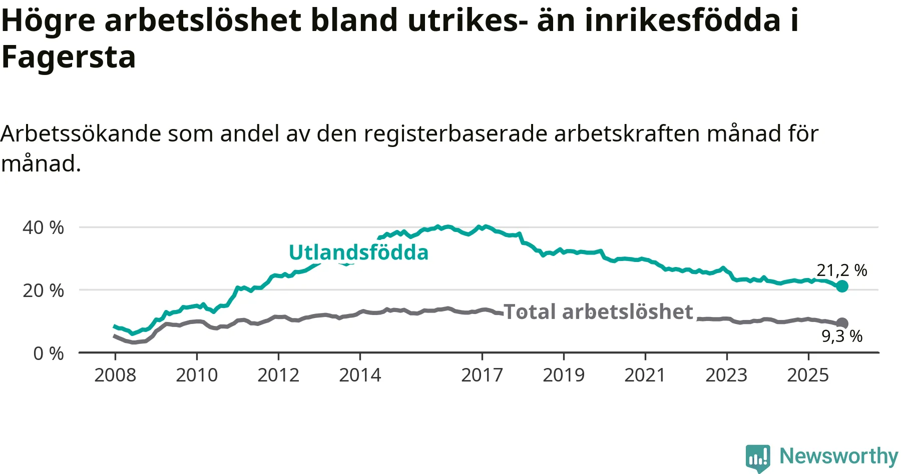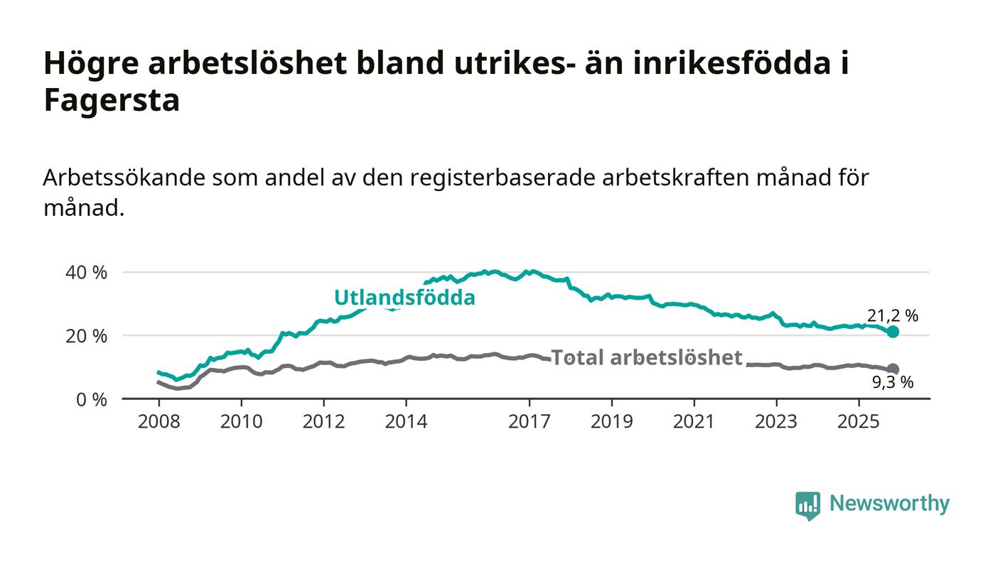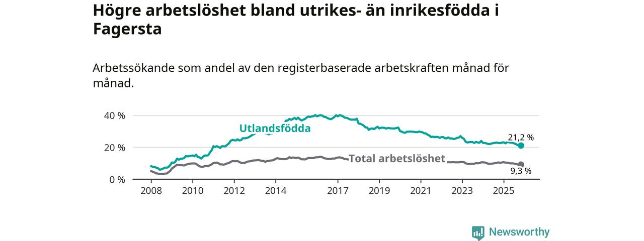 Läs mer om arbetslösheten bland utlandsfödda längre ner i den här texten.