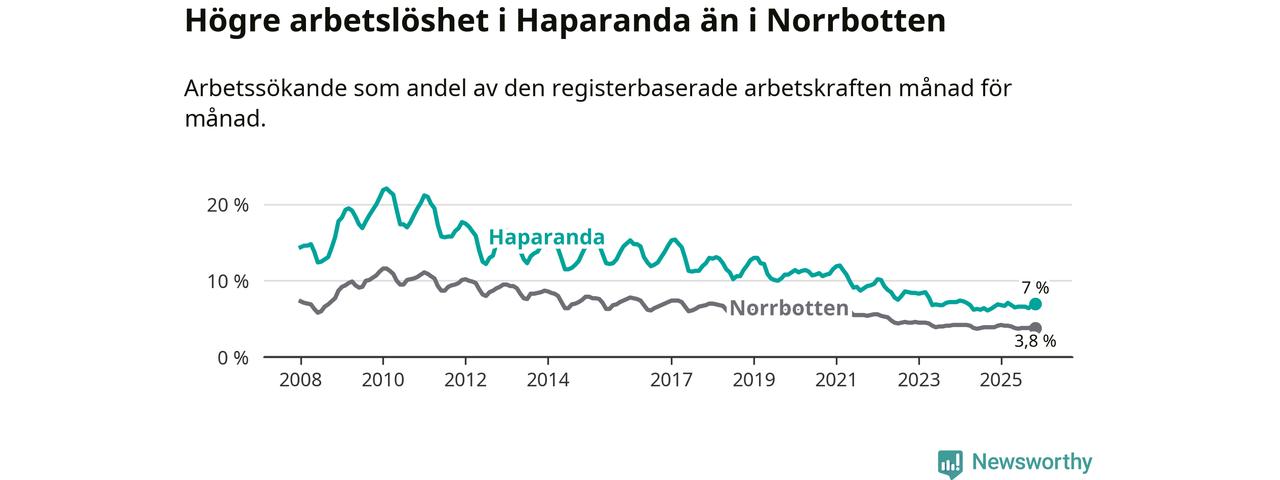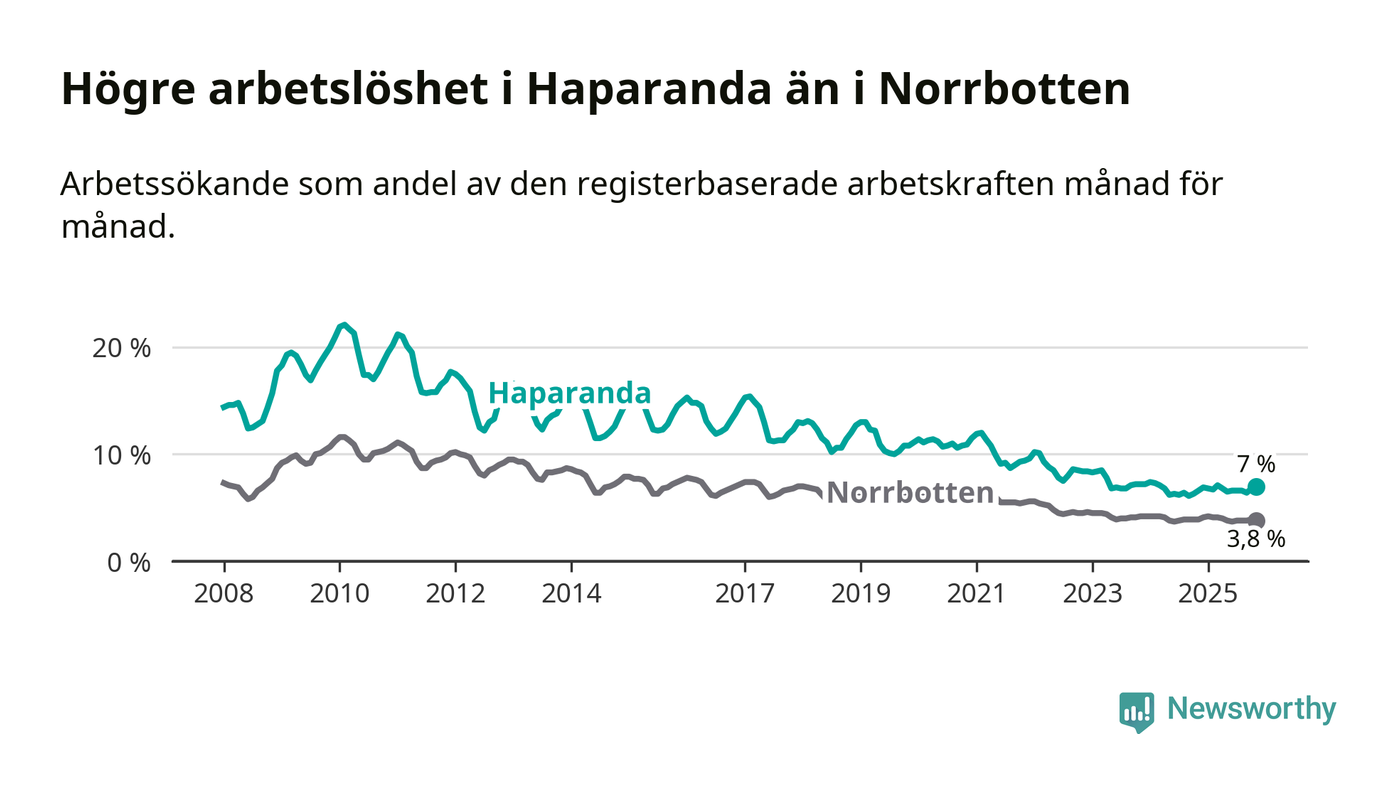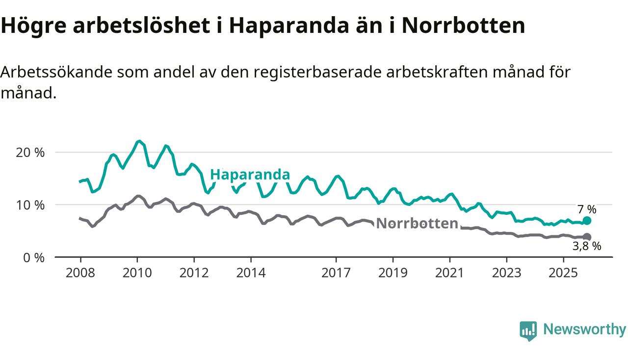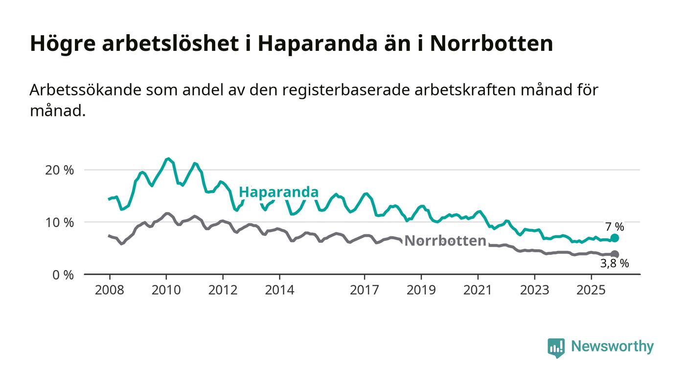 Graf: Arbetslöshet i Haparanda kommun och Norrbottens län