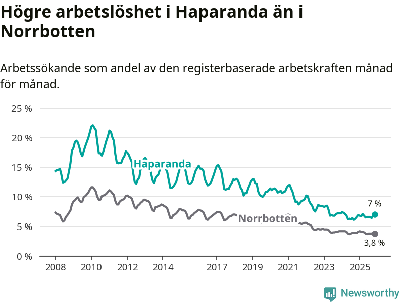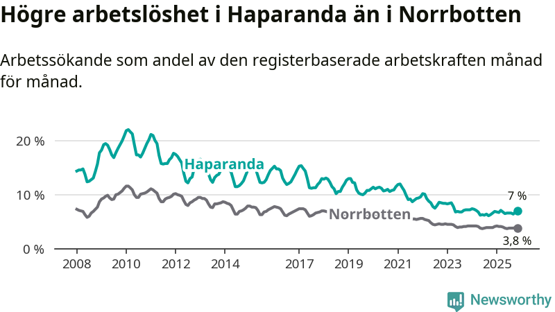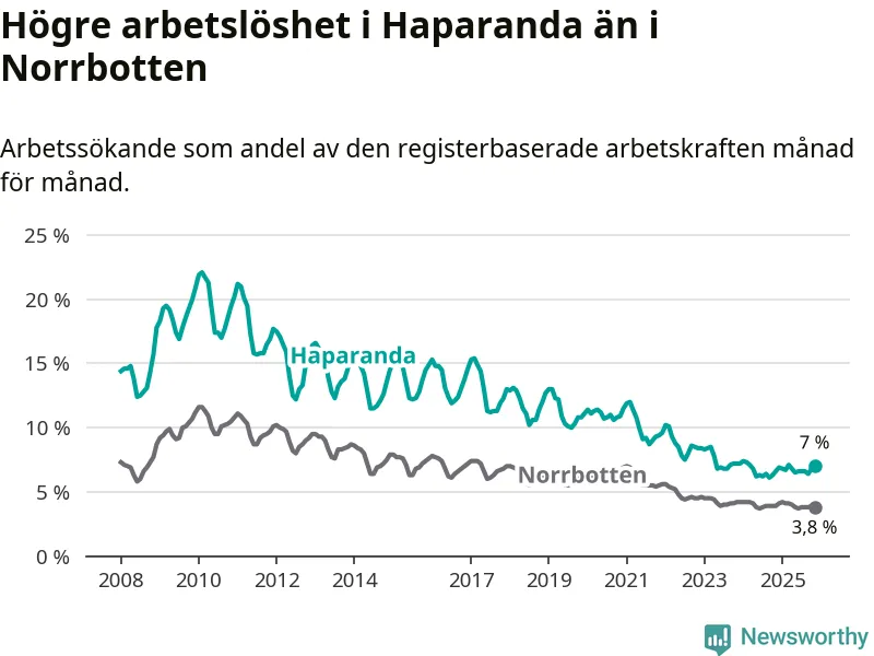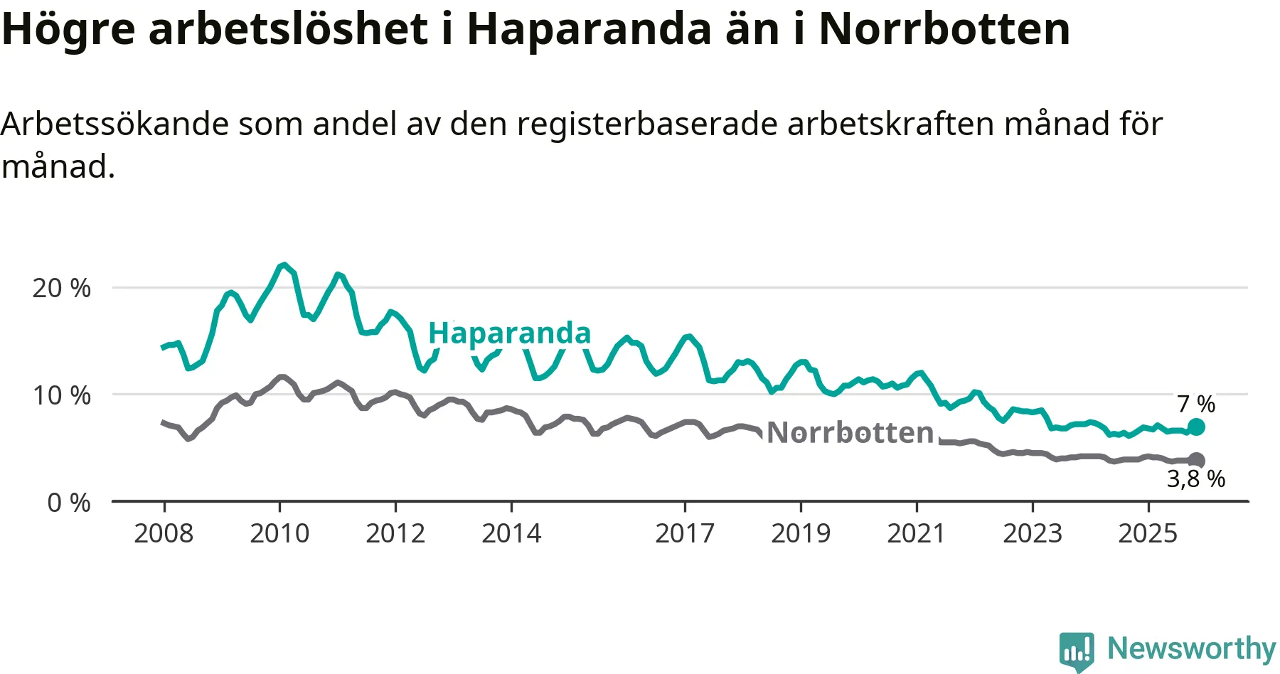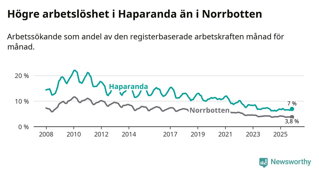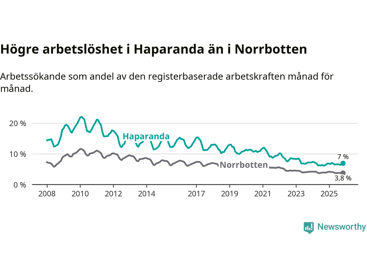 Graf: Arbetslöshet i Haparanda kommun och Norrbottens län