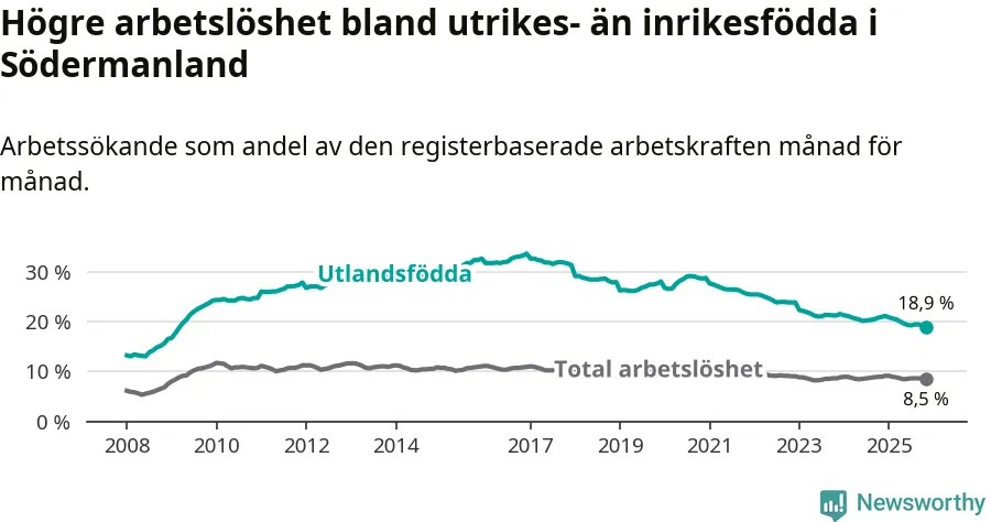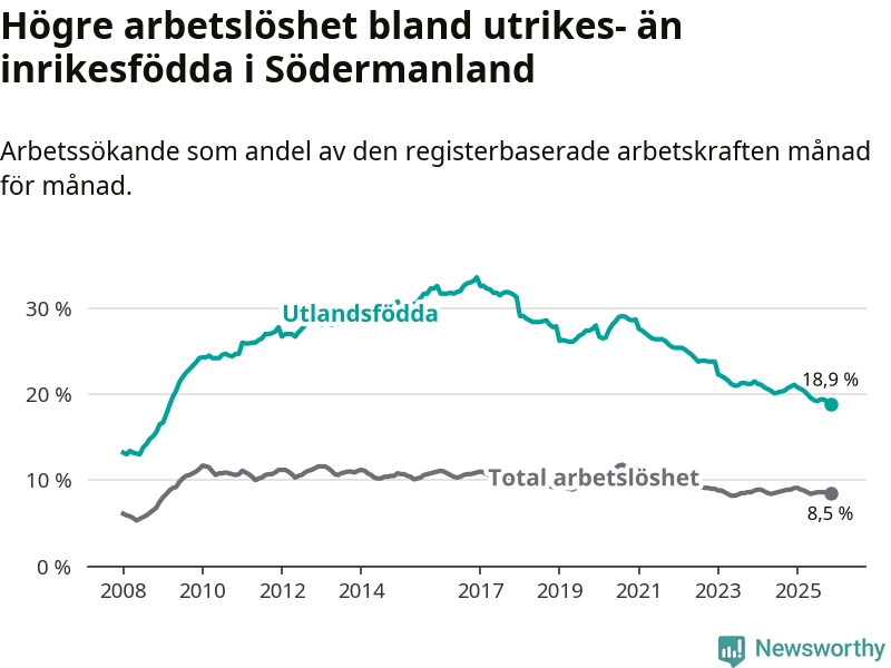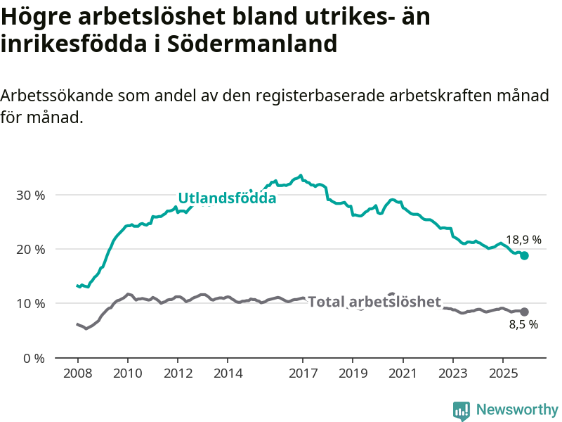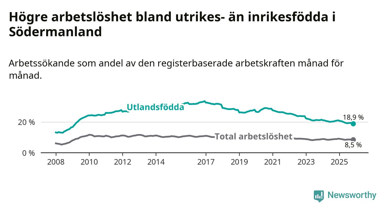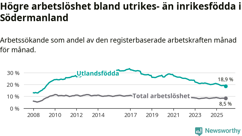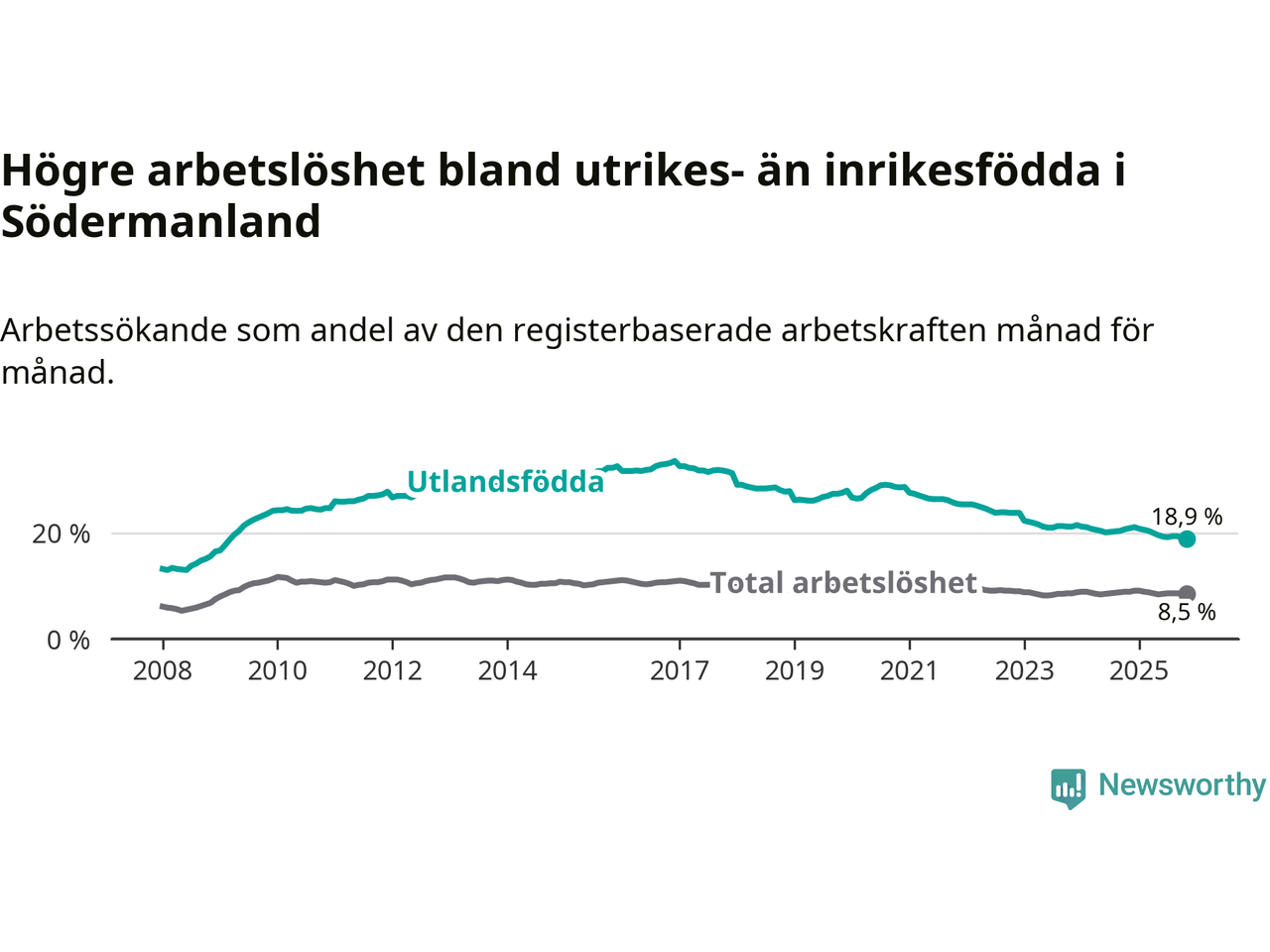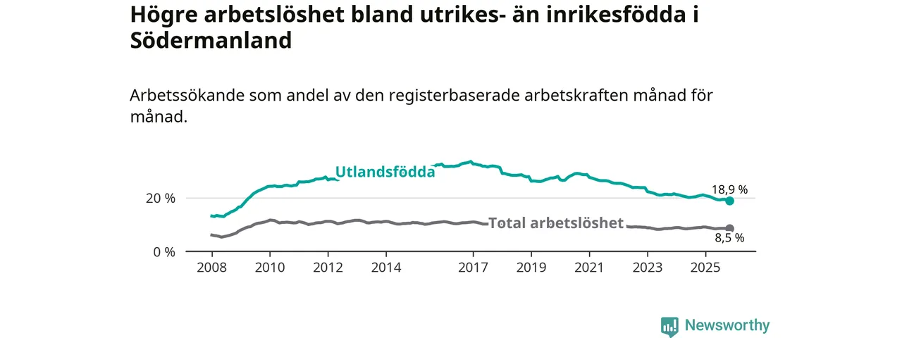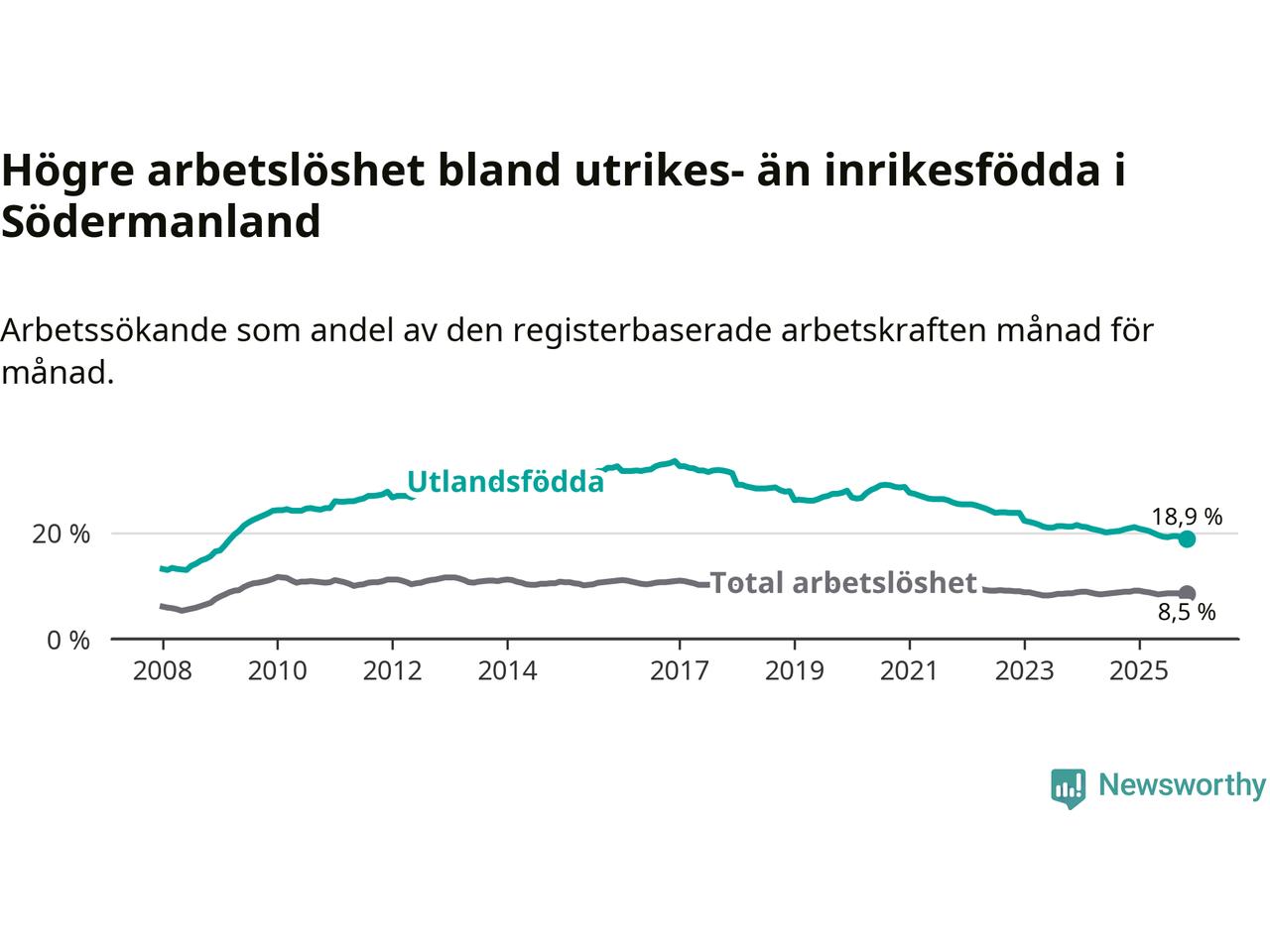 Arbetslöshet bland utlandsfödda i Södermanlands län