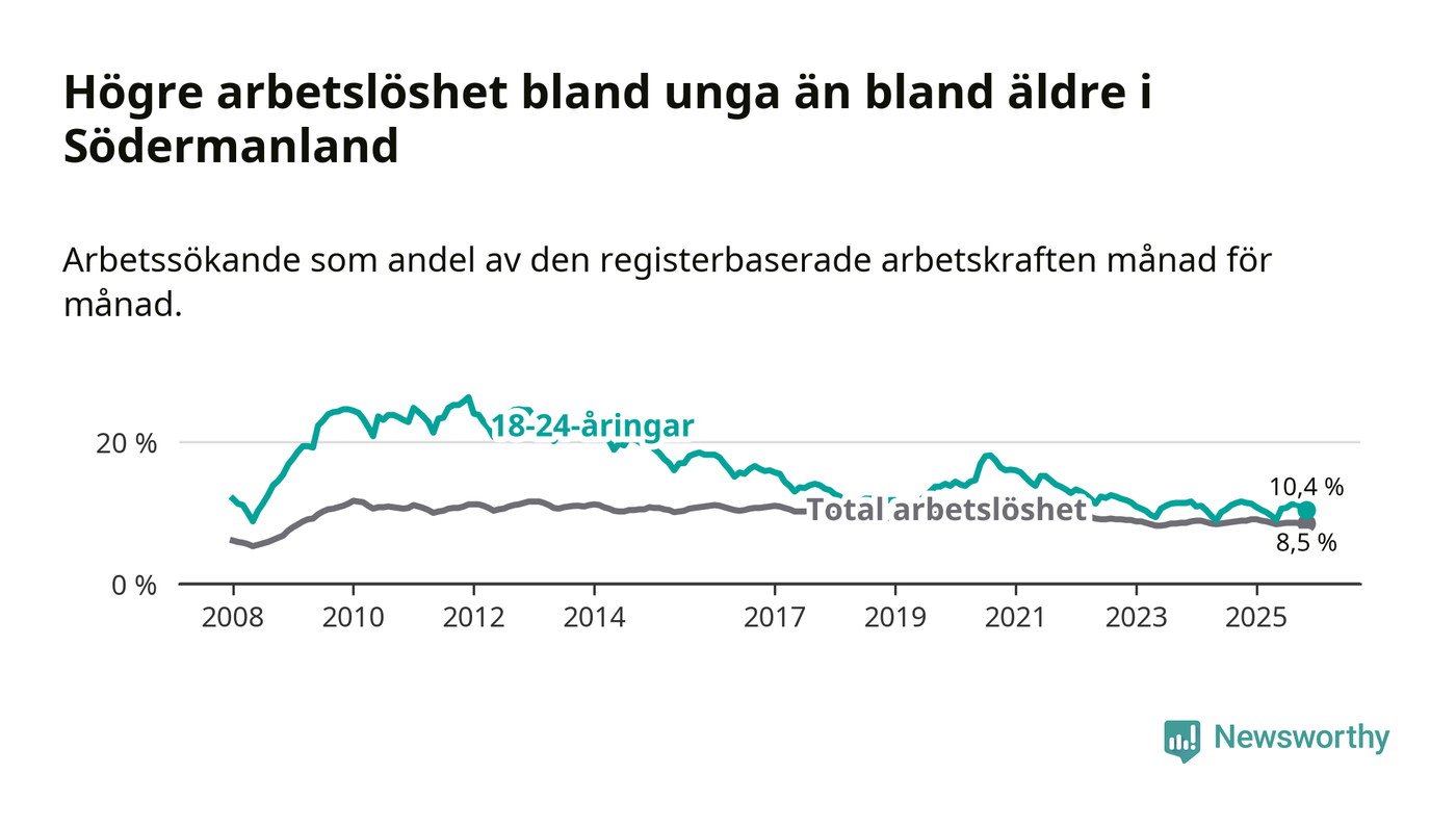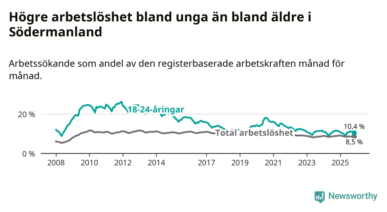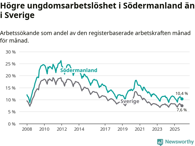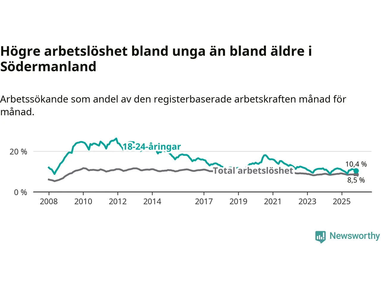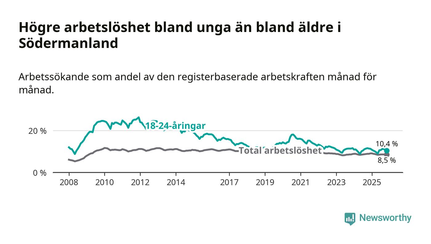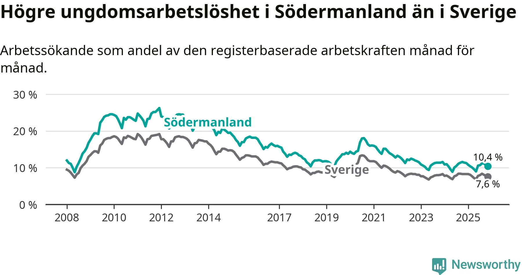 Graf: Arbetslöshet bland unga i Södermanlands län och Sverige