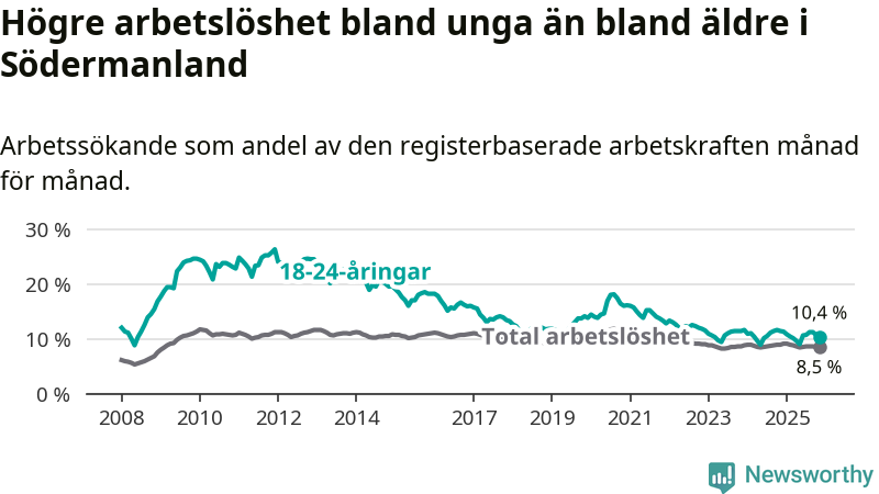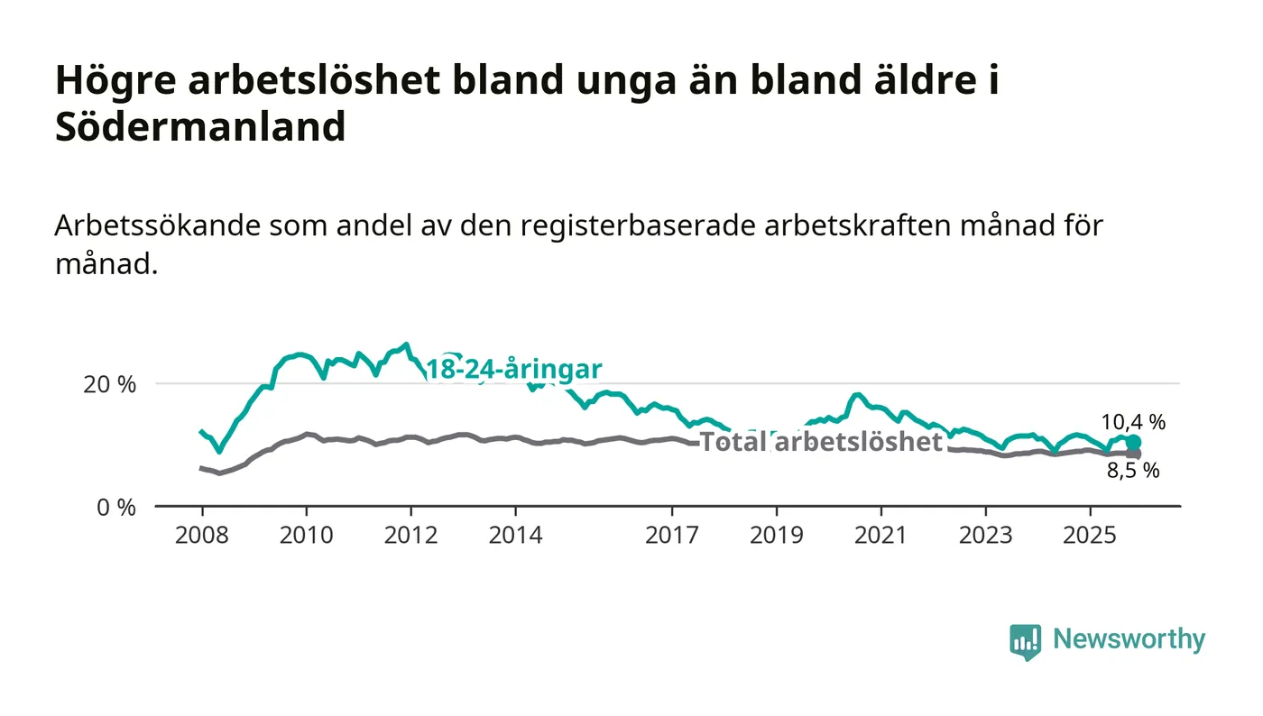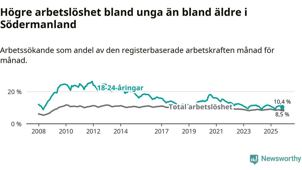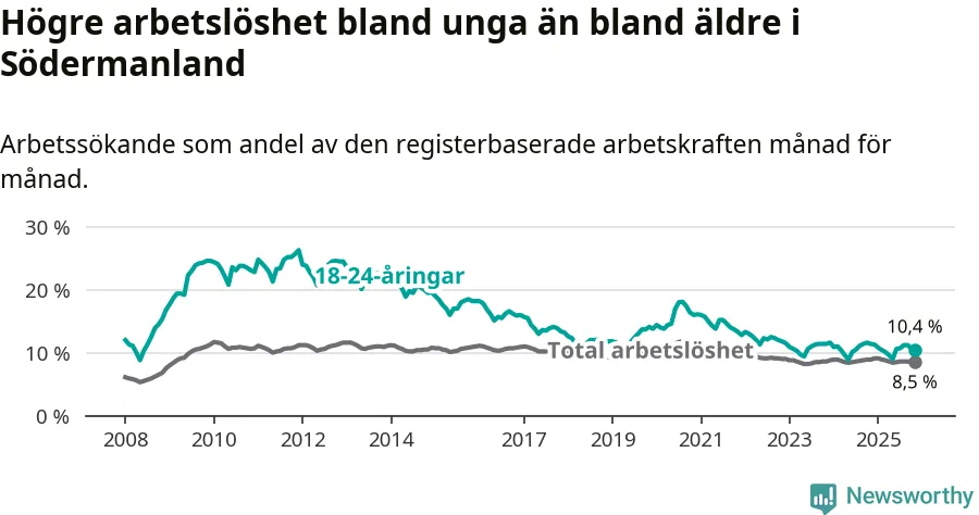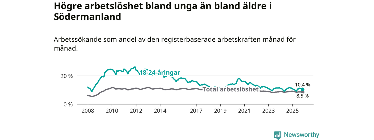 Arbetslöshet bland 18–24-åringar i Södermanlands län