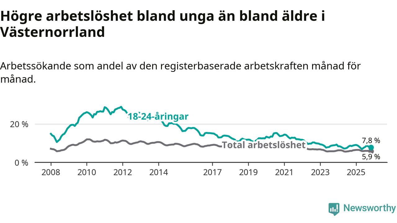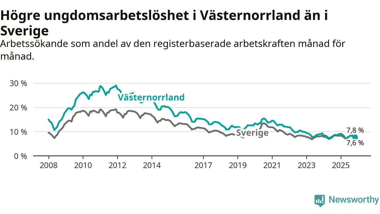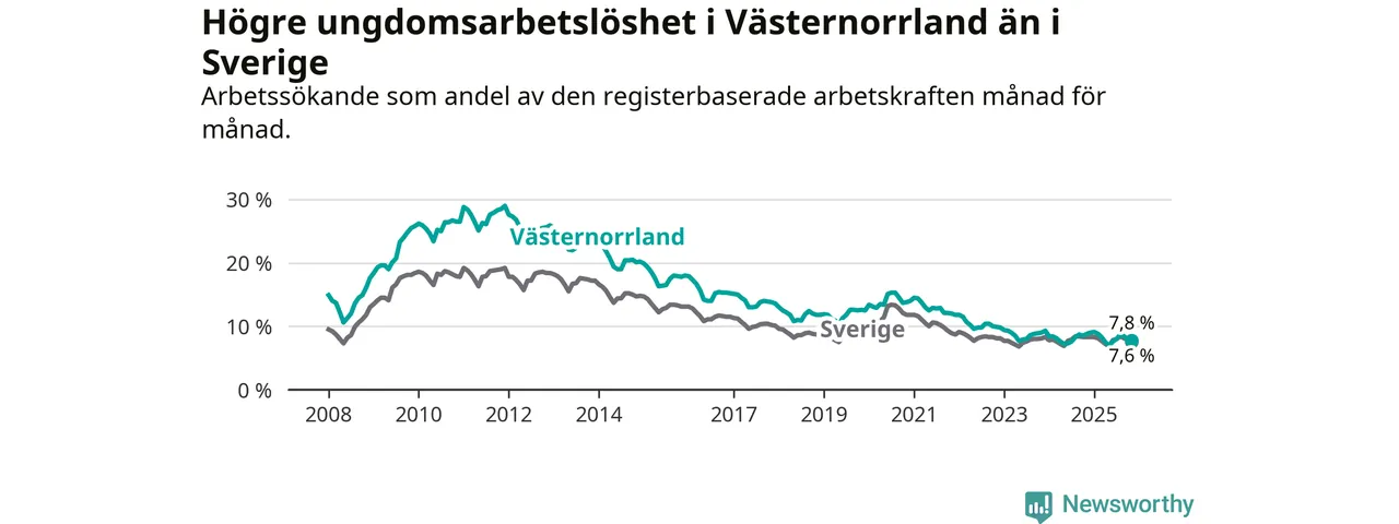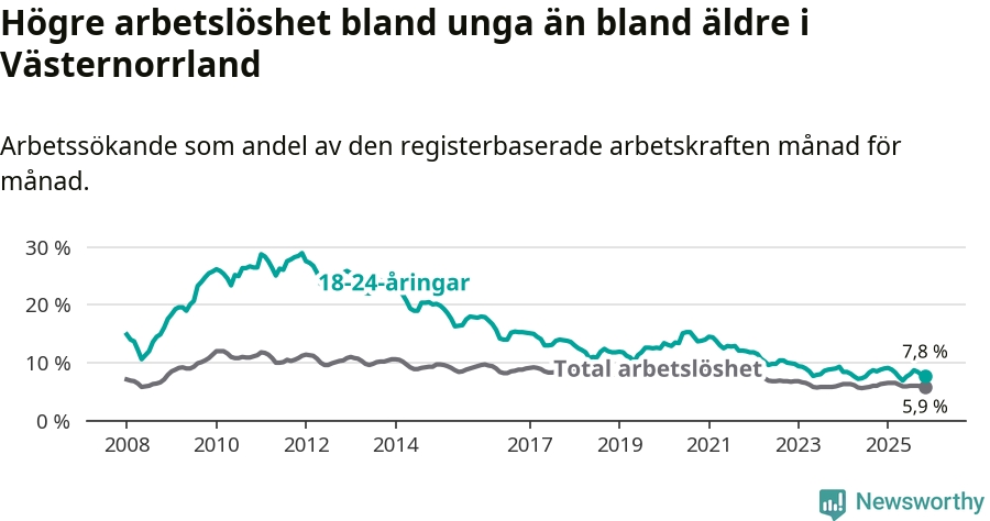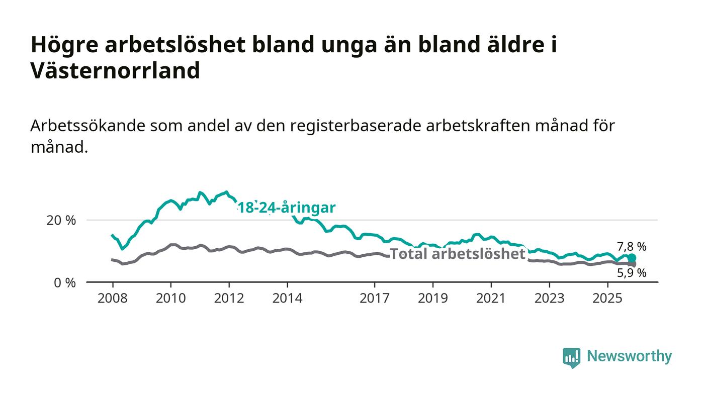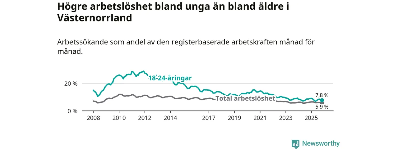 Arbetslöshet bland 18–24-åringar i Västernorrlands län
