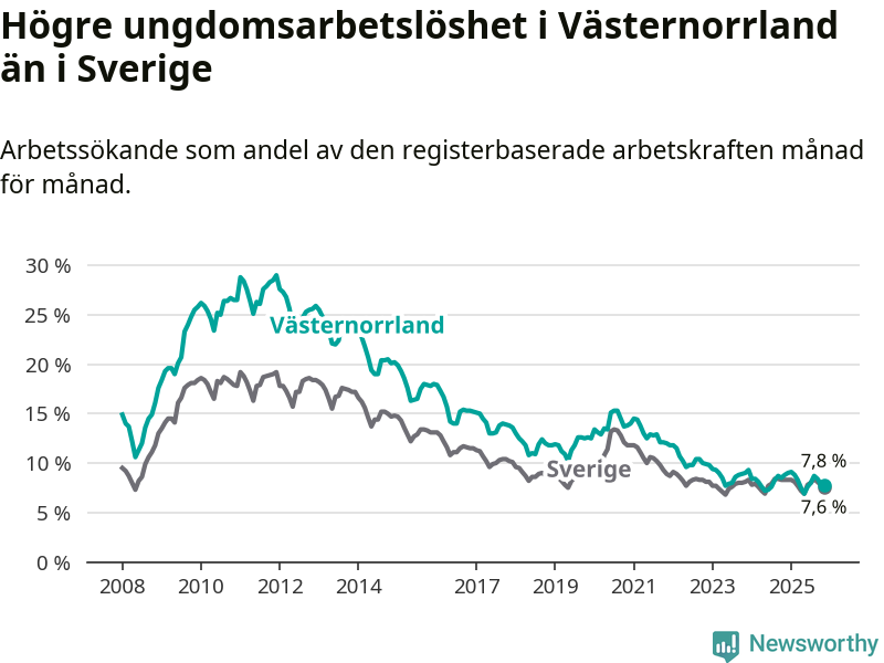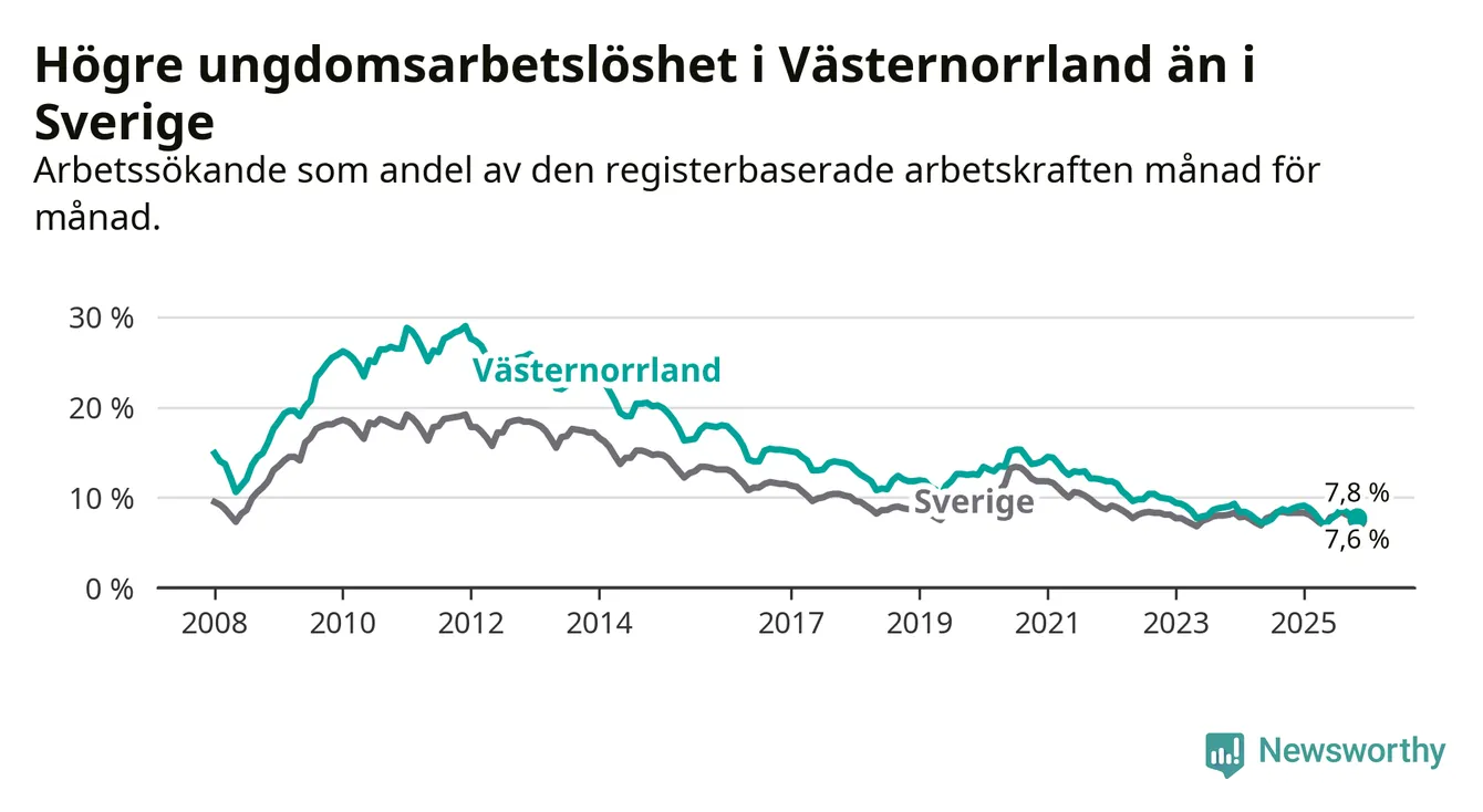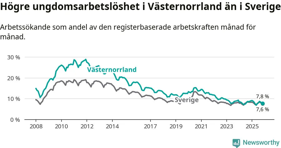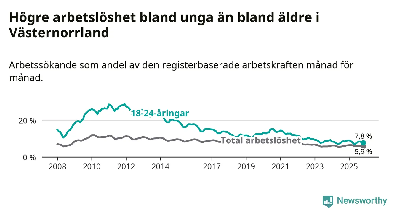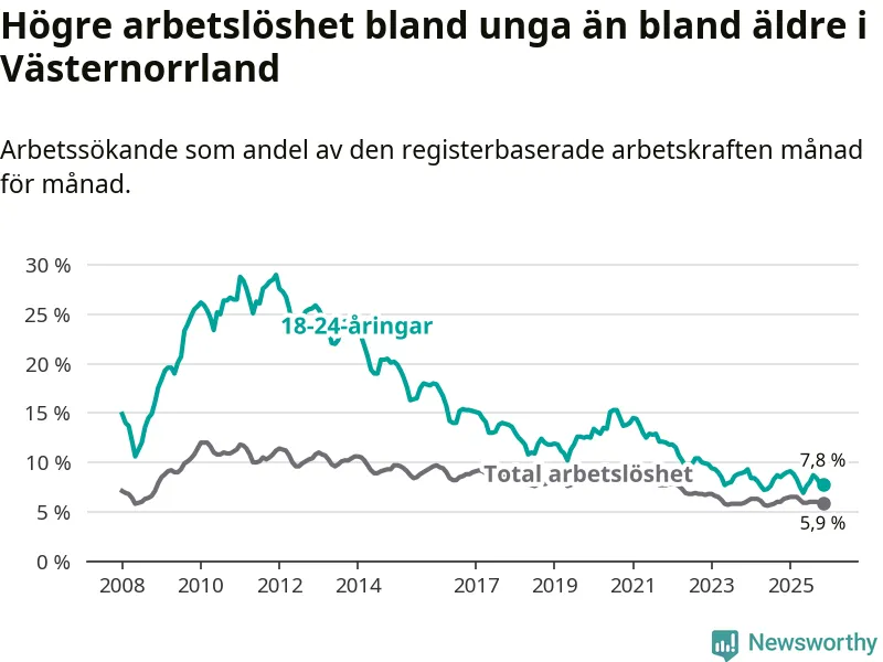 Arbetslöshet bland 18–24-åringar i Västernorrlands län