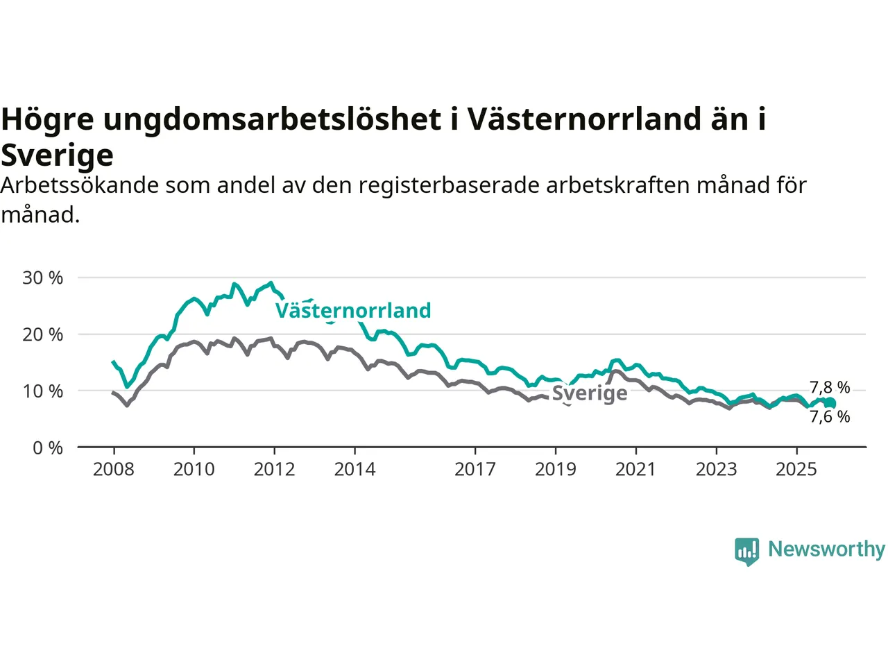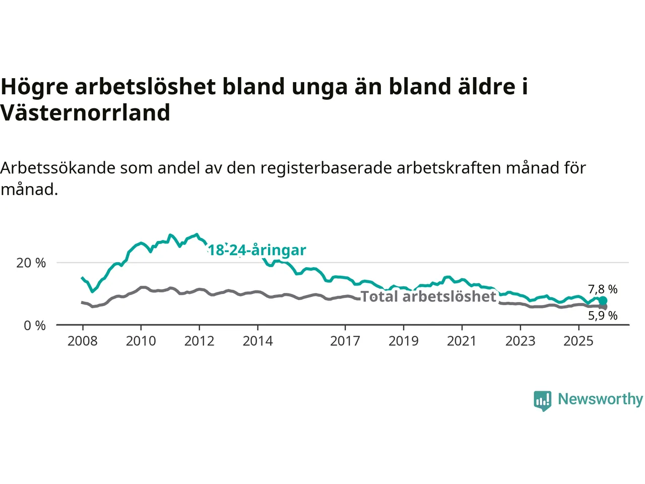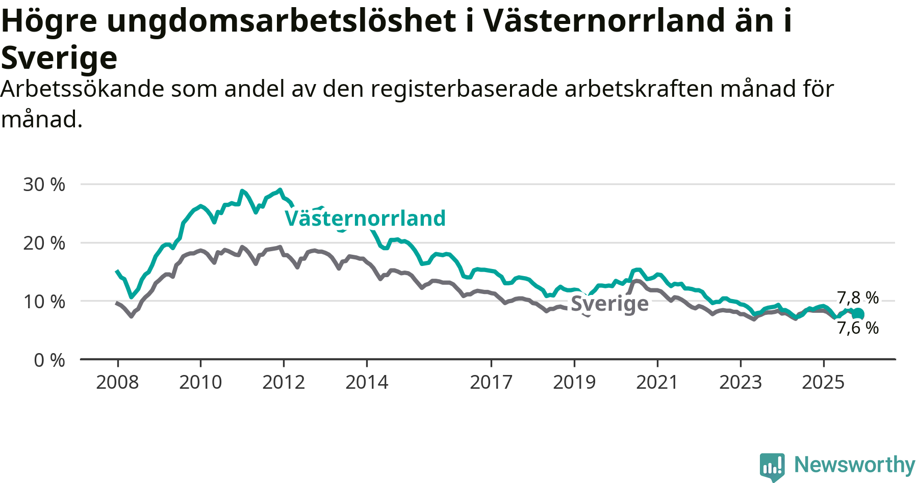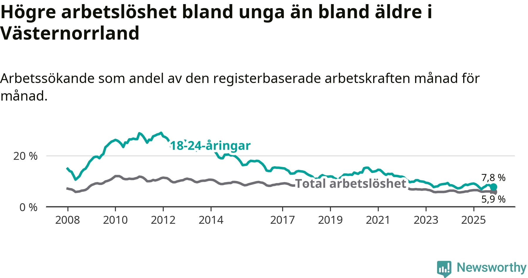 Arbetslöshet bland 18–24-åringar i Västernorrlands län