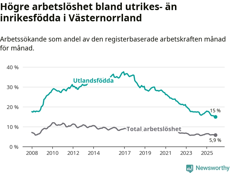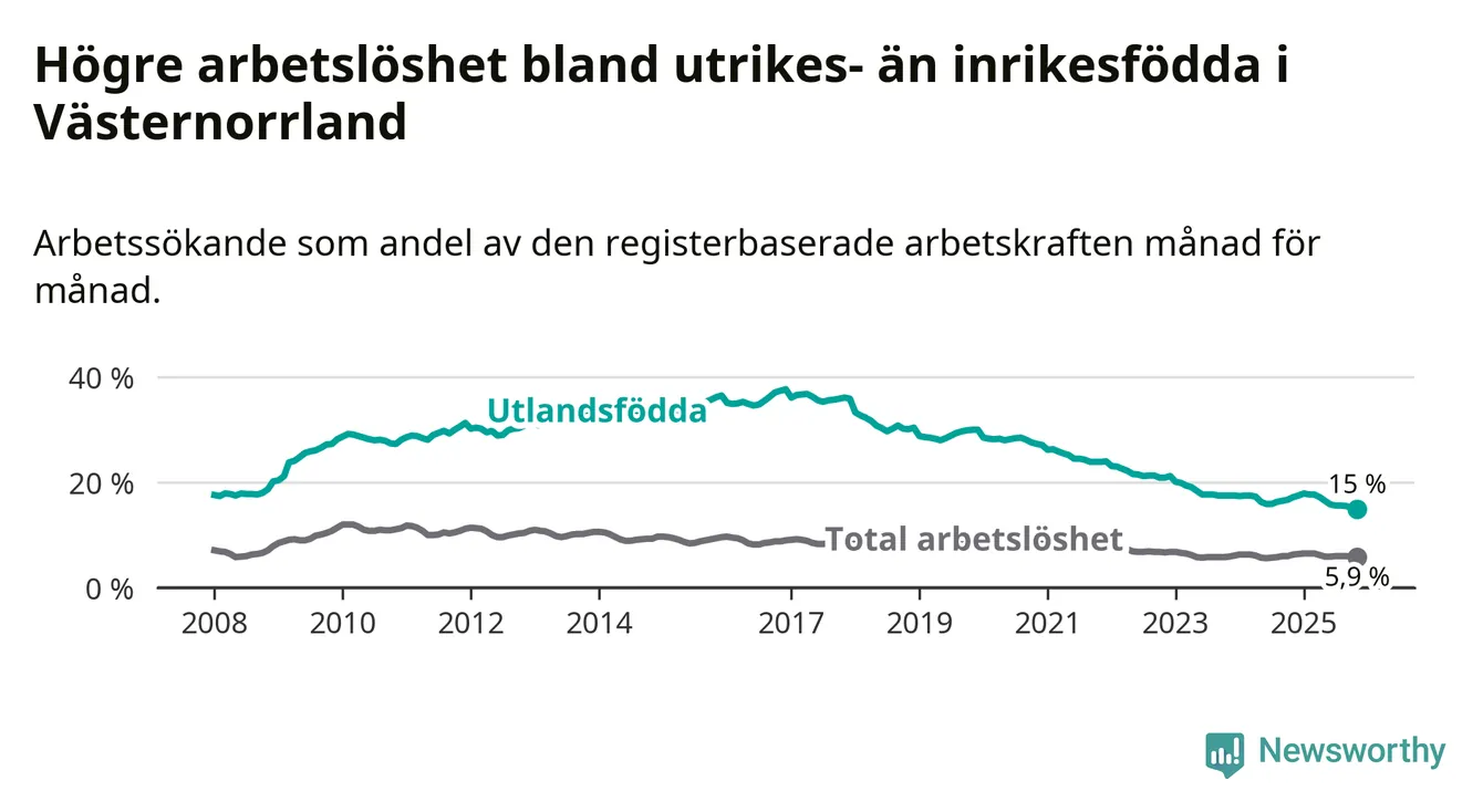 Arbetslöshet bland utlandsfödda i Västernorrlands län
