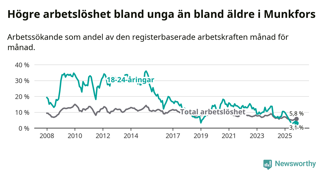 | Bland ungdomar | 3,1 % | −7,4 % ▼ | 8,0 % | −0,9 % ▼ | 7,6 % | −0,7 % ▼ |