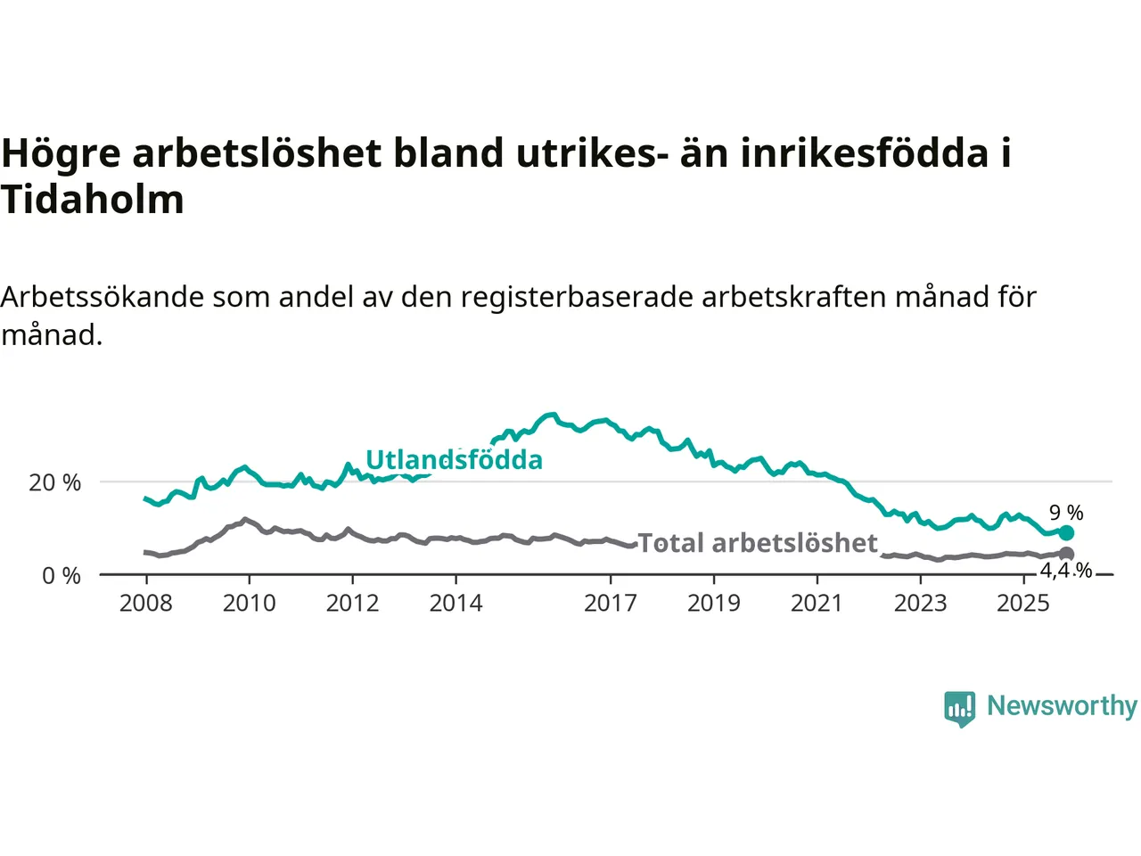 Läs mer om arbetslösheten bland utlandsfödda längre ner i den här texten.