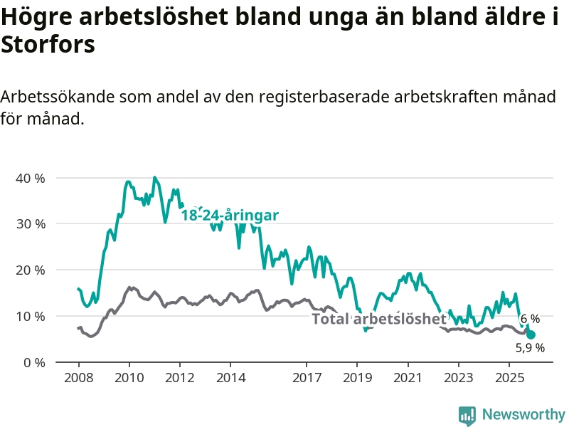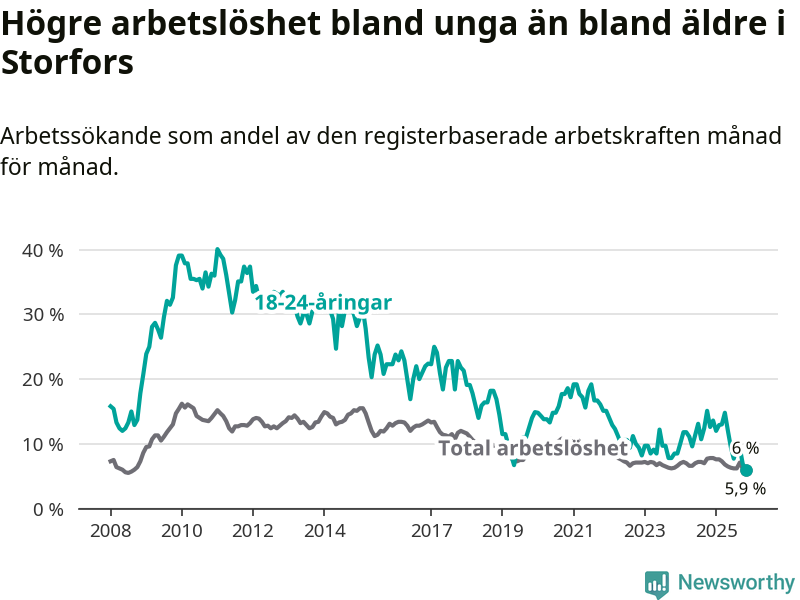 | Bland ungdomar | 6,0 % | −6,6 % ▼ | 8,0 % | −0,9 % ▼ | 7,6 % | −0,7 % ▼ |