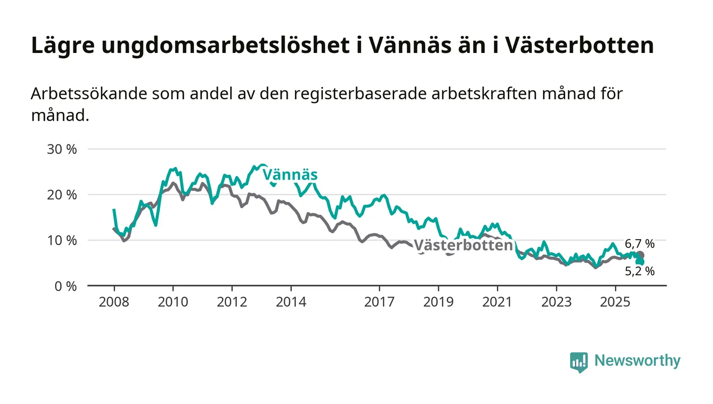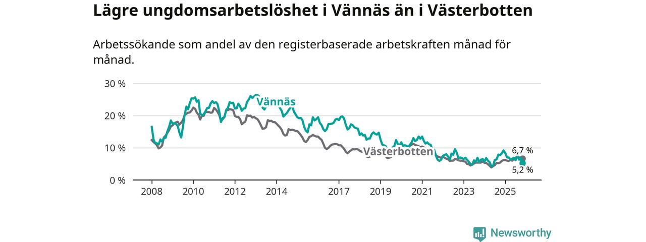 Vännäs kommun såg under november en starkare utveckling på arbetsmarknaden för unga än länet. Kommunen har passerat Västerbottens län och har nu lägre ungdomsarbetslöshet.