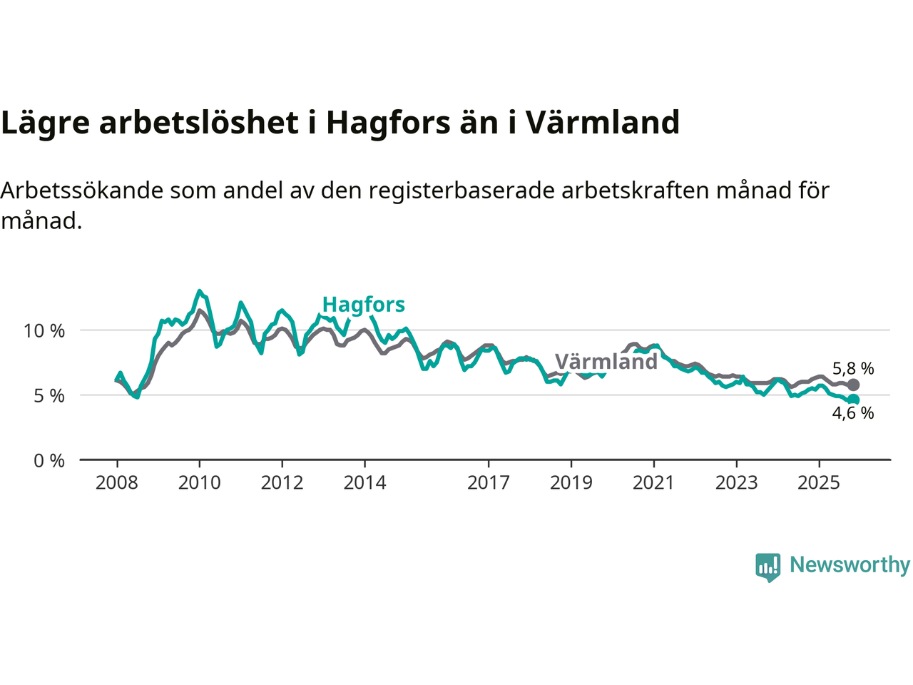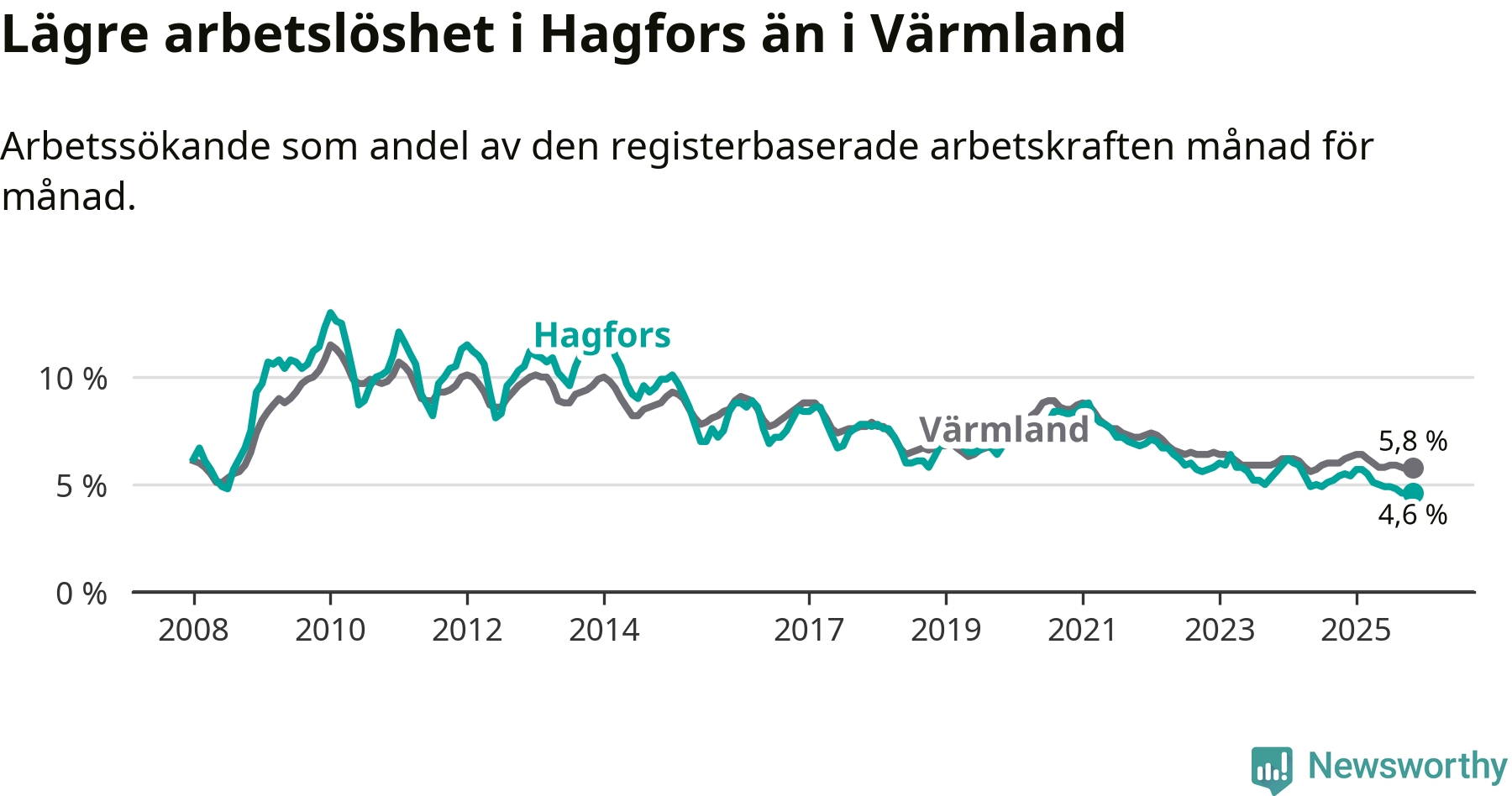 Graf: Arbetslöshet i Hagfors kommun och Värmlands län
