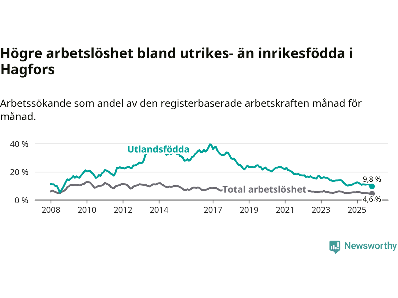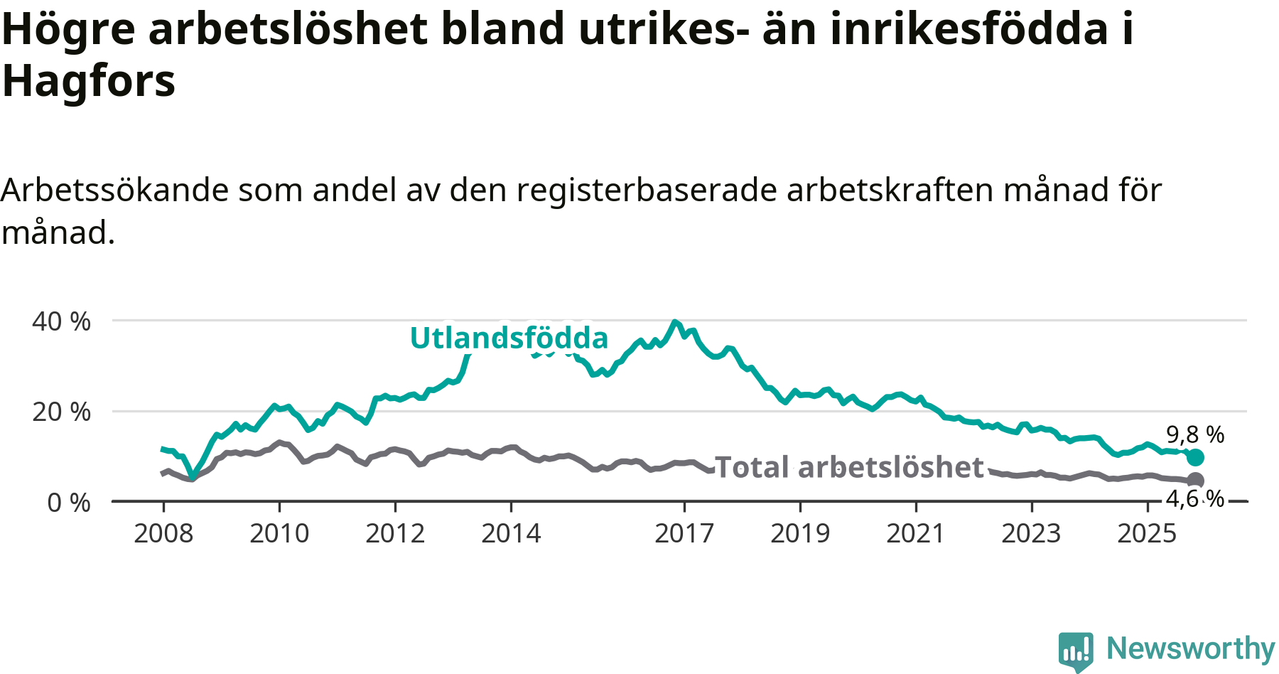 Läs mer om arbetslösheten bland utlandsfödda längre ner i den här texten.