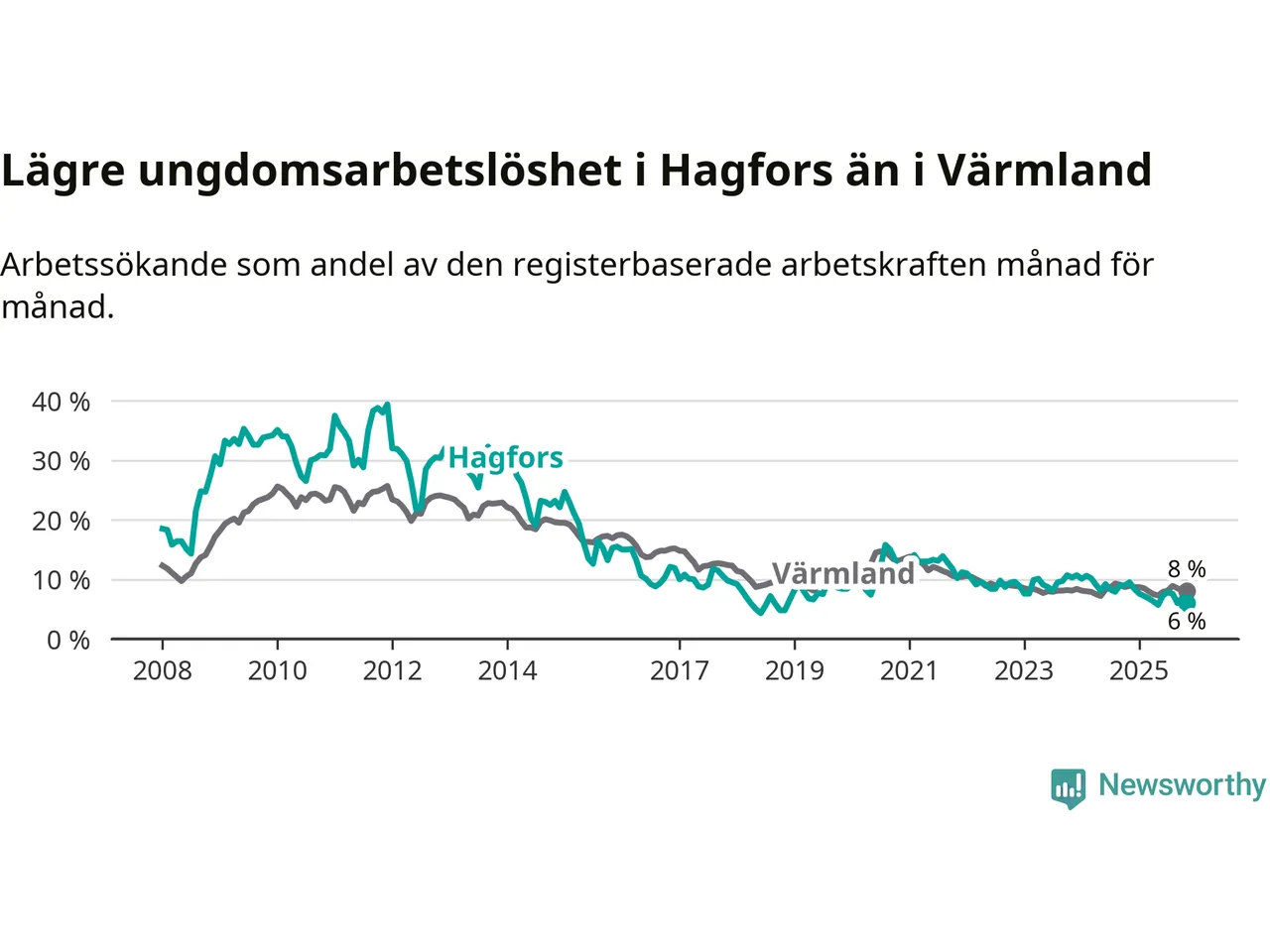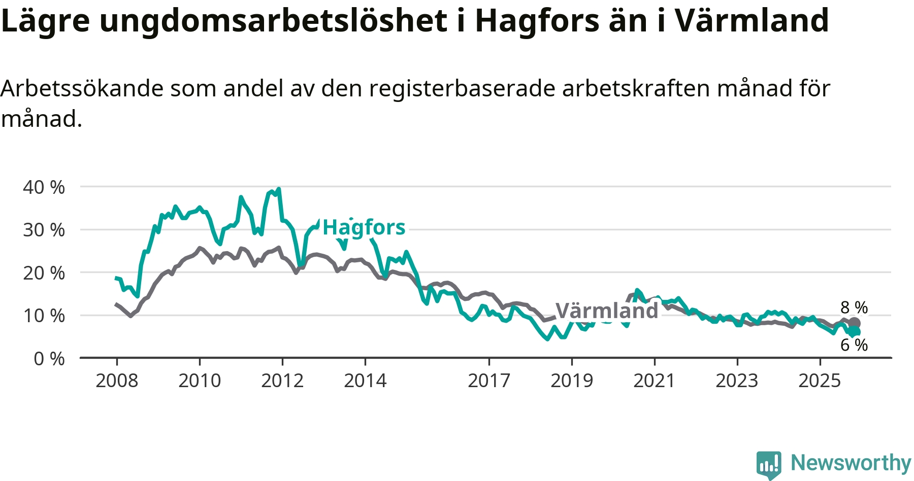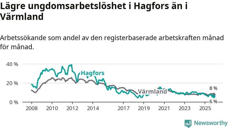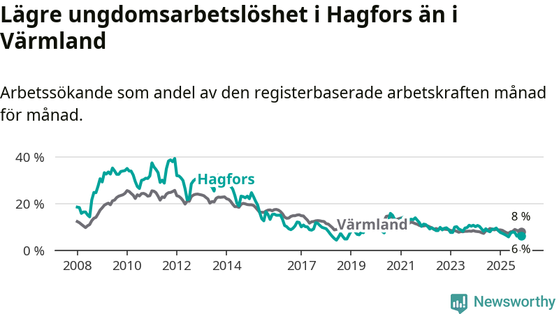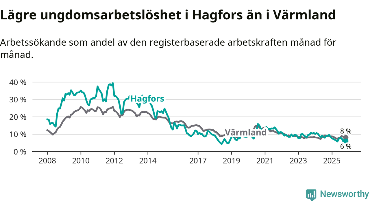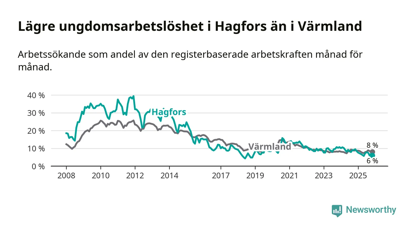 Graf: Arbetslöshet bland unga i Hagfors kommun och Värmlands län