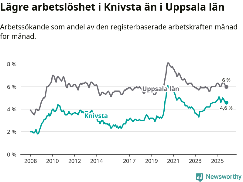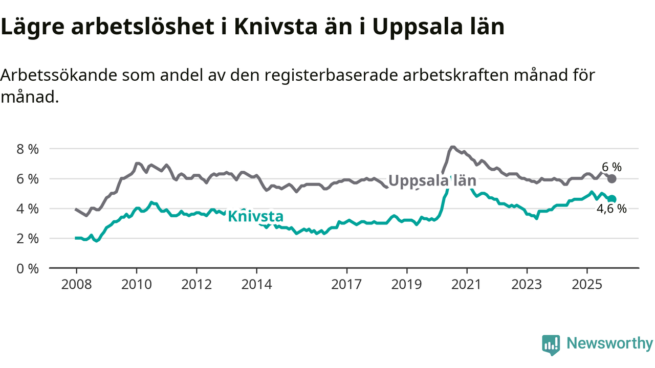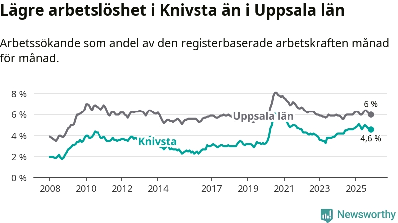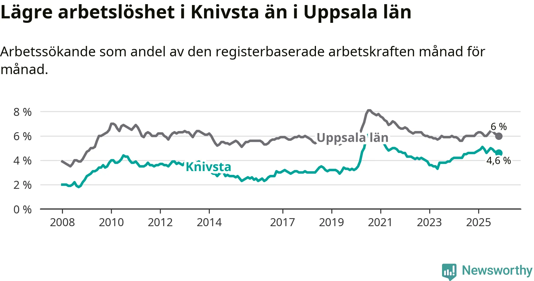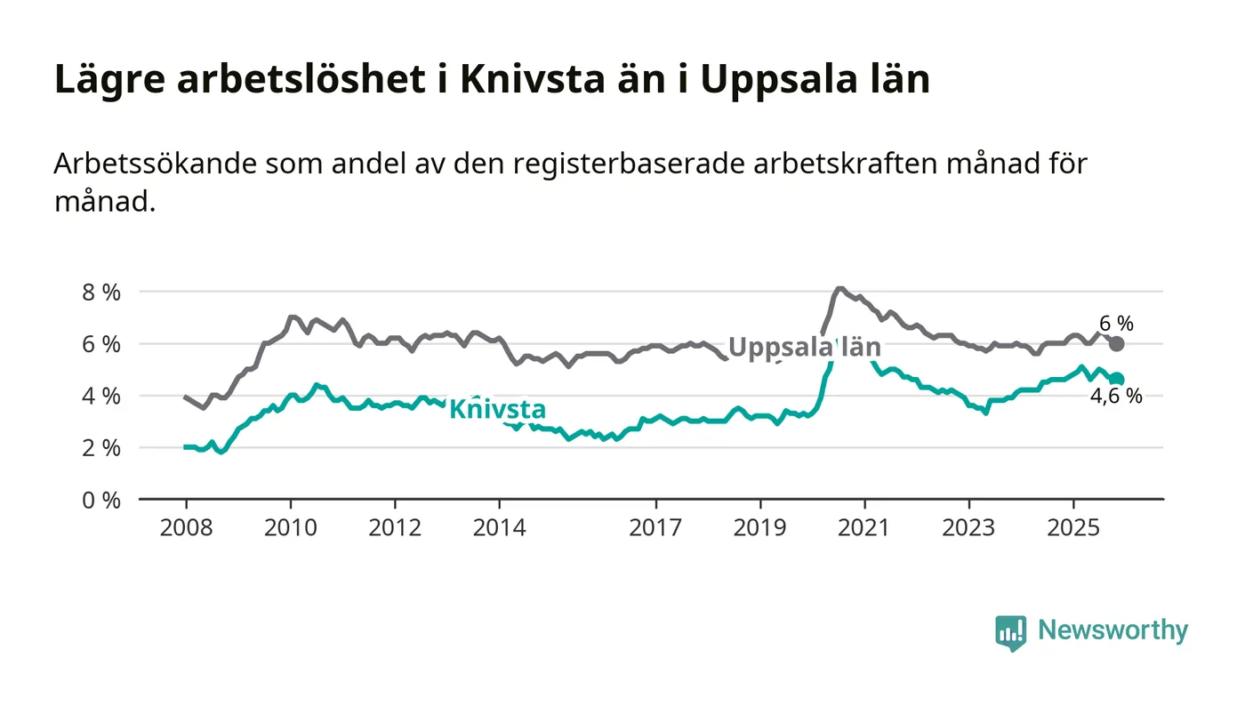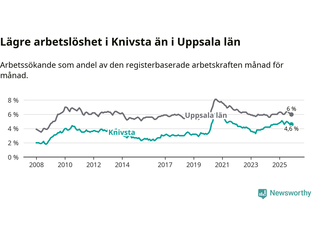 Ny statistik från Arbetsförmedlingen visar på en oförändrad i arbetslöshet i Knivsta kommun. Även i Uppsala står arbetslösheten stilla.