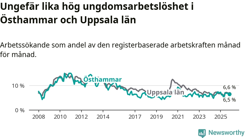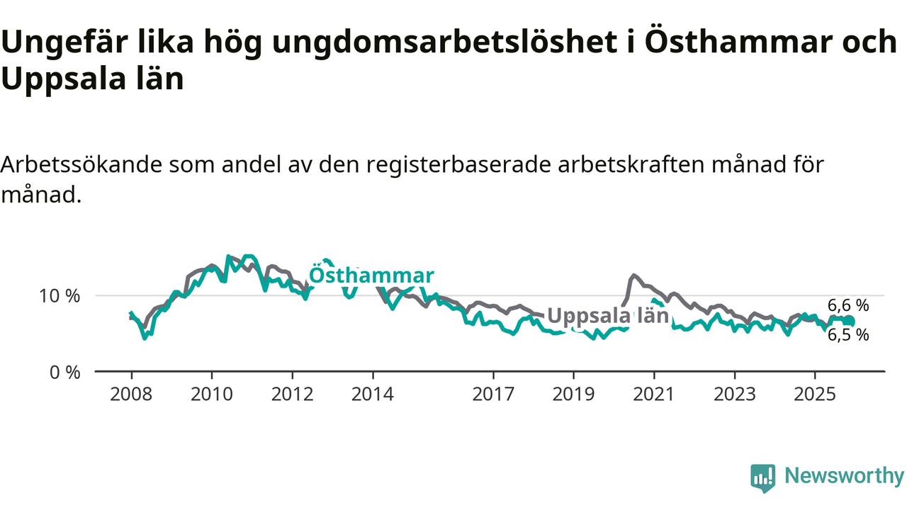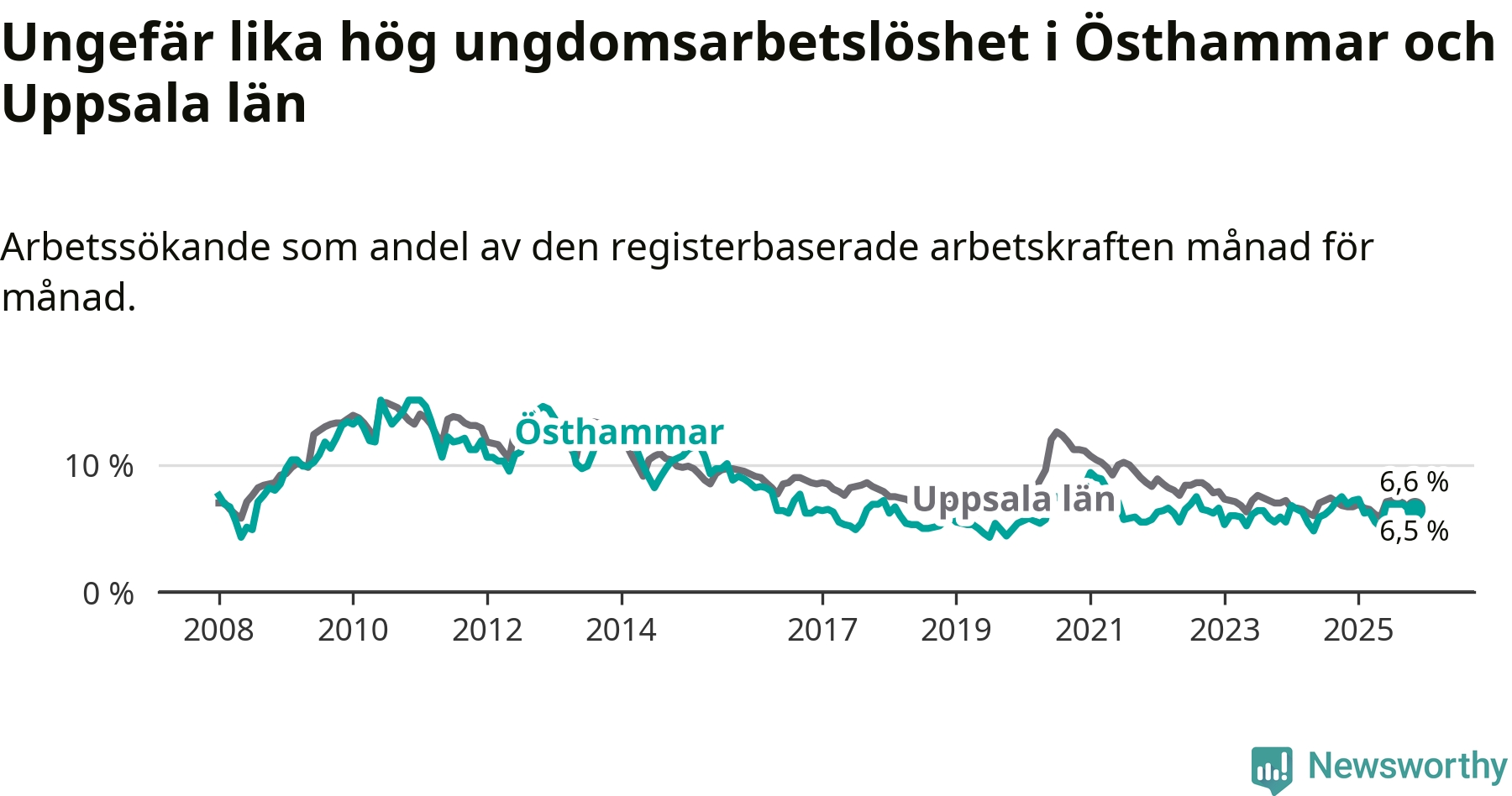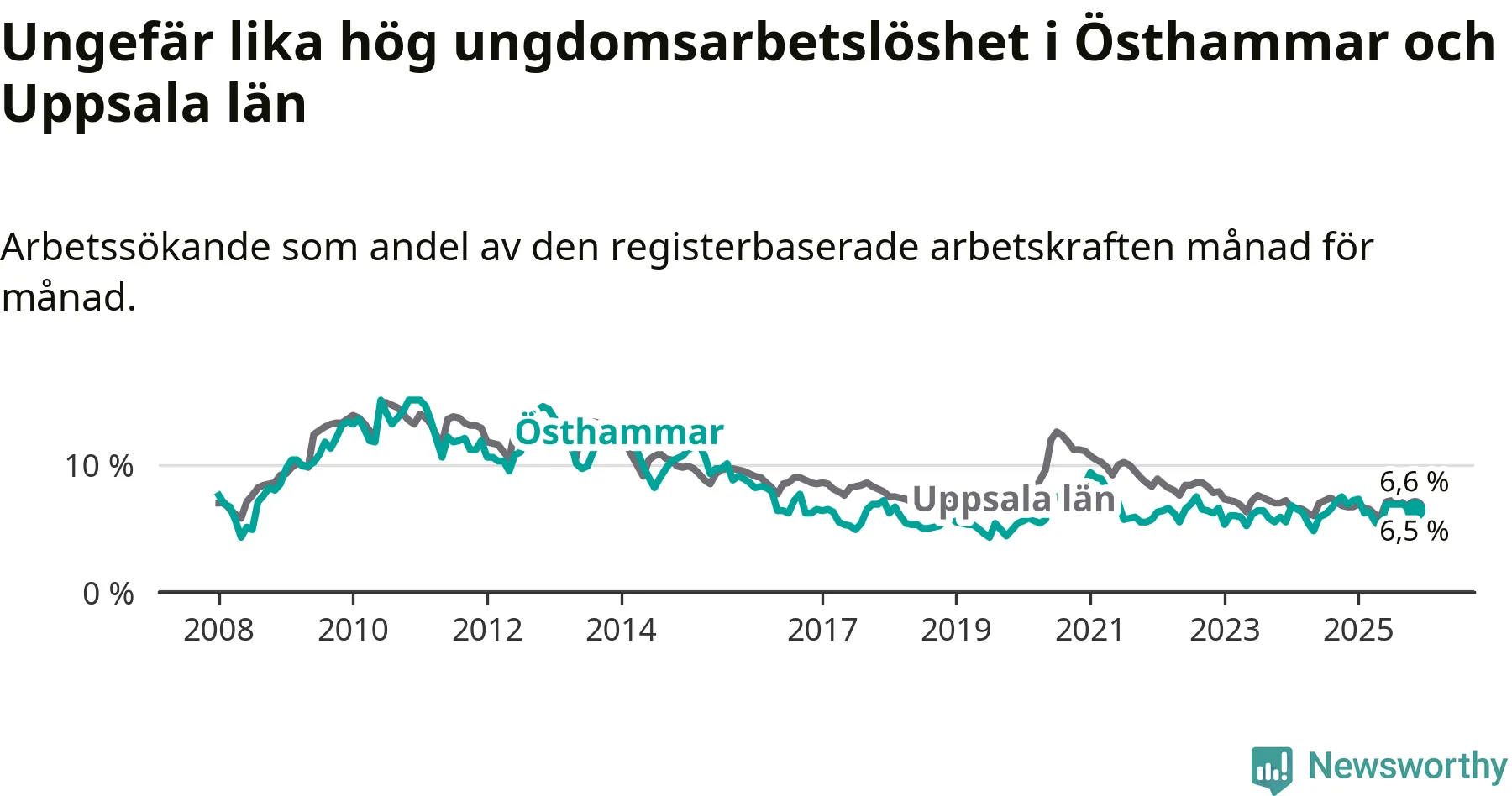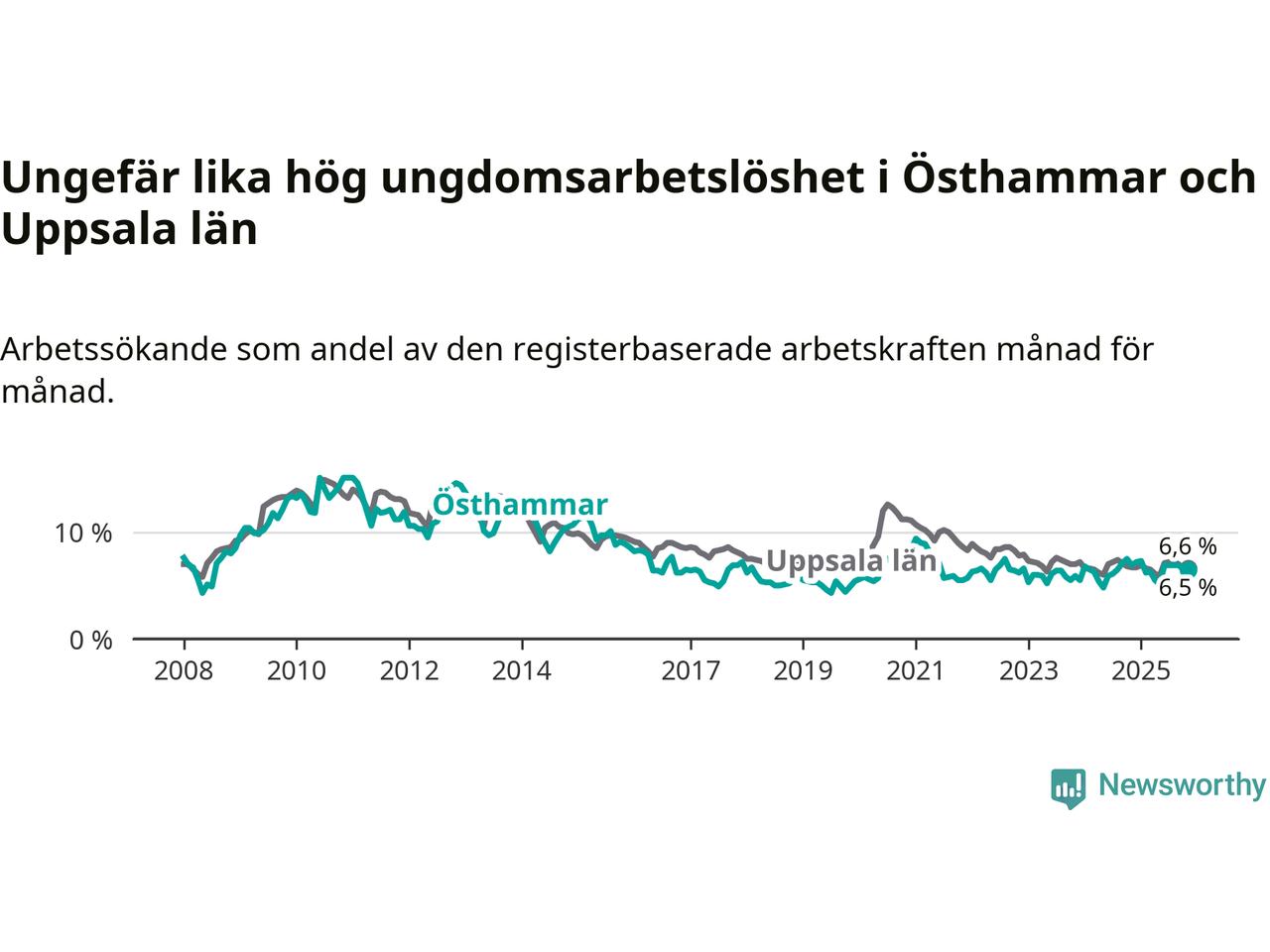Ny statistik från Arbetsförmedlingen visar på en uppgång i arbetslöshet i Östhammars kommun. I Uppsala däremot står arbetslösheten stilla.