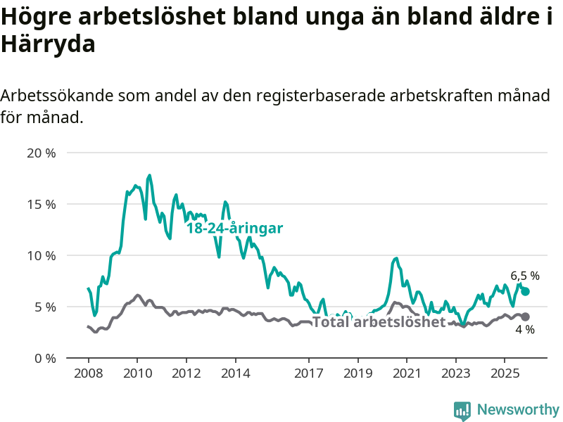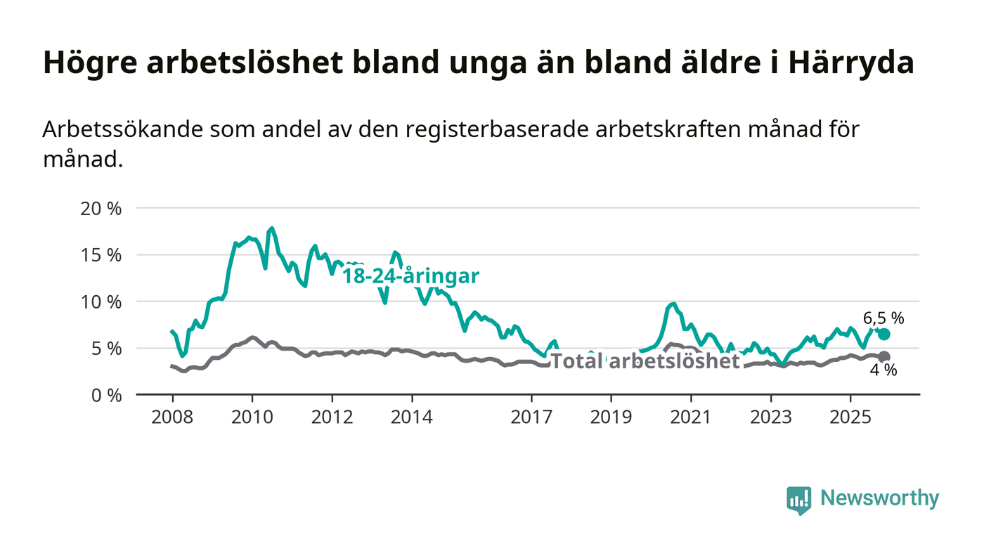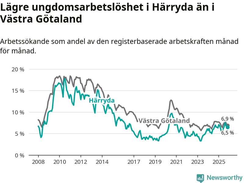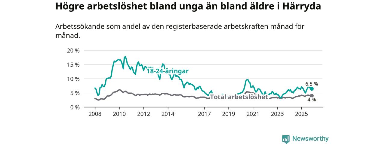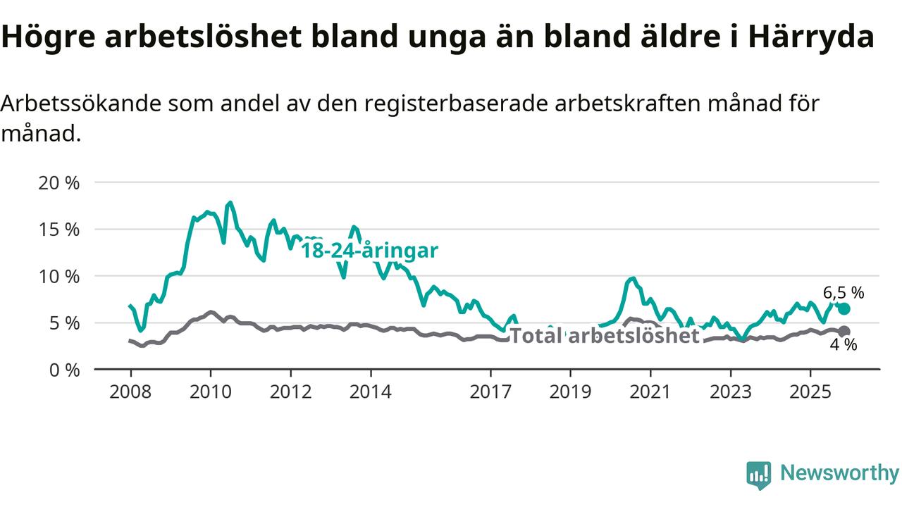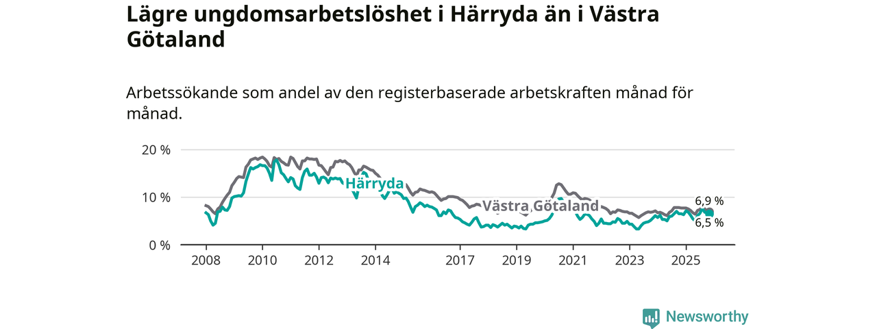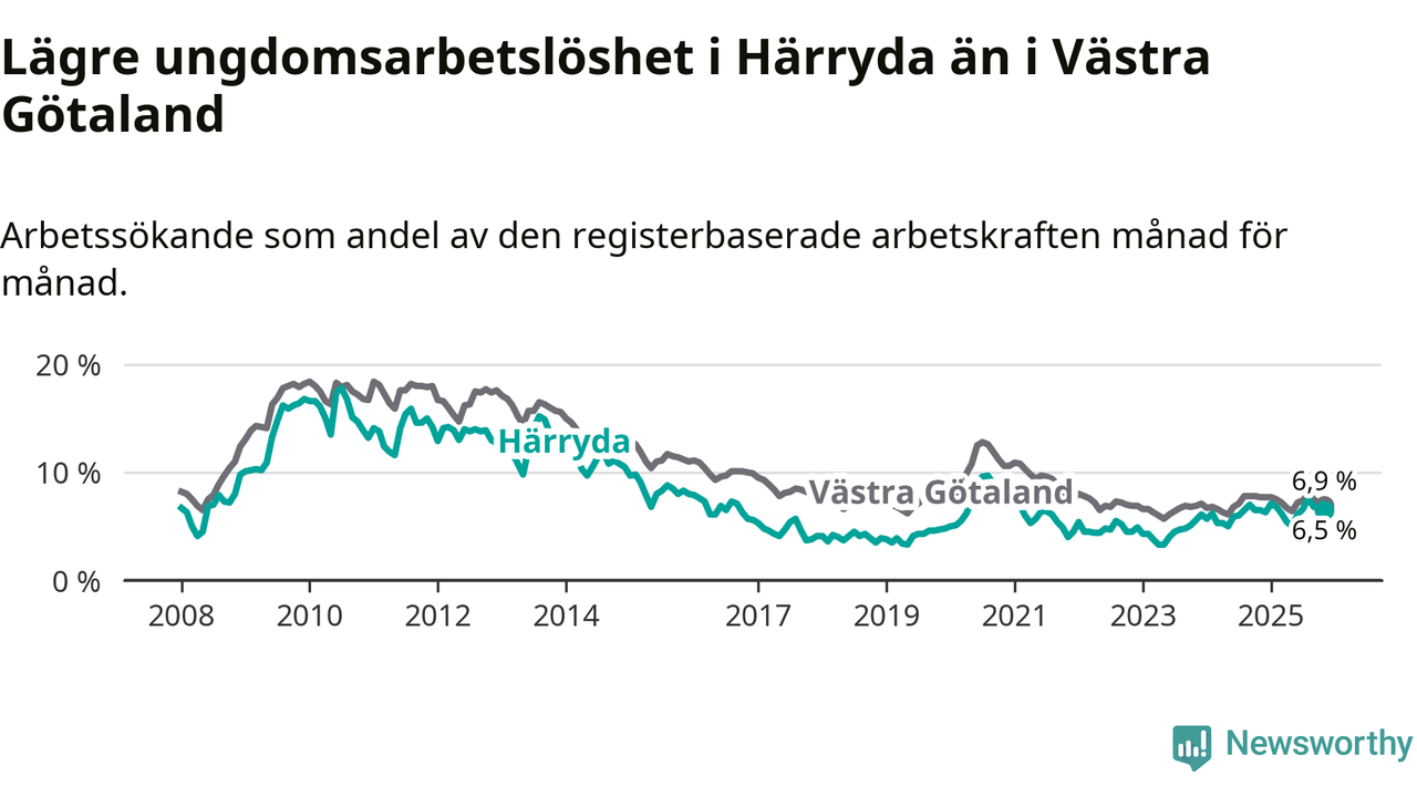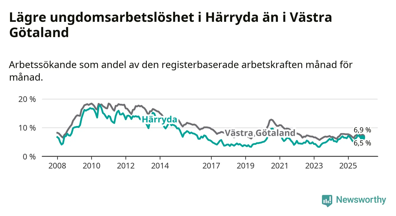 Graf: Arbetslöshet bland unga i Härryda kommun och Västra Götalands län