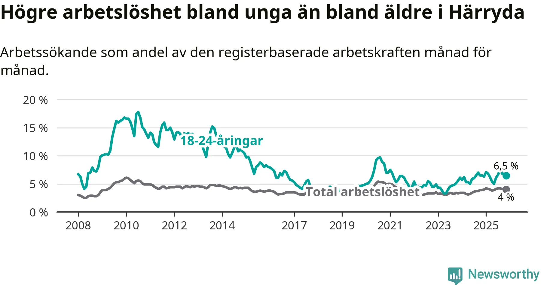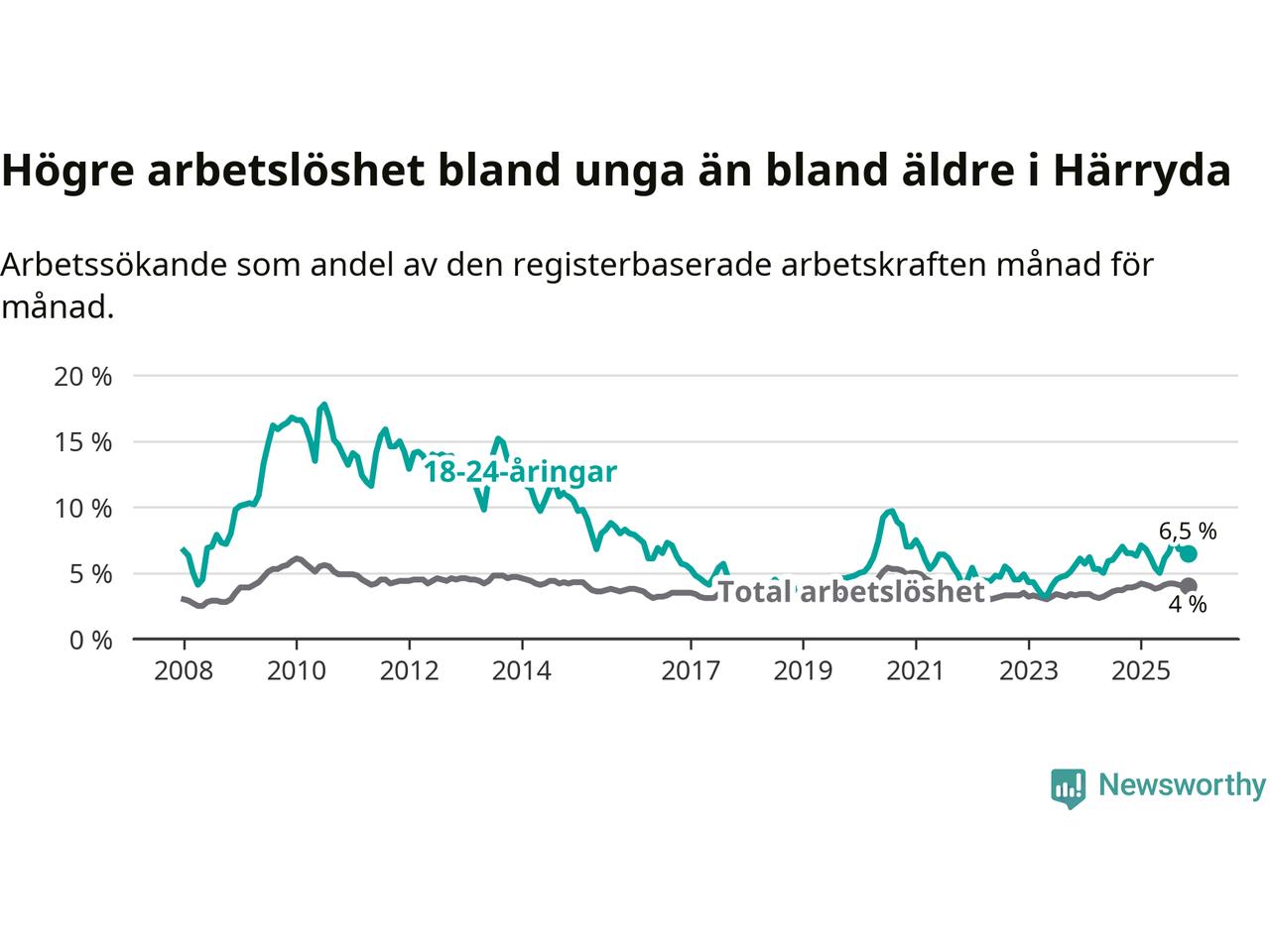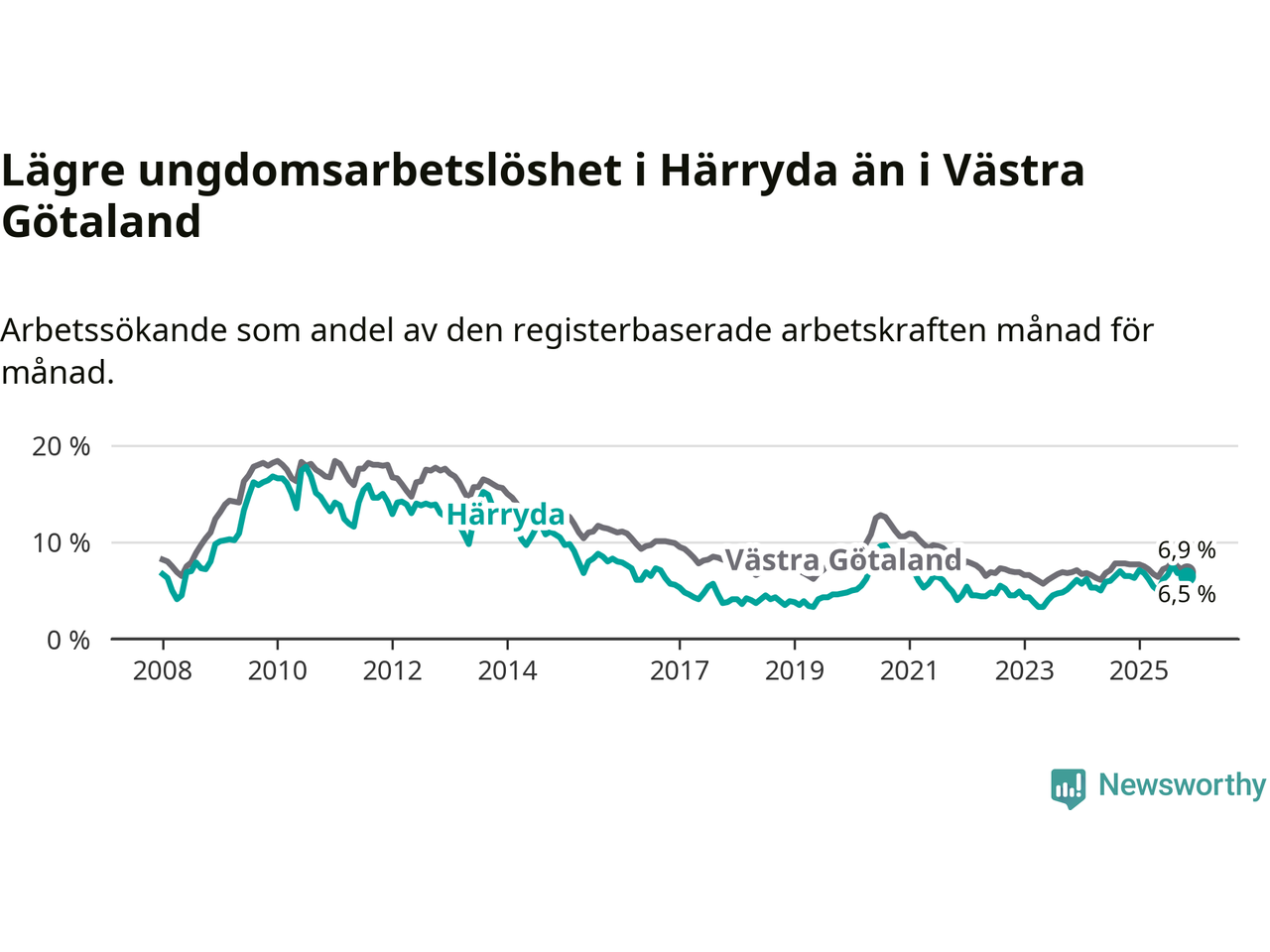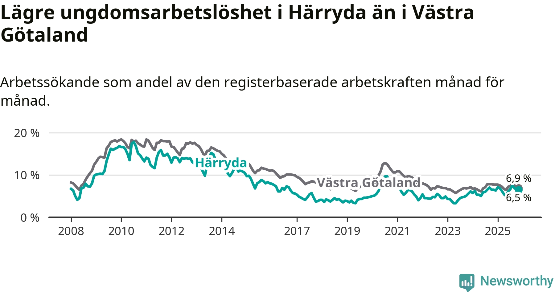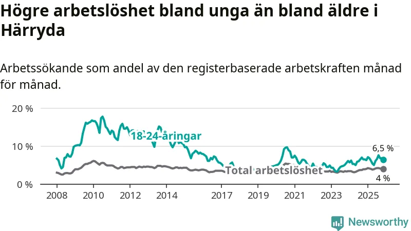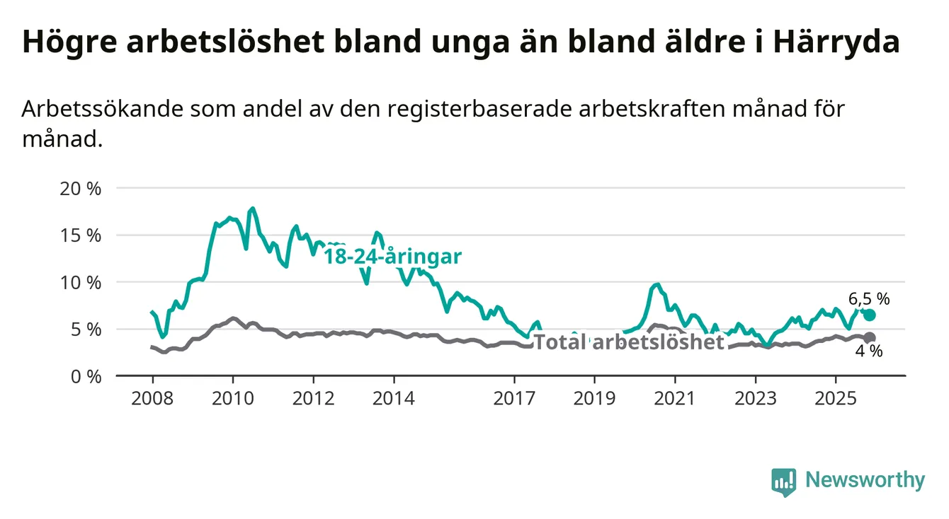 Graf: Arbetslöshet bland unga i Härryda kommun och Västra Götalands län