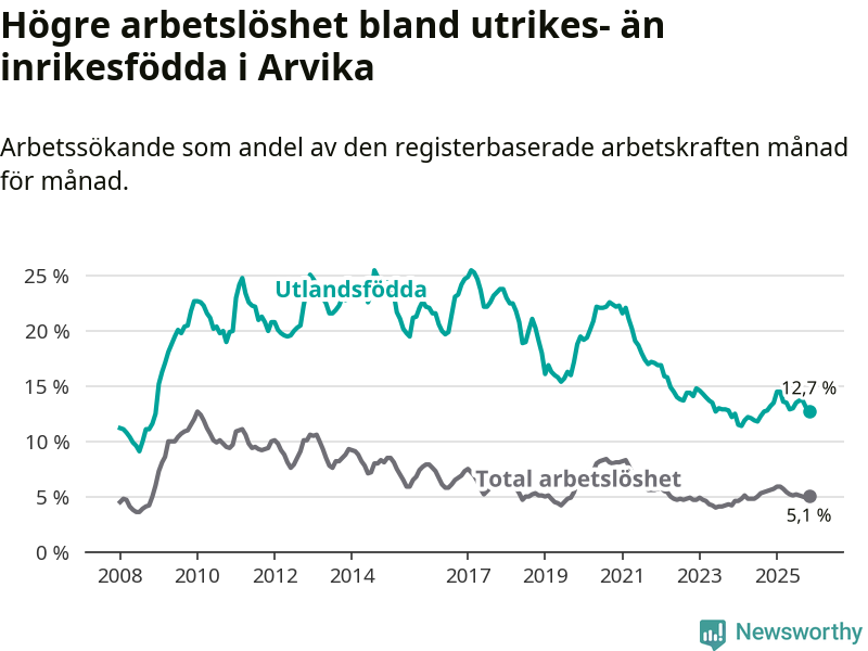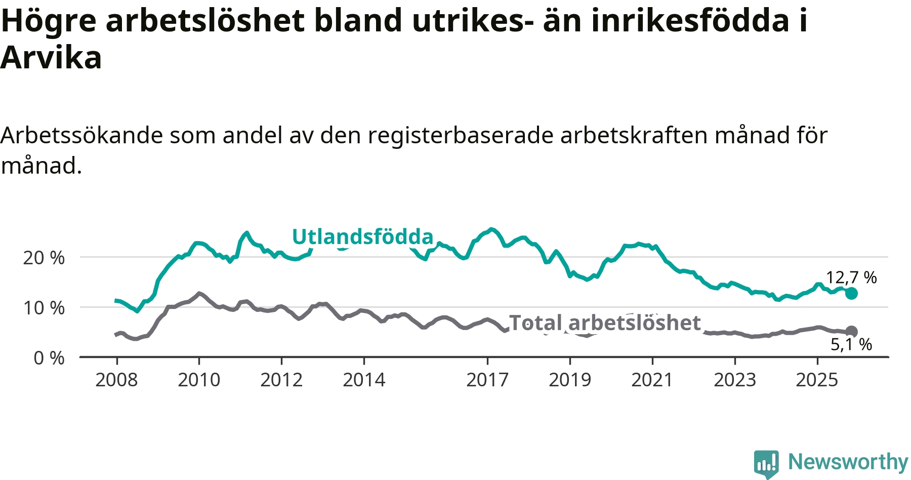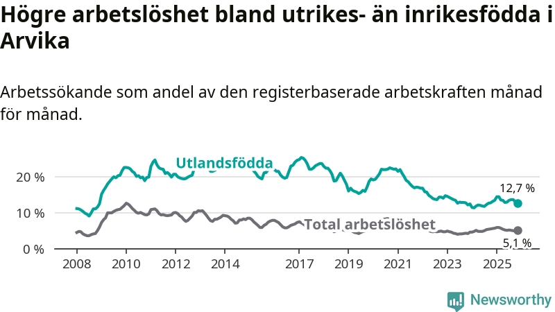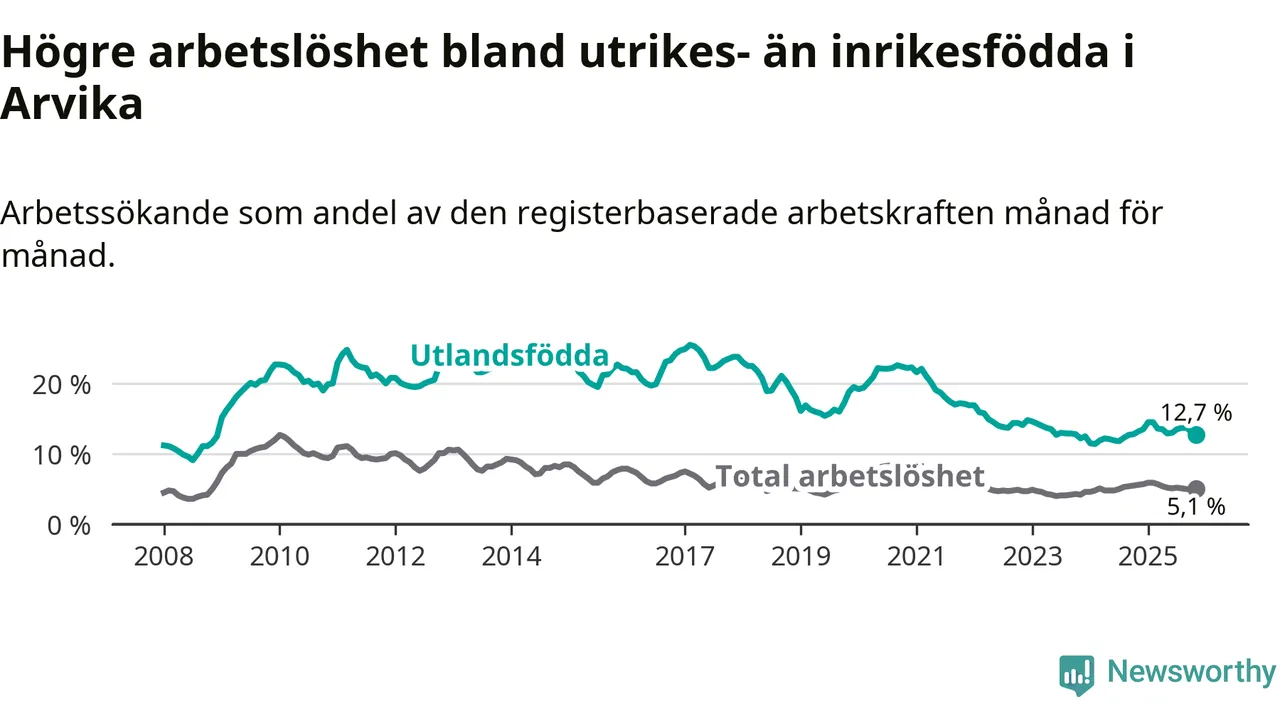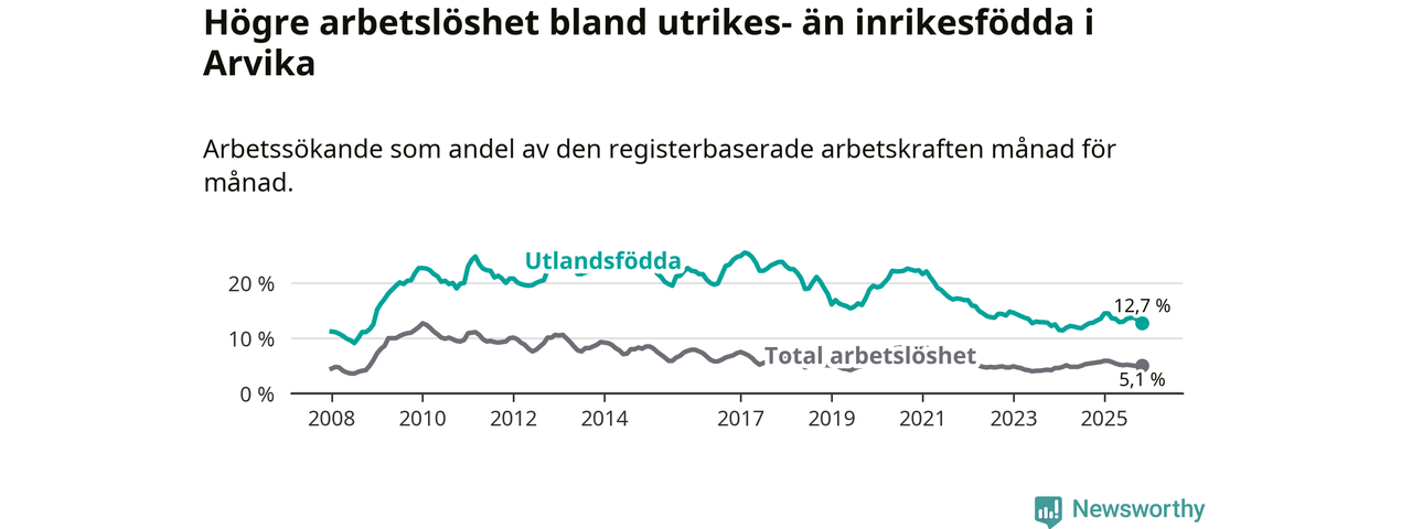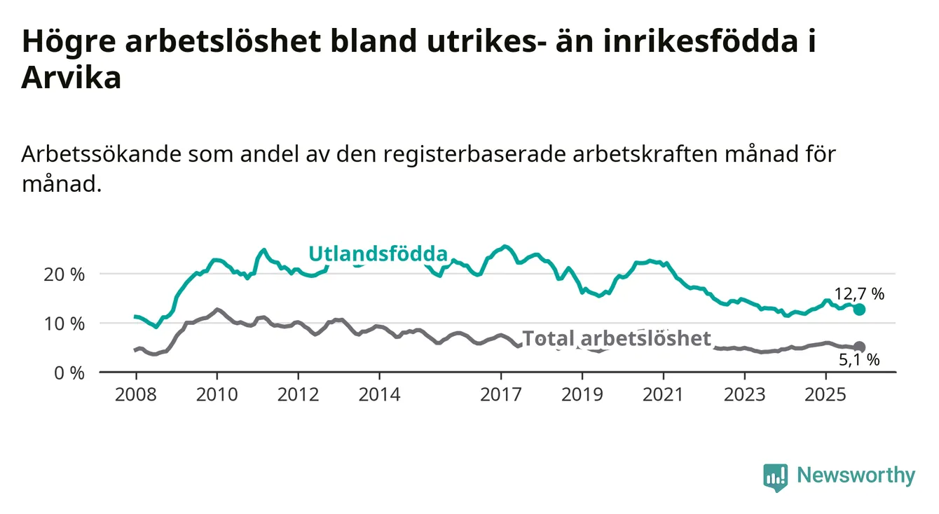 Läs mer om arbetslösheten bland utlandsfödda längre ner i den här texten.