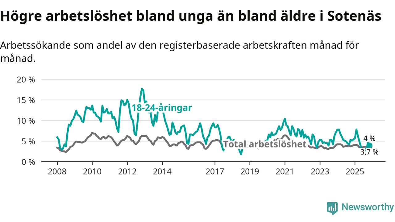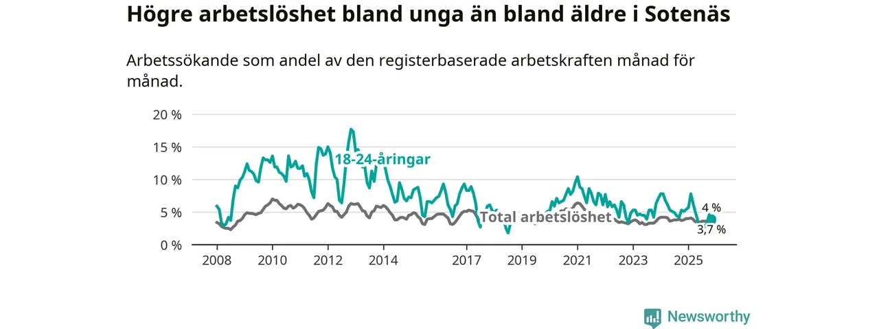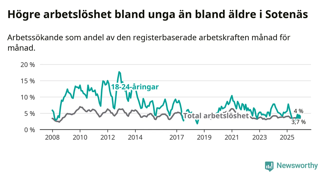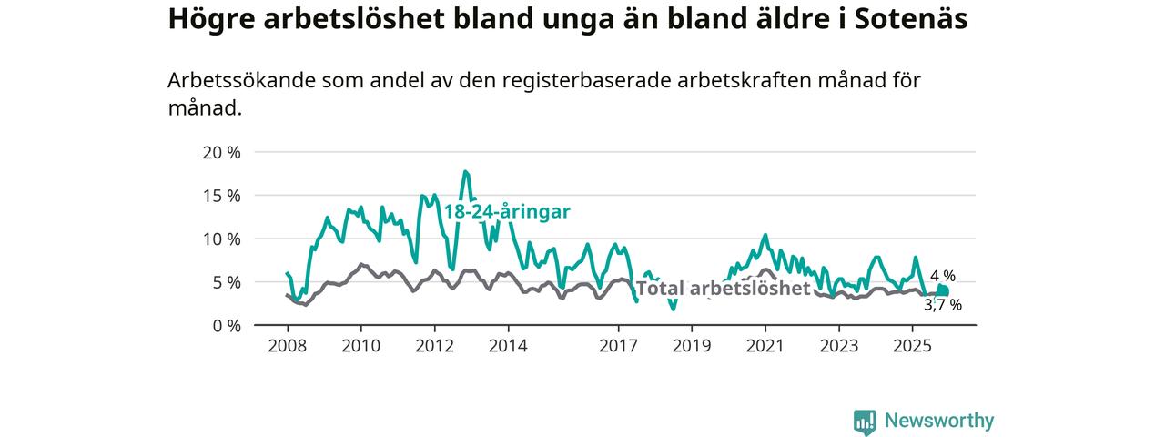 Graf: Arbetslöshet bland unga i Sotenäs kommun och Västra Götalands län