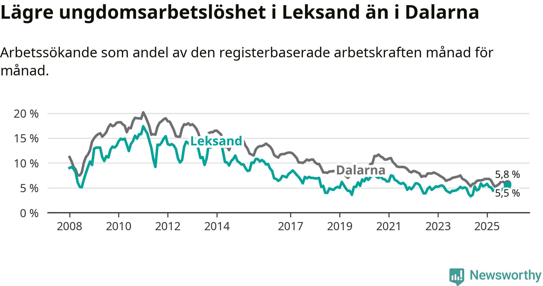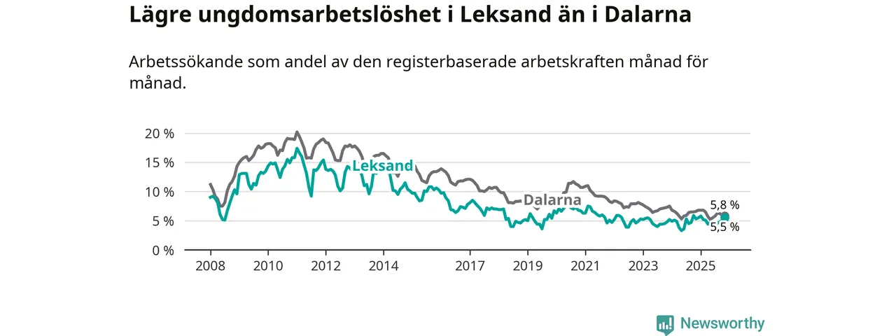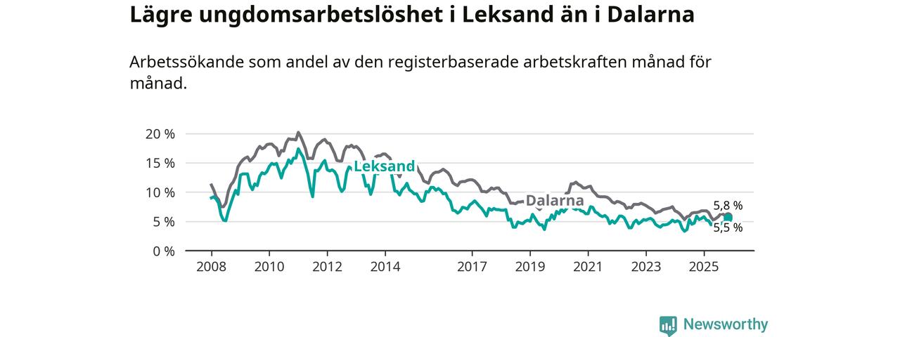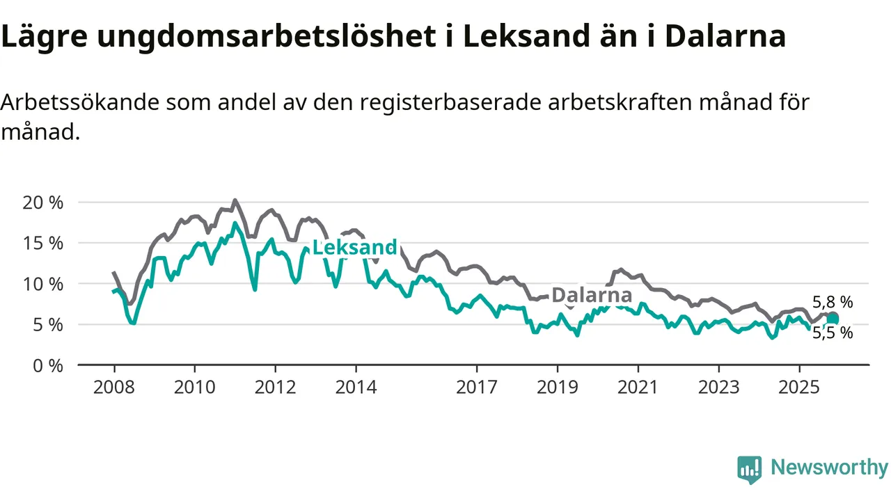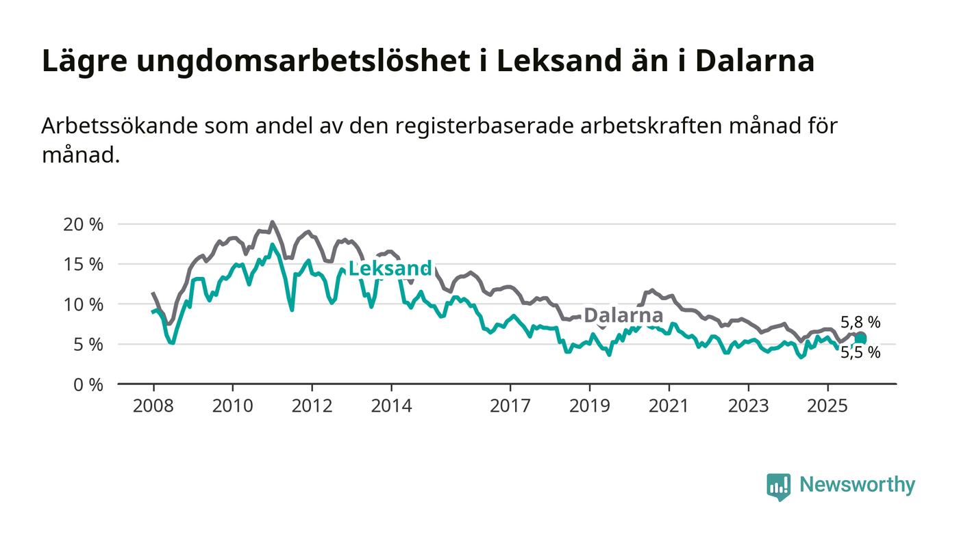 Graf: Arbetslöshet bland unga i Leksands kommun och Dalarnas län