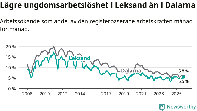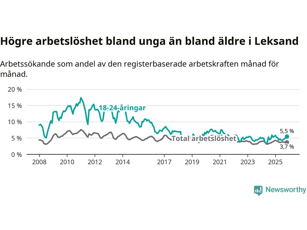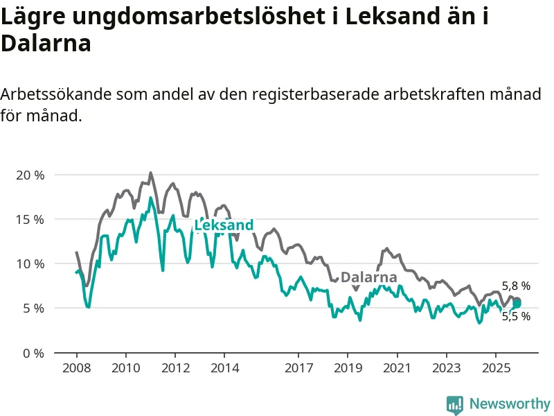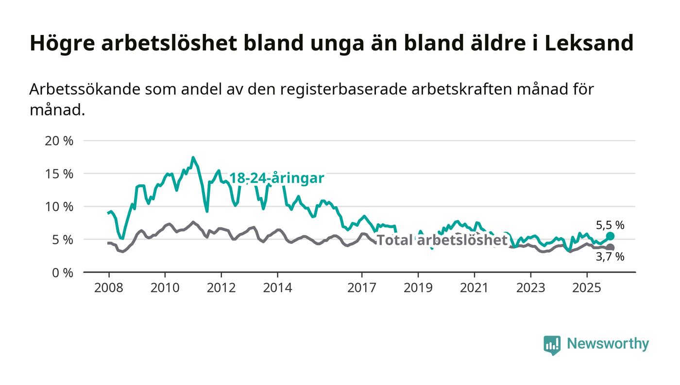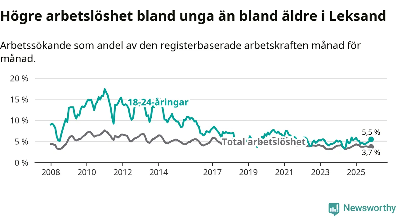 Graf: Arbetslöshet bland unga i Leksands kommun och Dalarnas län