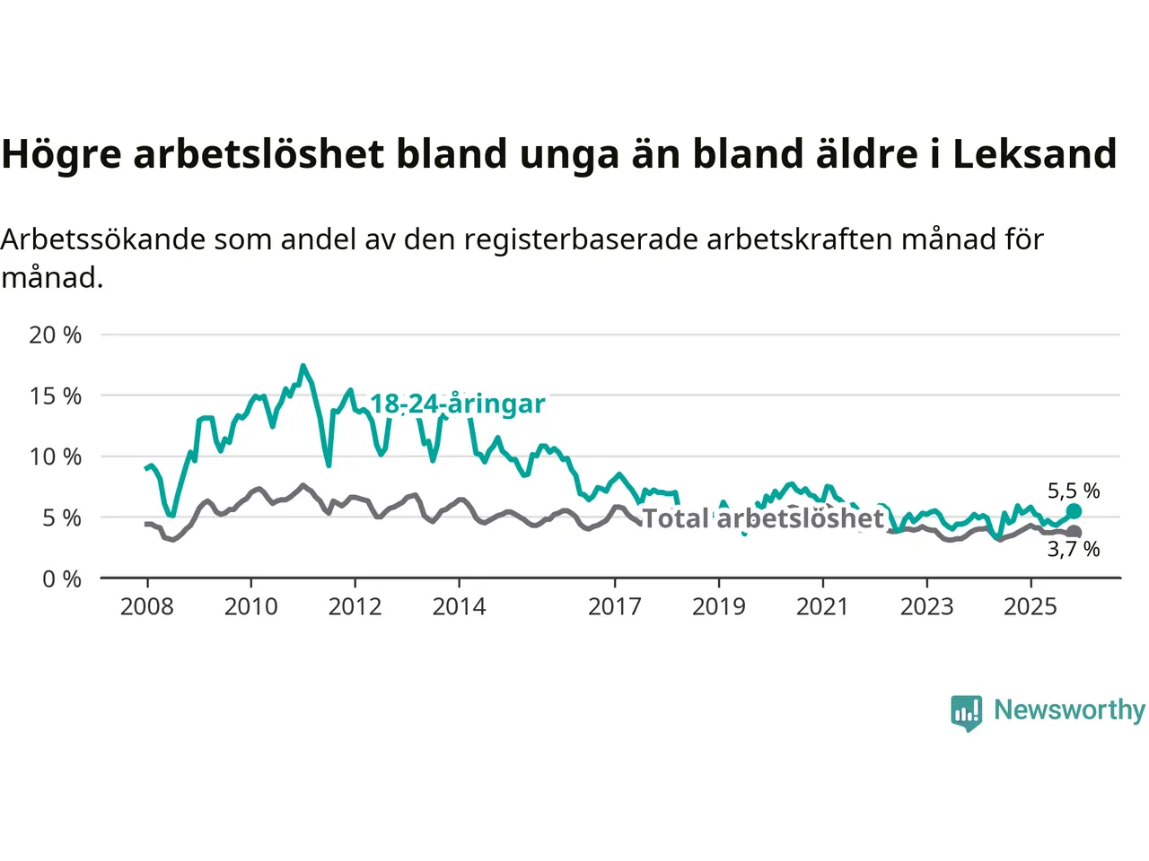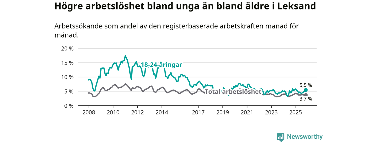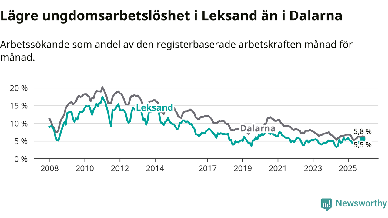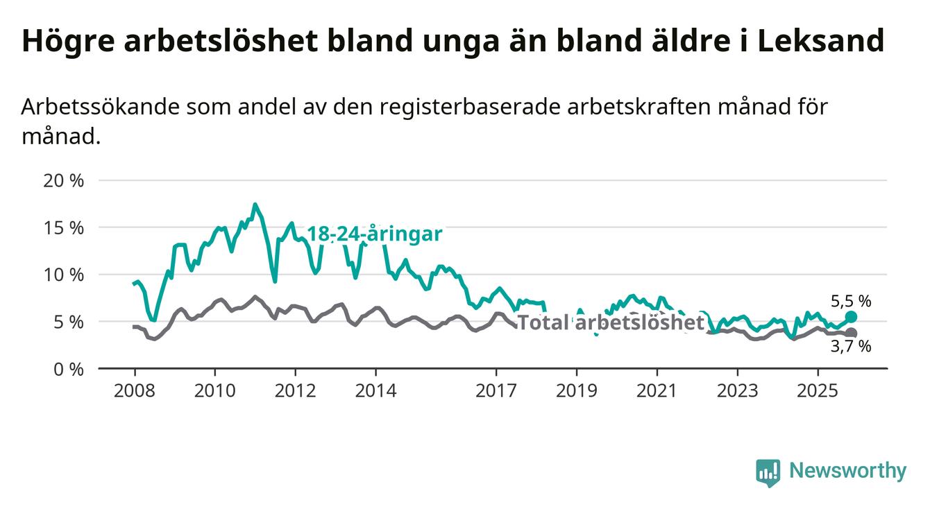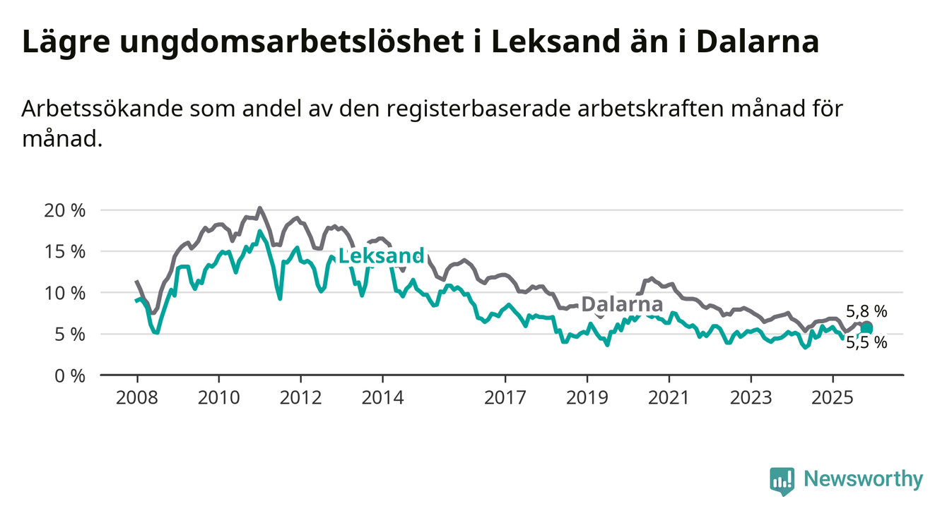 Graf: Arbetslöshet bland unga i Leksands kommun och Dalarnas län
