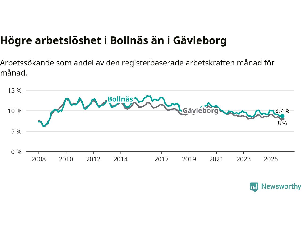 | Bollnäs | 8,7 % | −0,5 % ▼ |