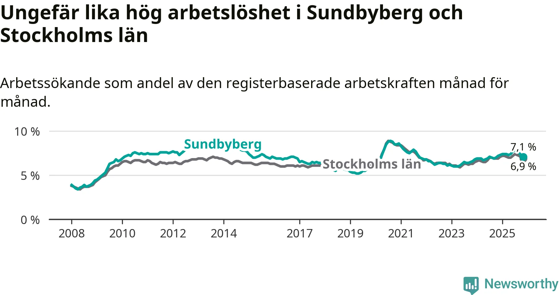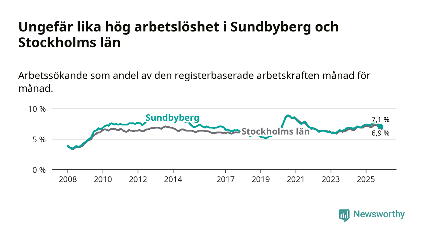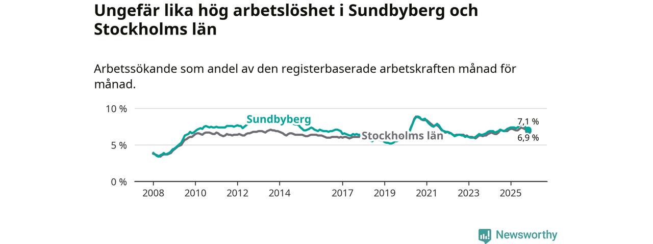 Graf: Arbetslöshet i Sundbybergs kommun och Stockholms län