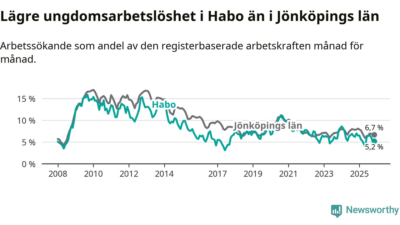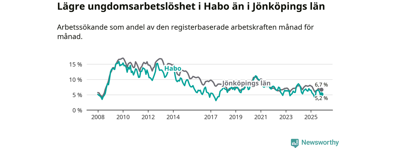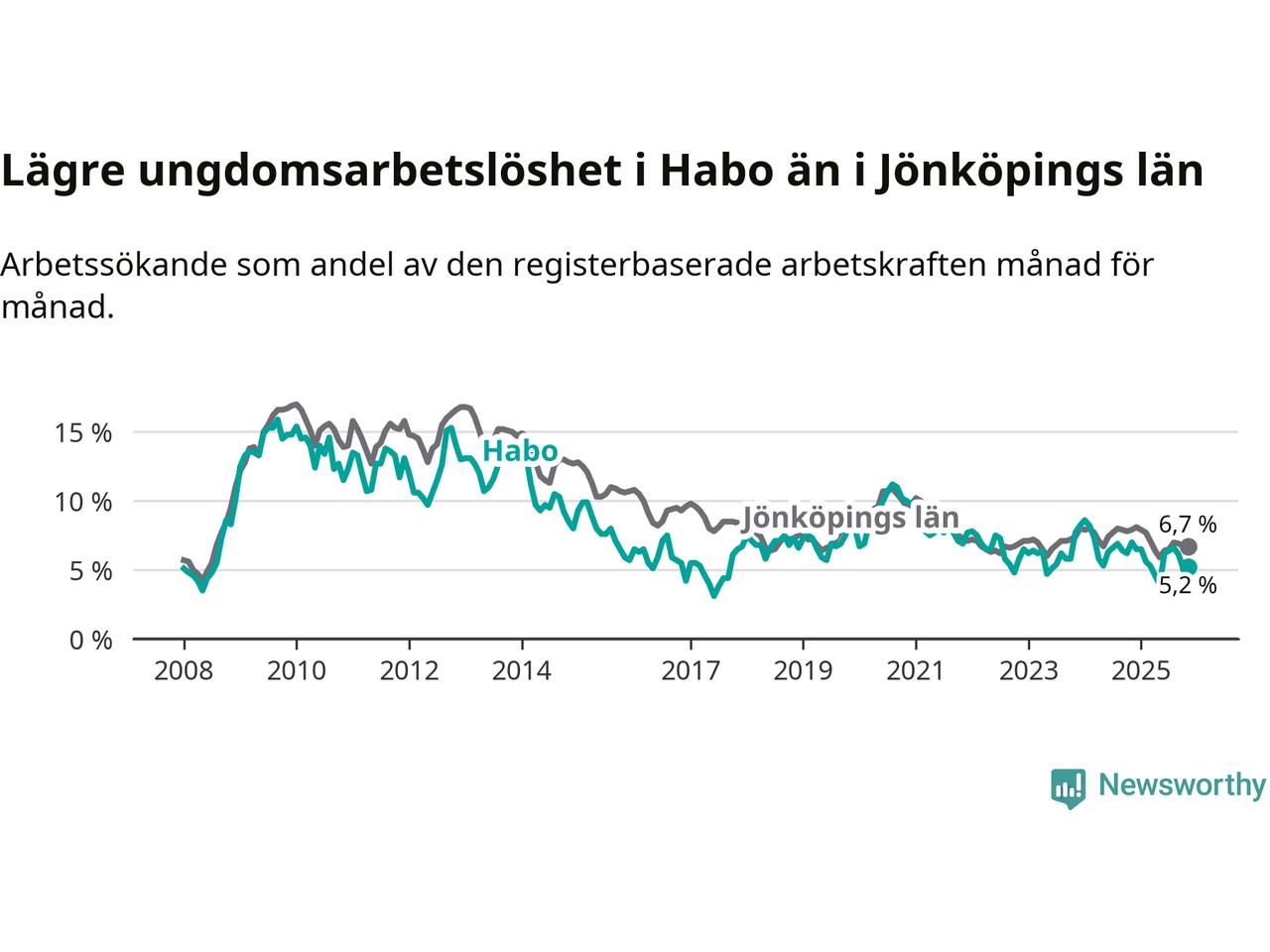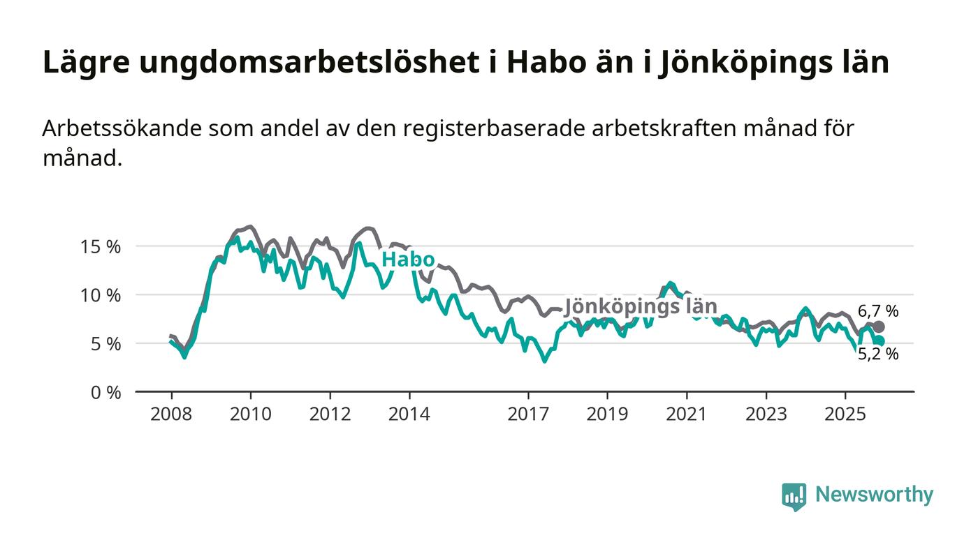 Graf: Arbetslöshet bland unga i Habo kommun och Jönköpings län
