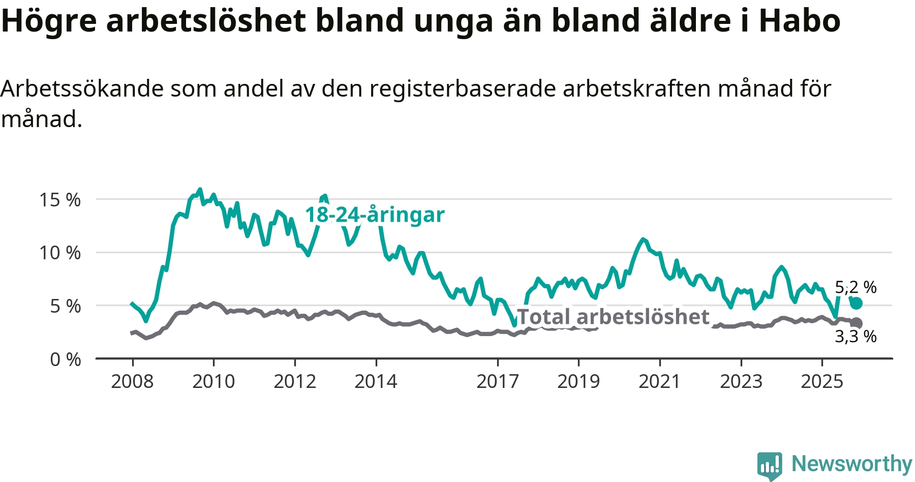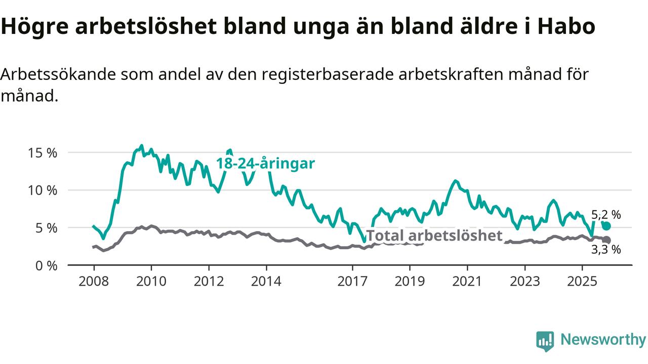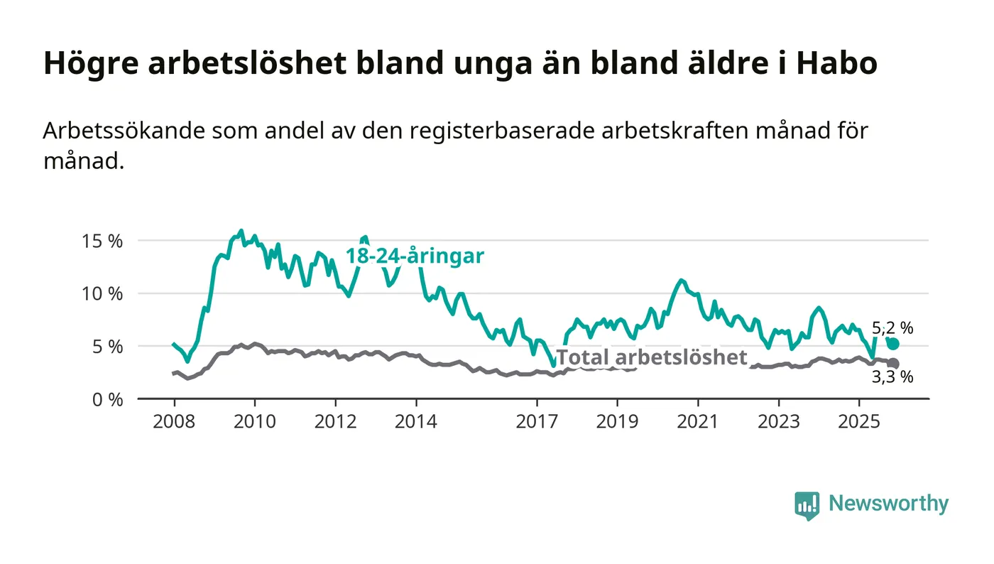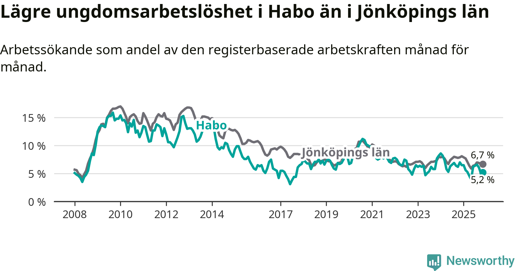 Graf: Arbetslöshet bland unga i Habo kommun och Jönköpings län