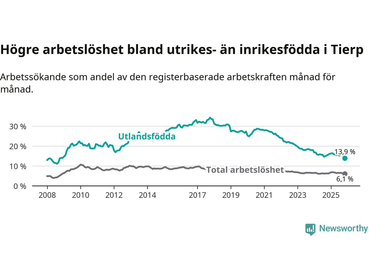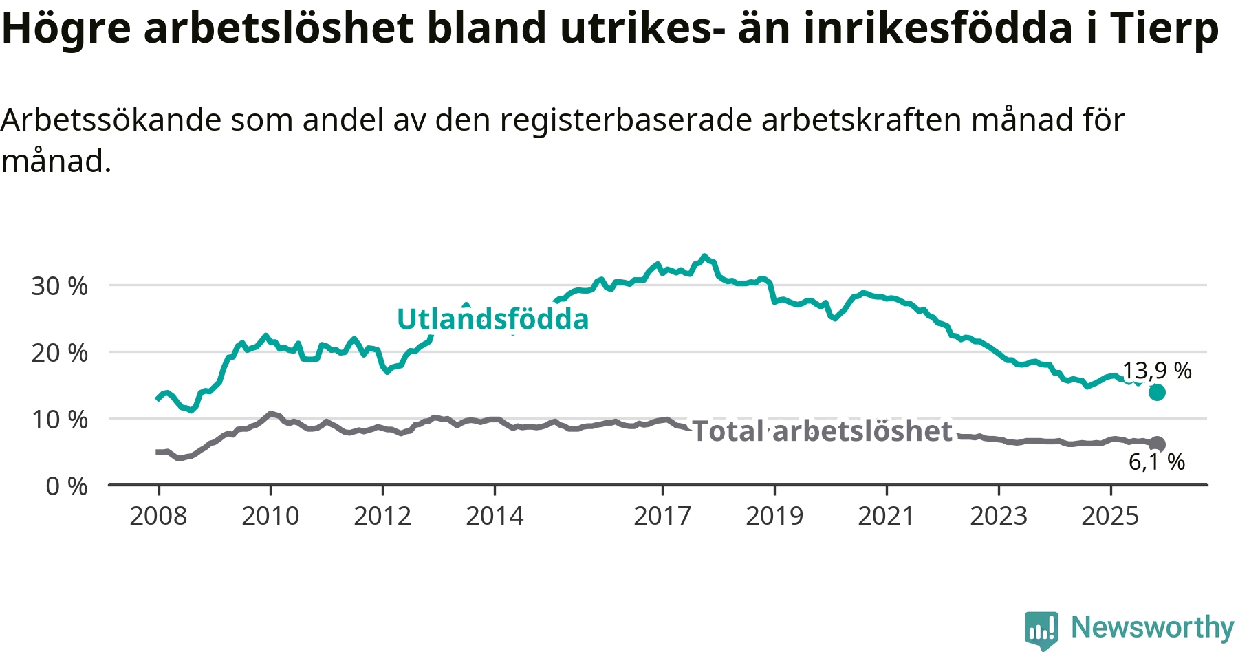 Läs mer om arbetslösheten bland utlandsfödda längre ner i den här texten.