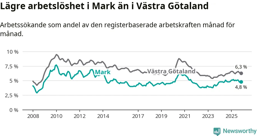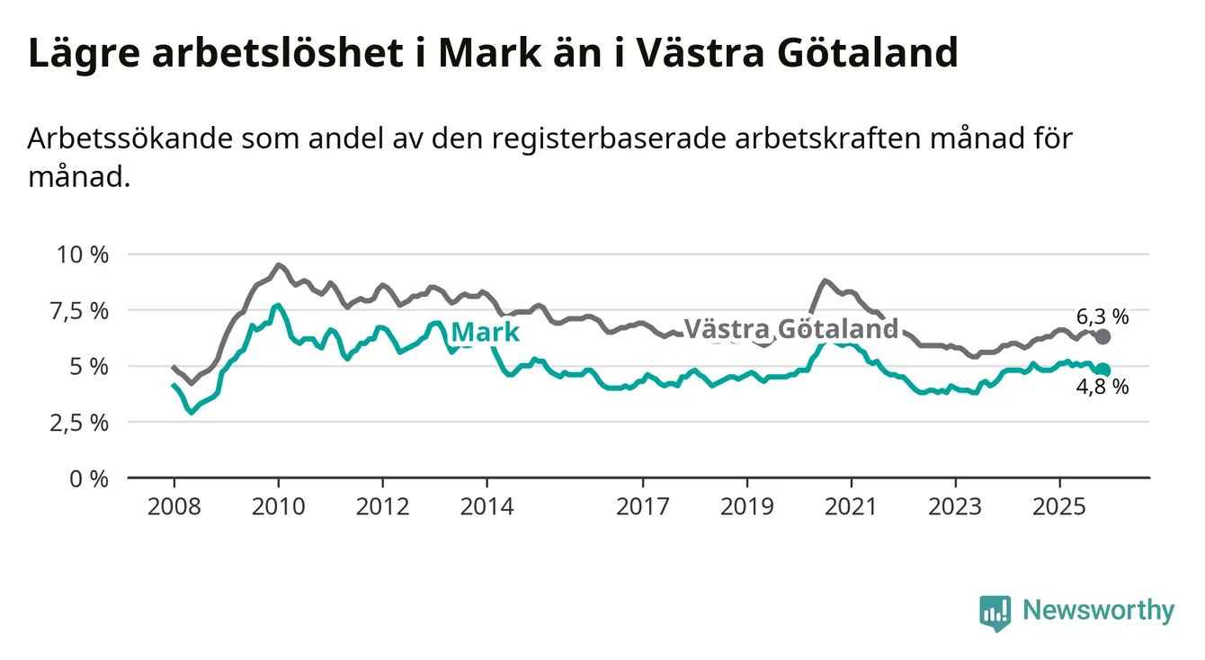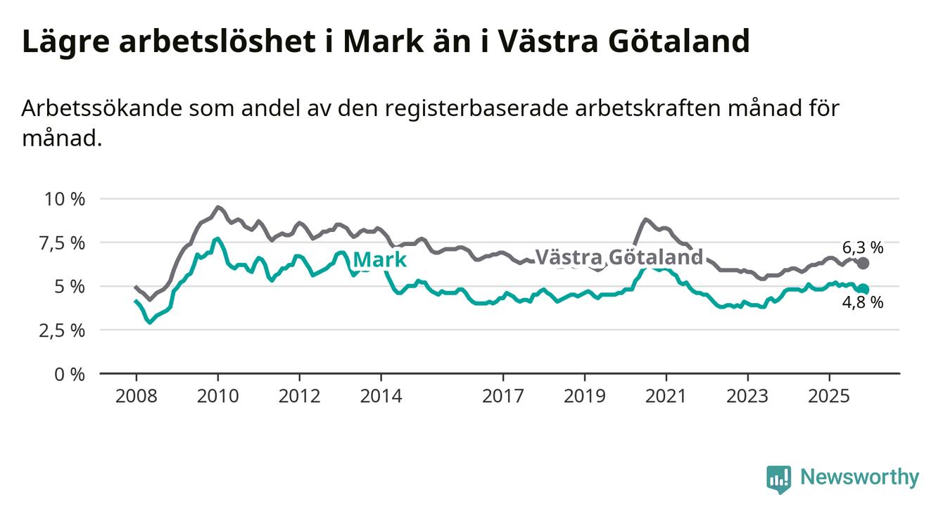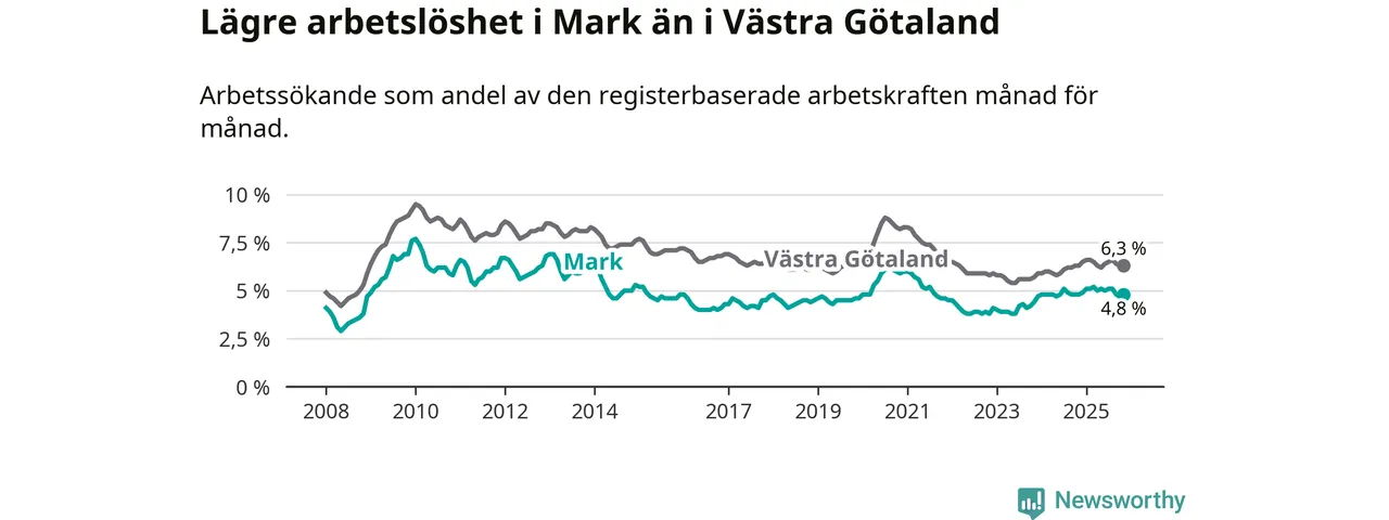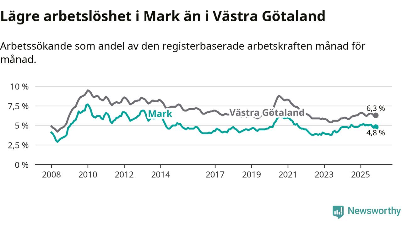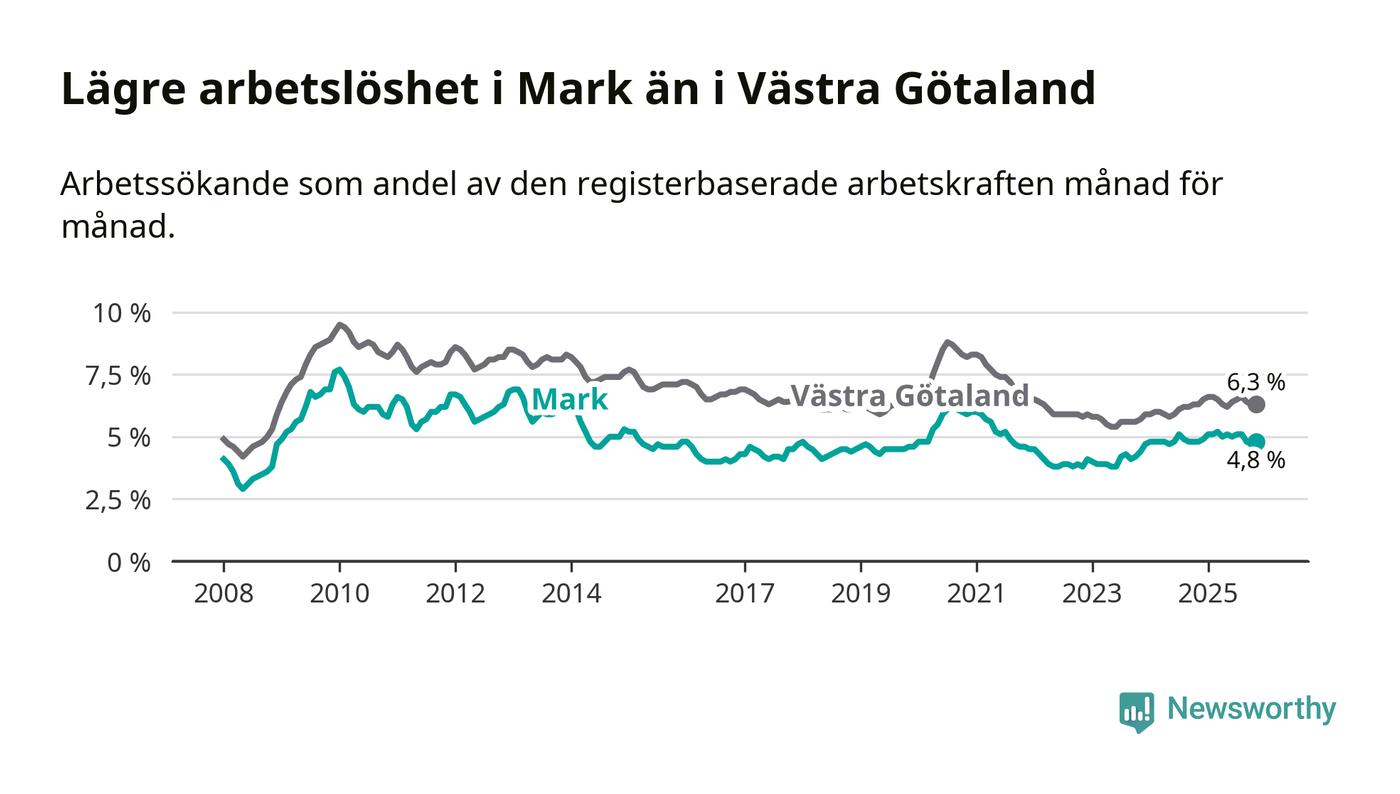 Graf: Arbetslöshet i Marks kommun och Västra Götalands län