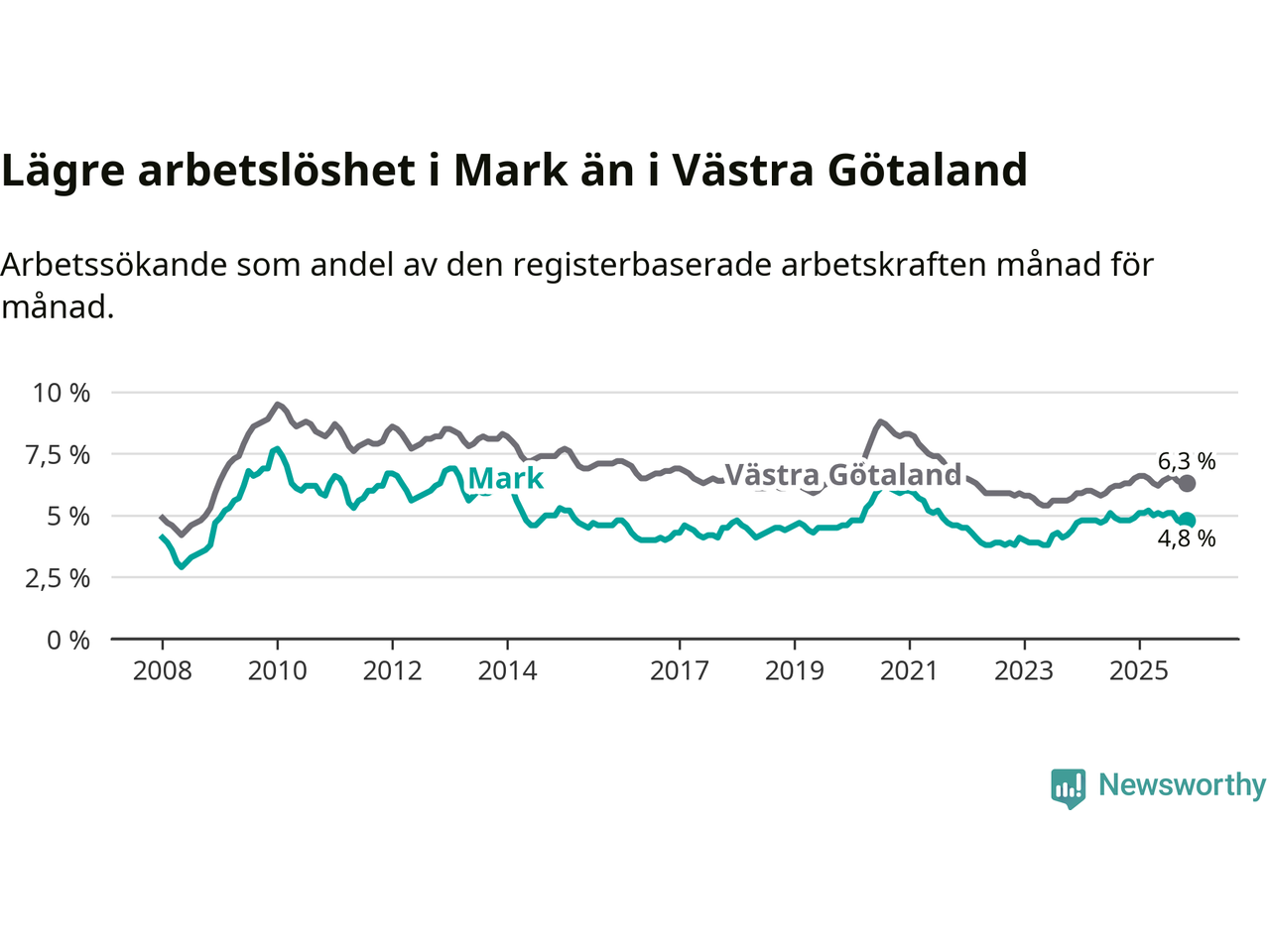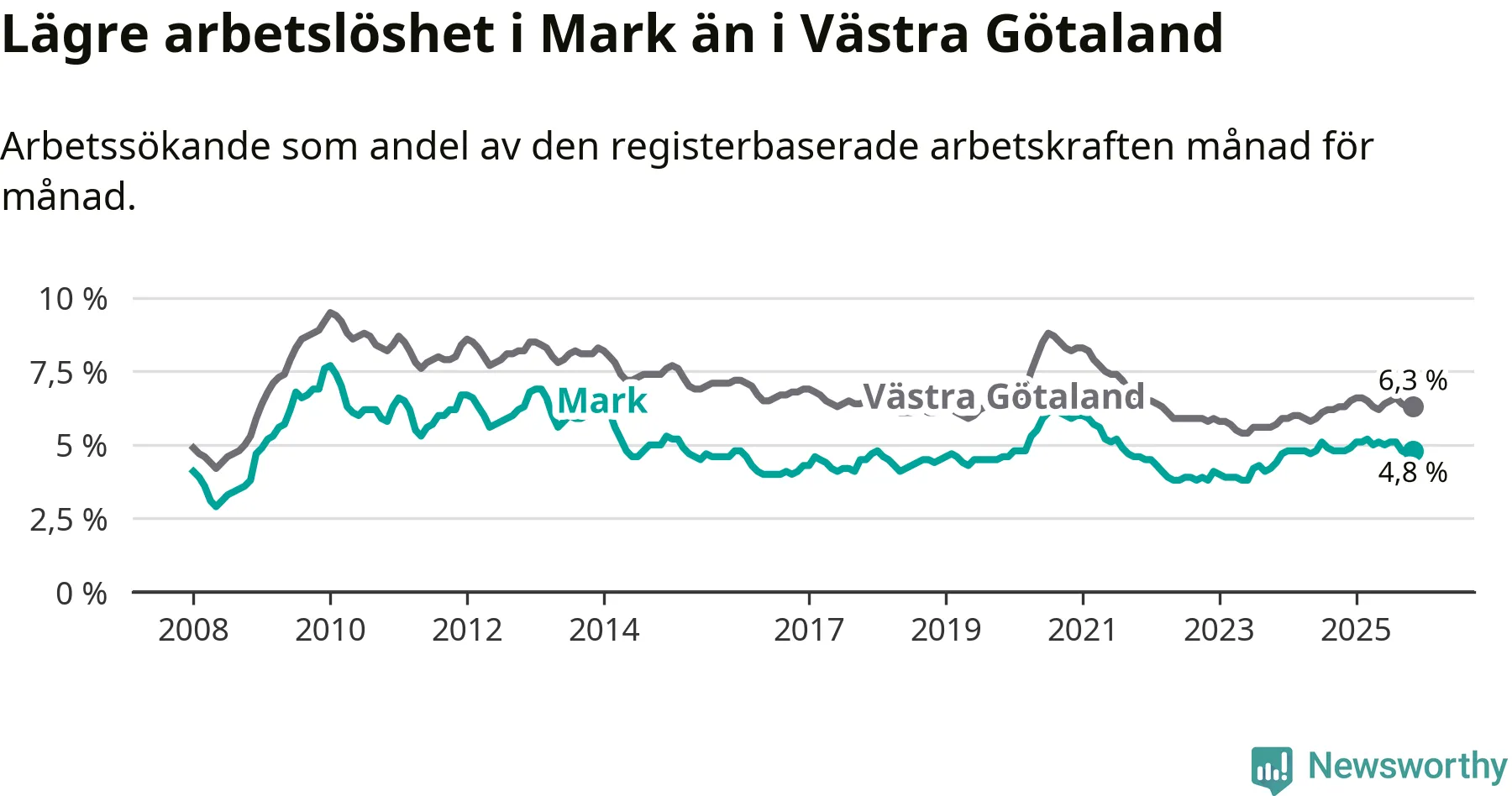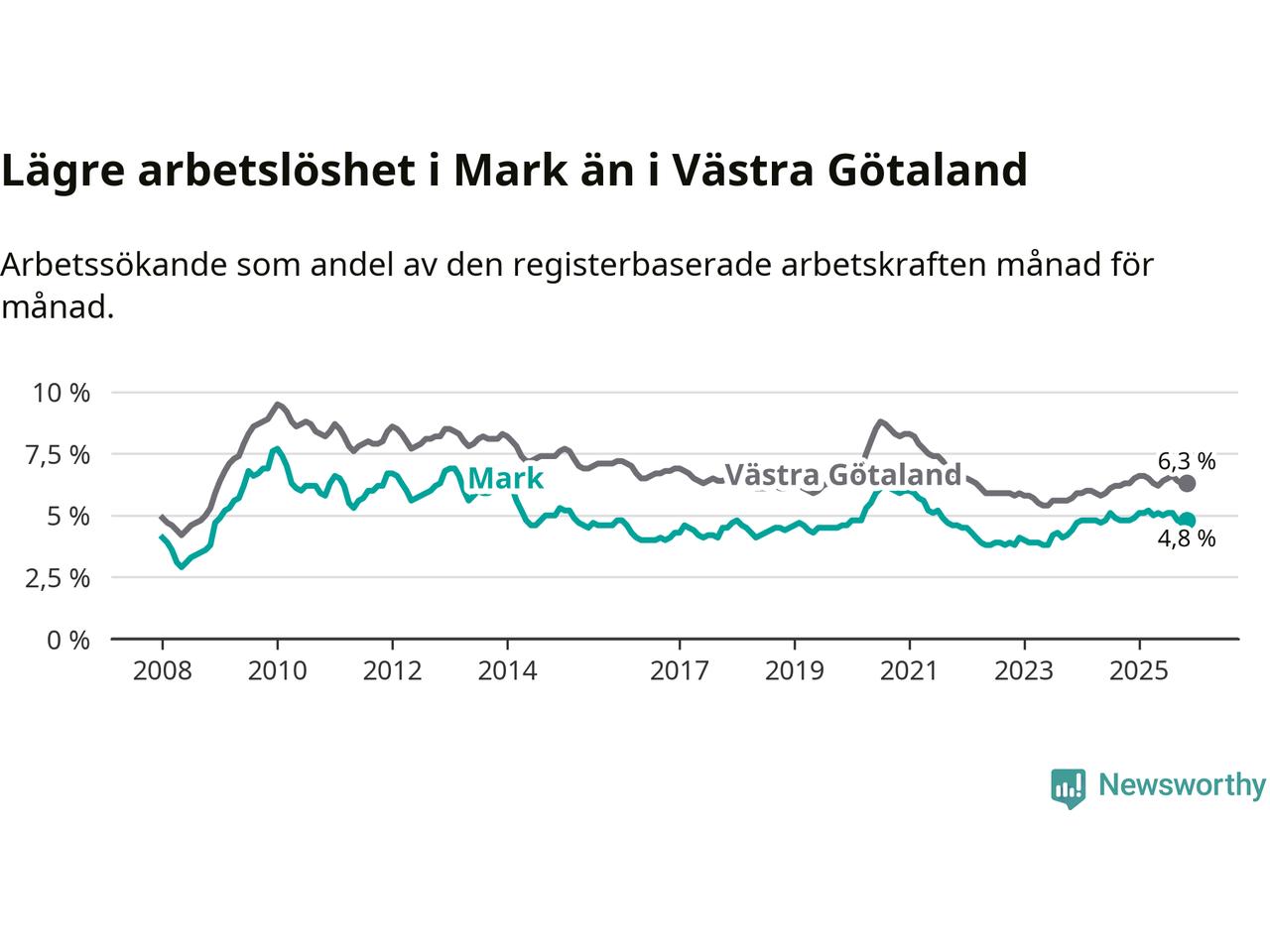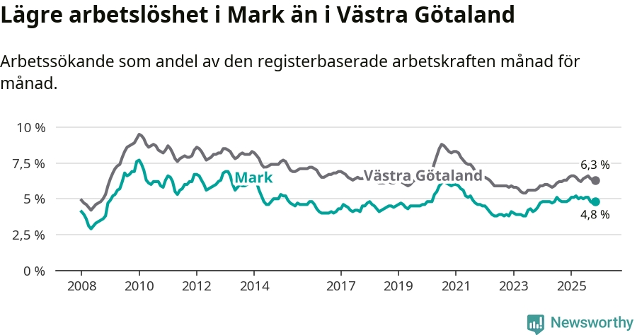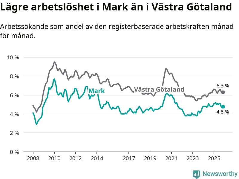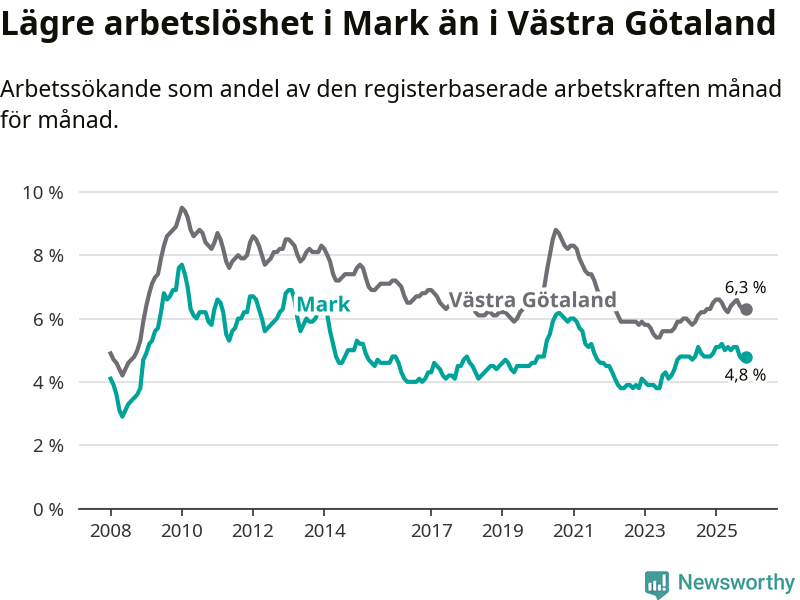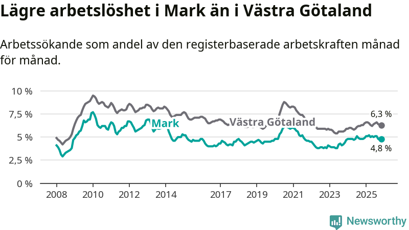 Graf: Arbetslöshet i Marks kommun och Västra Götalands län