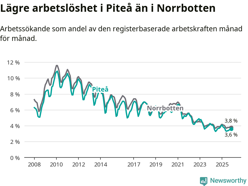 Graf: Arbetslöshet i Piteå kommun och Norrbottens län