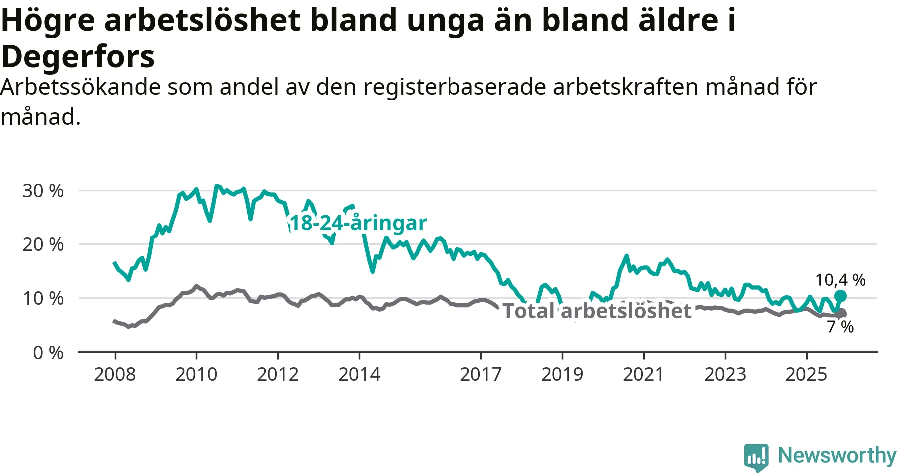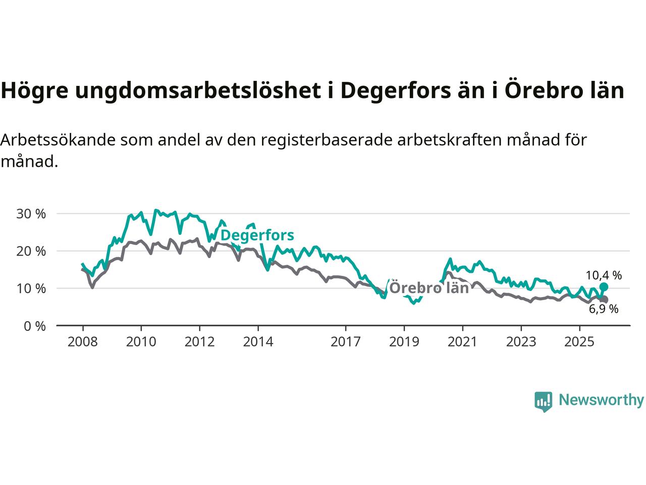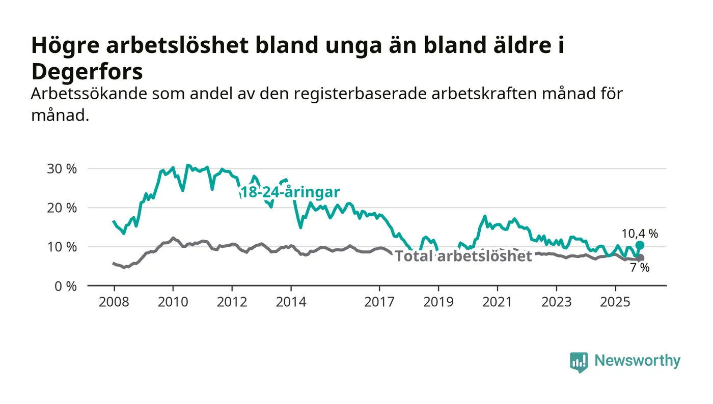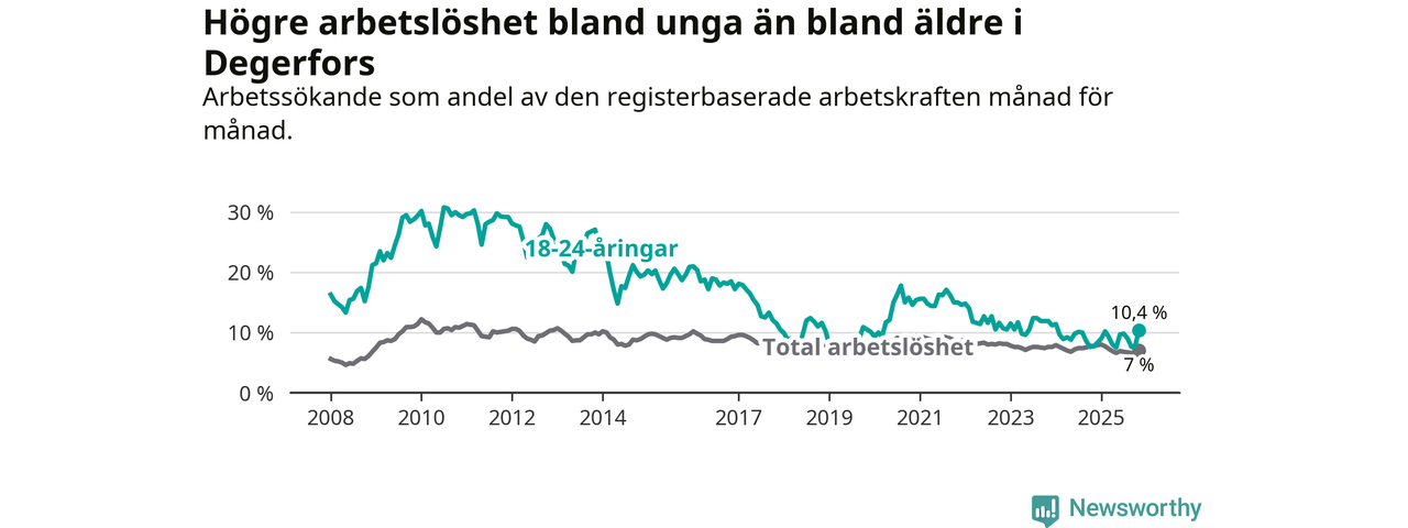 Graf: Arbetslöshet bland unga i Degerfors kommun och Örebro län