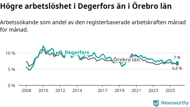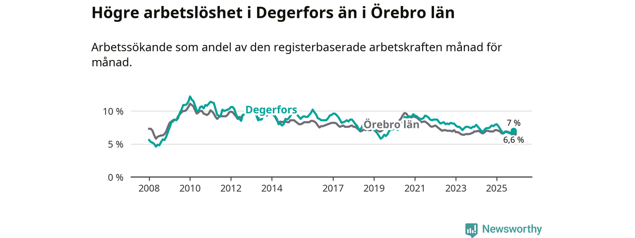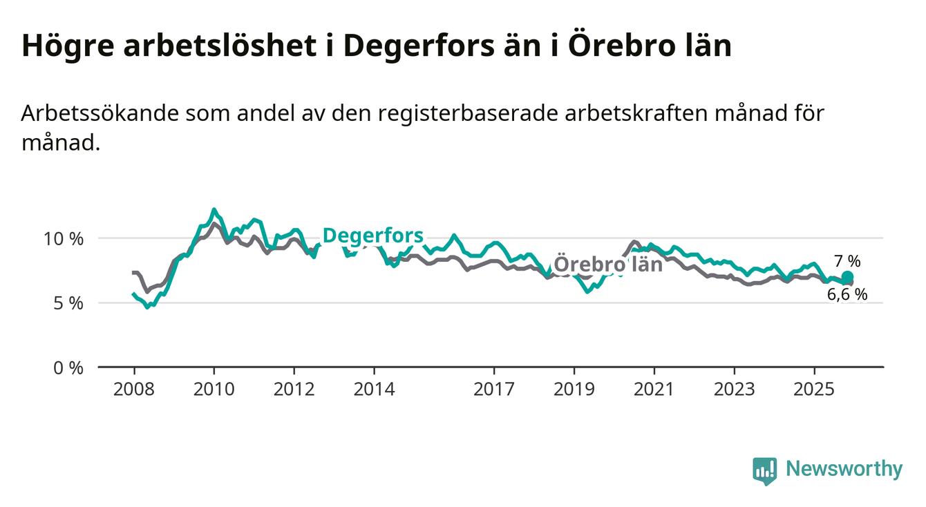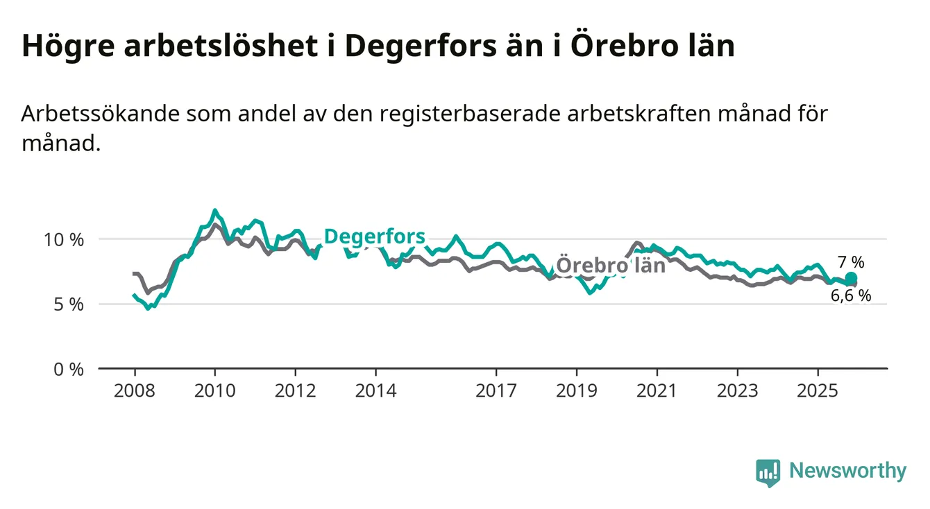 Graf: Arbetslöshet i Degerfors kommun och Örebro län
