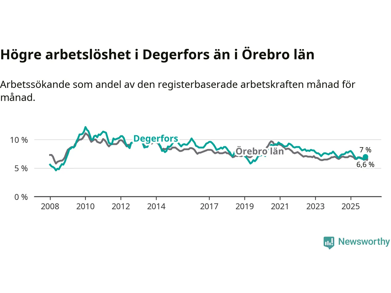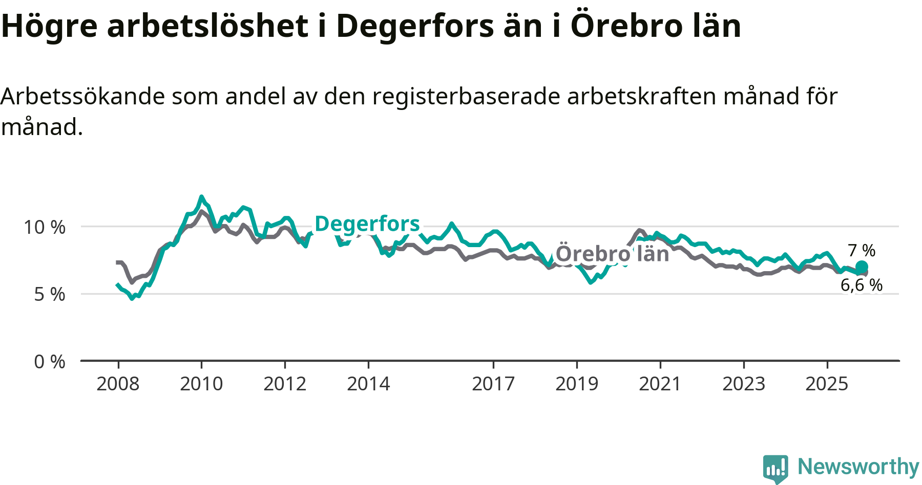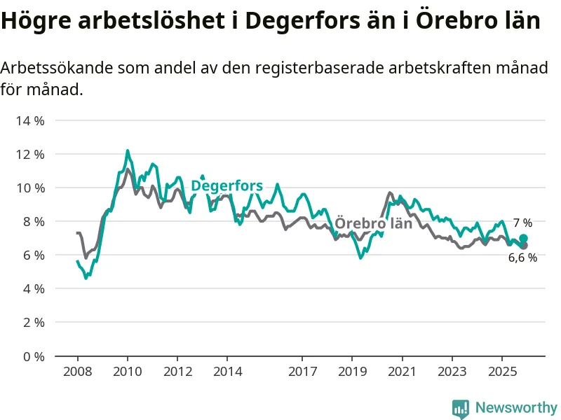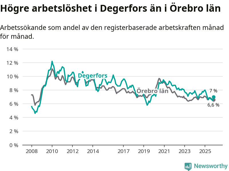 Graf: Arbetslöshet i Degerfors kommun och Örebro län