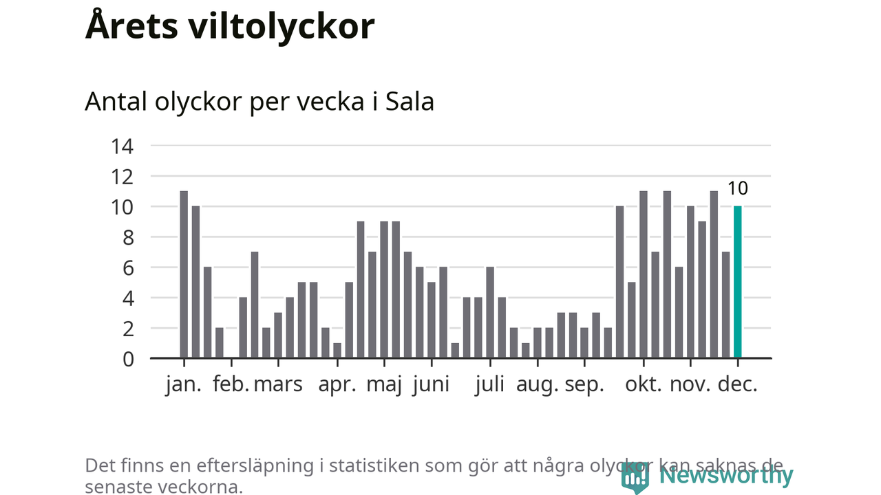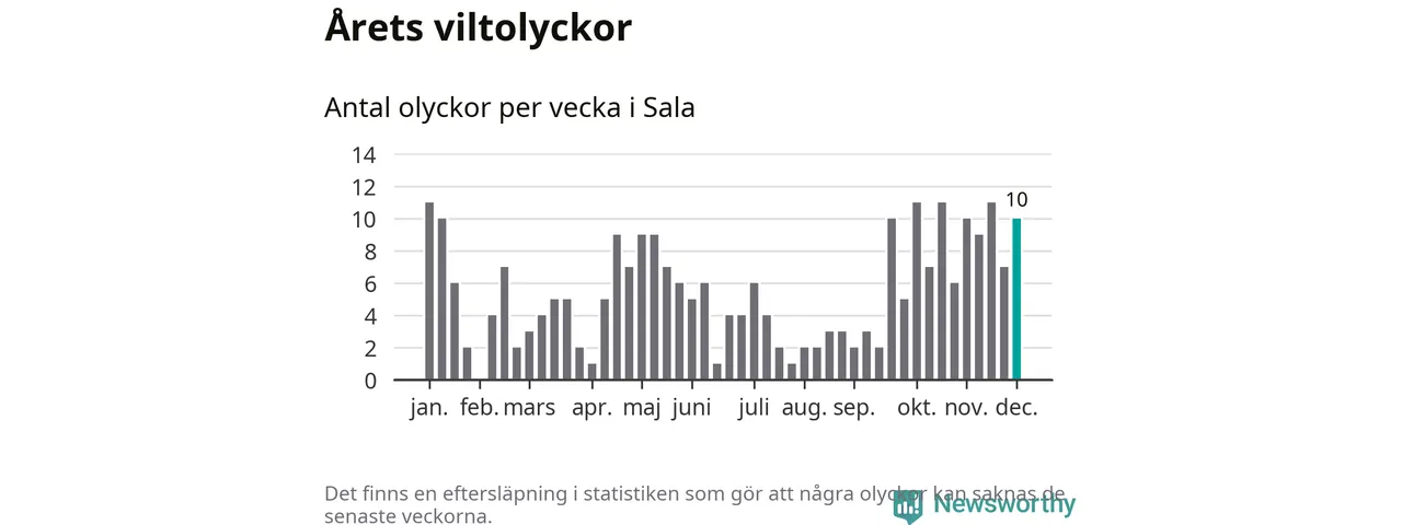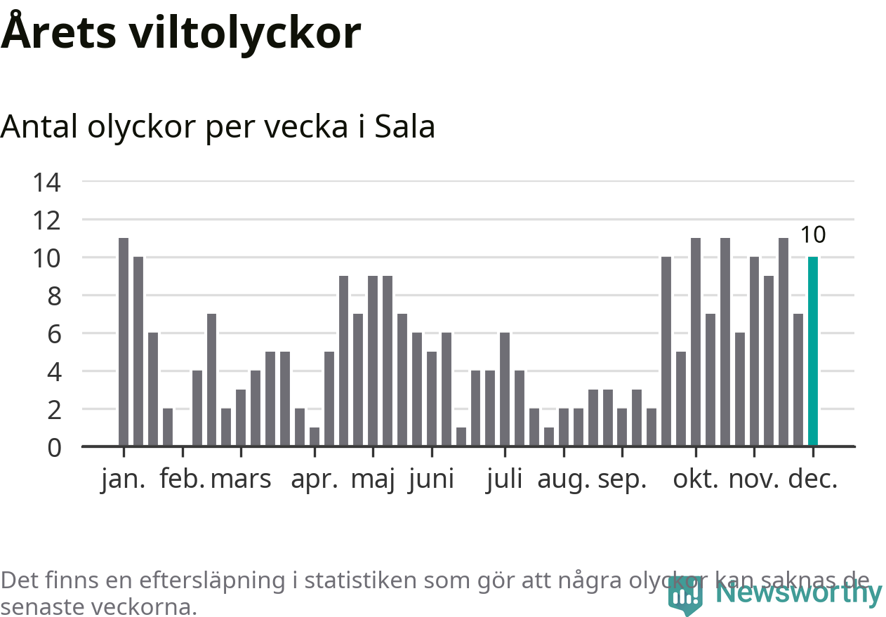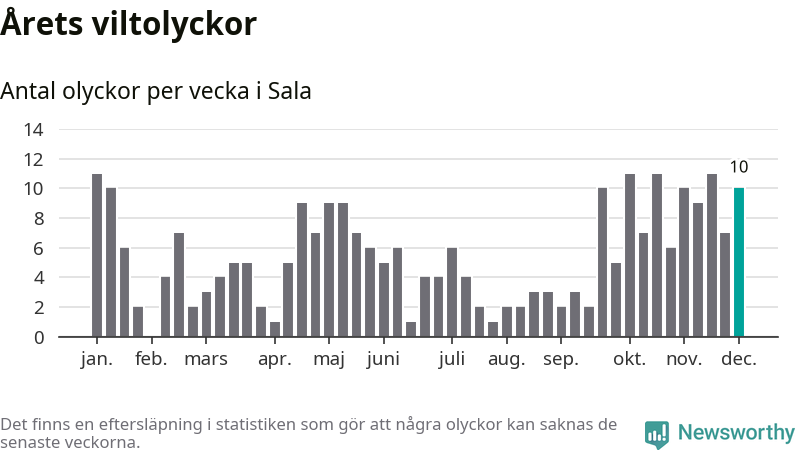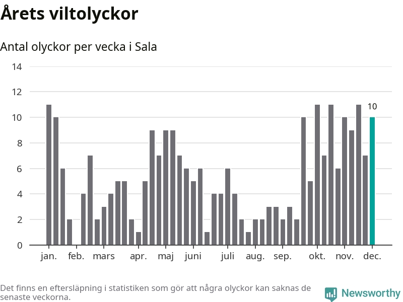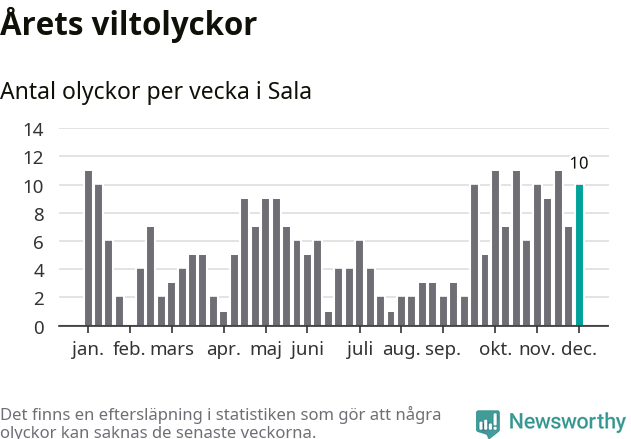 Tio olyckor på en enda vecka är också ovanligt många. Bara 17 gånger tidigare sedan 2015 har det skett