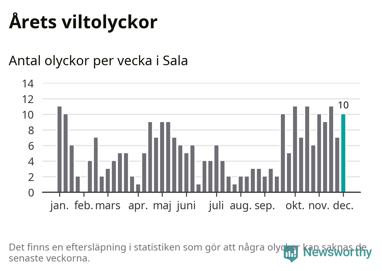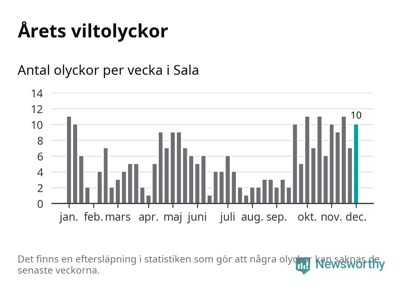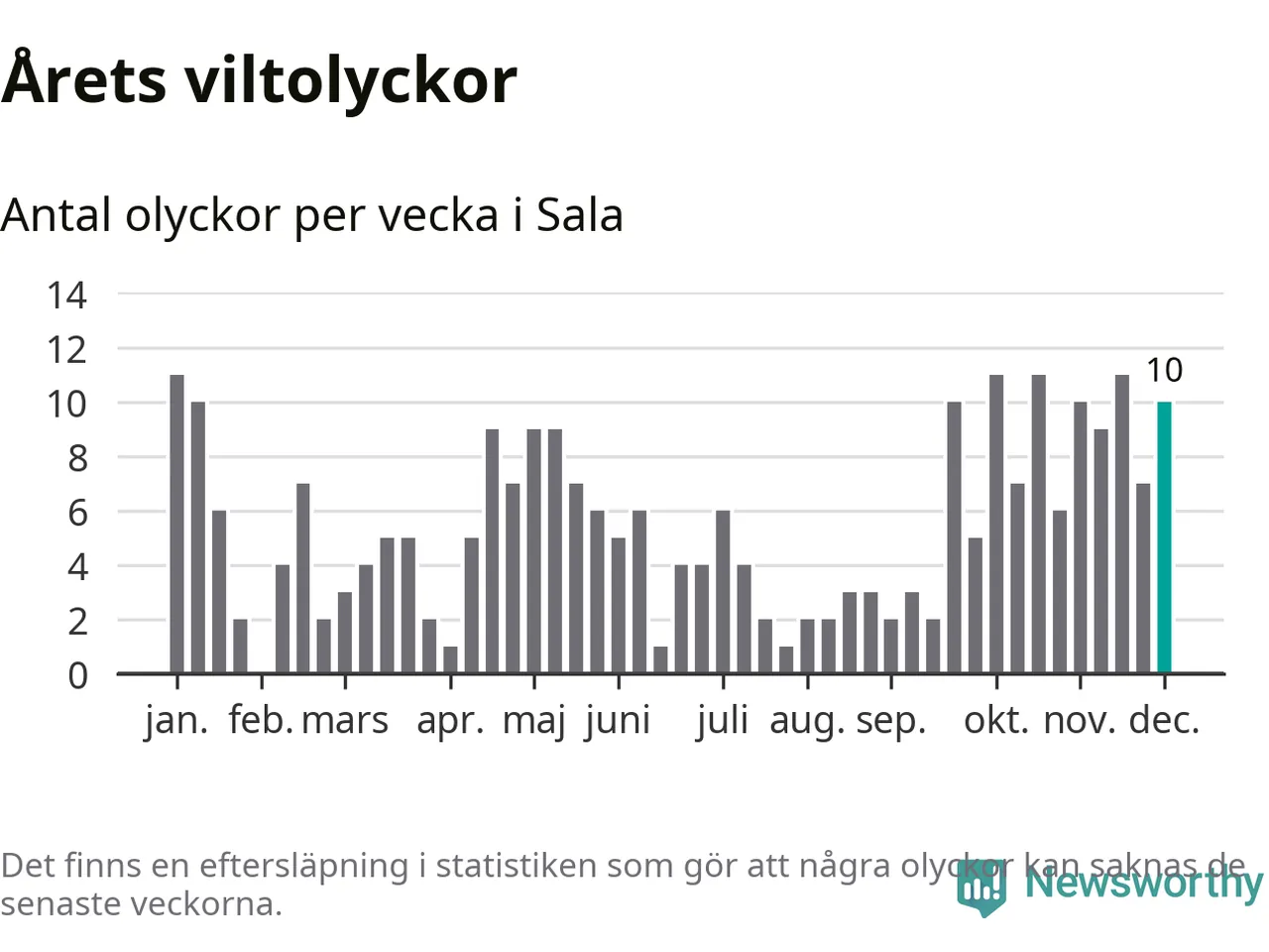 Tio olyckor på en enda vecka är också ovanligt många. Bara 17 gånger tidigare sedan 2015 har det skett