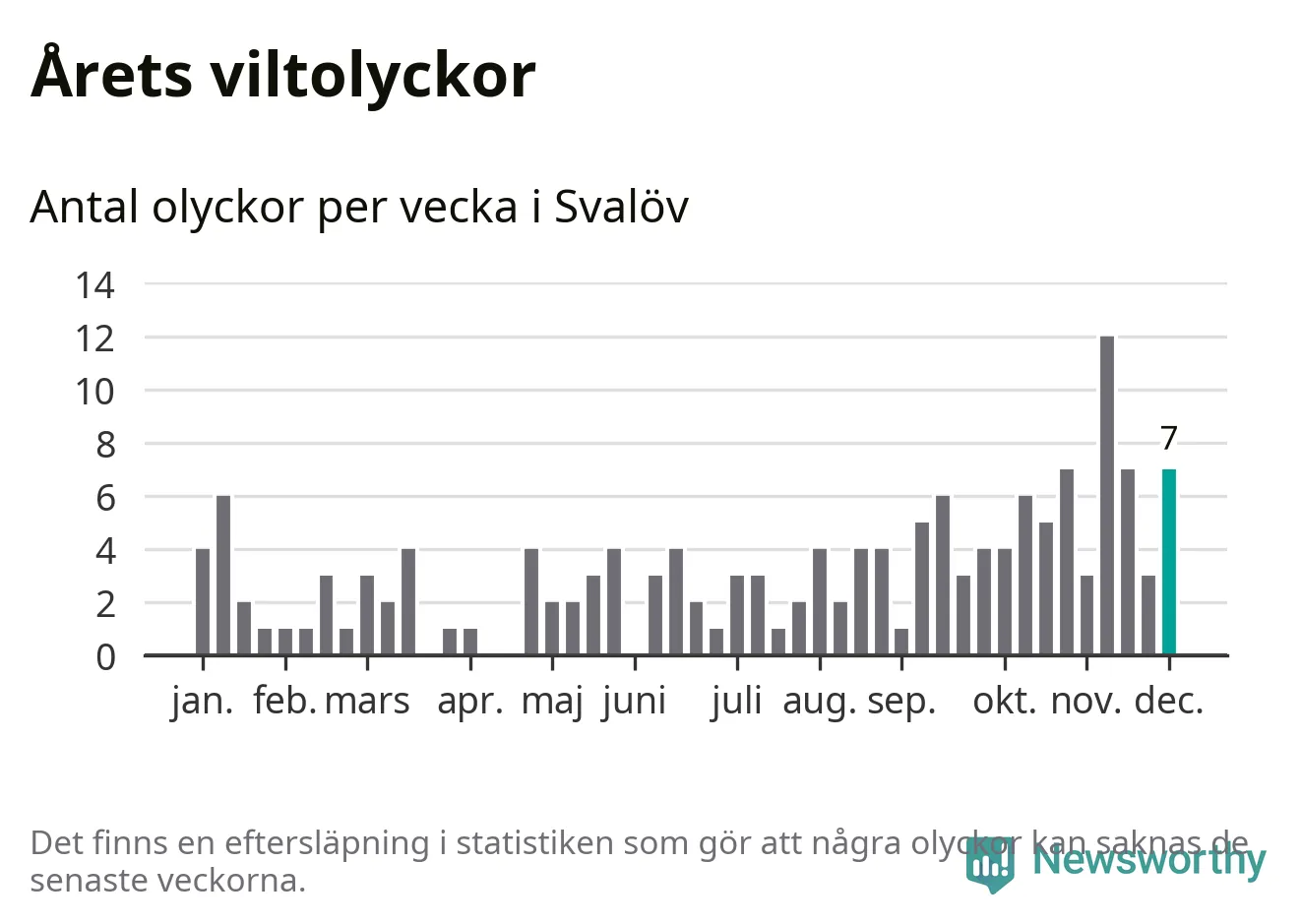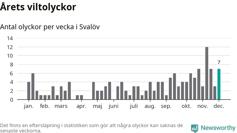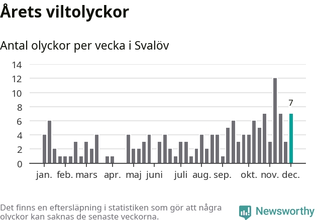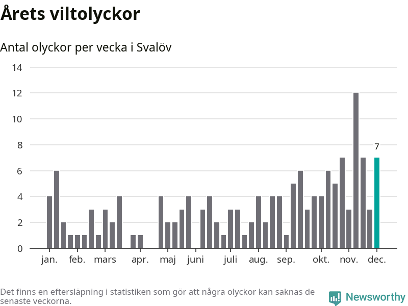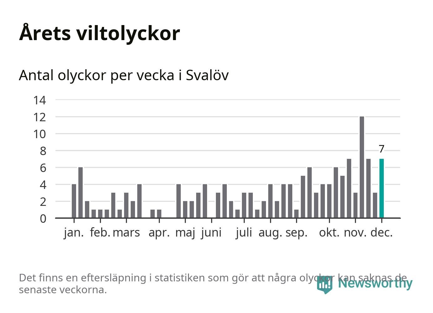 Sju olyckor på en enda vecka är däremot ovanligt många. Bara 18 gånger tidigare sedan 2015 har det skett