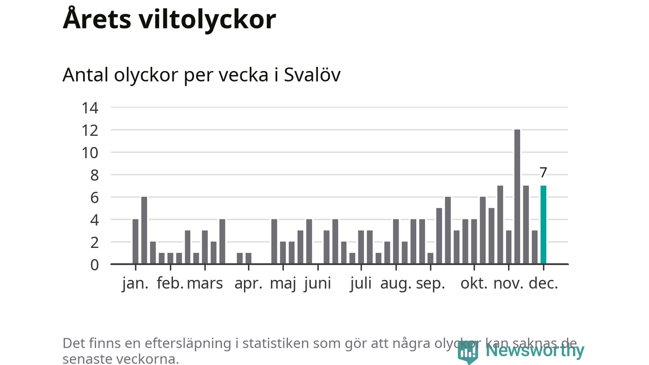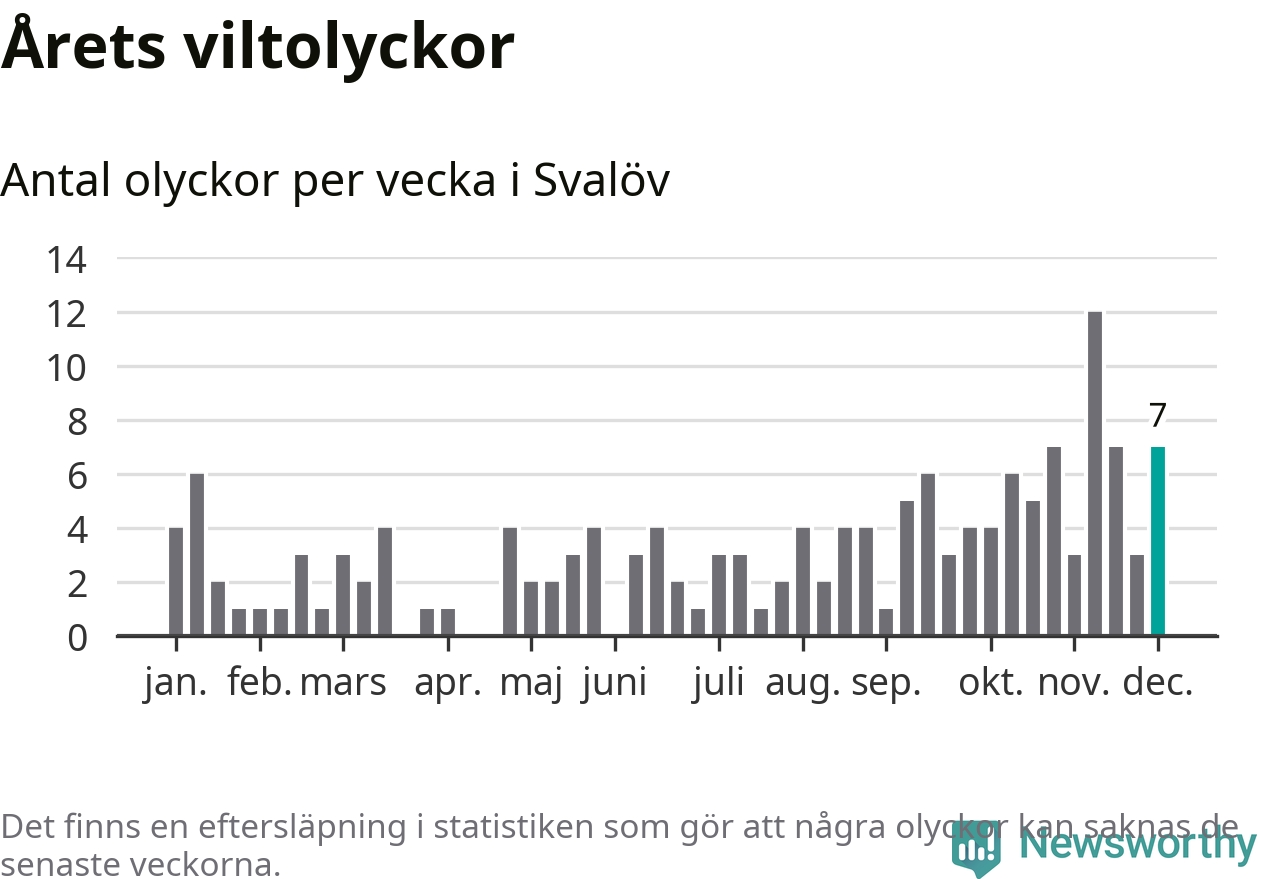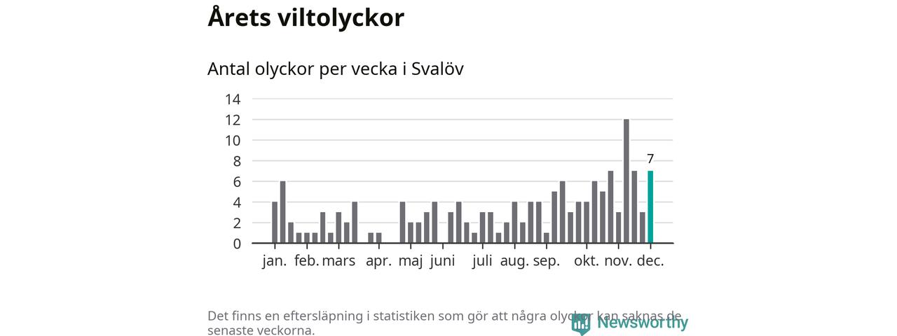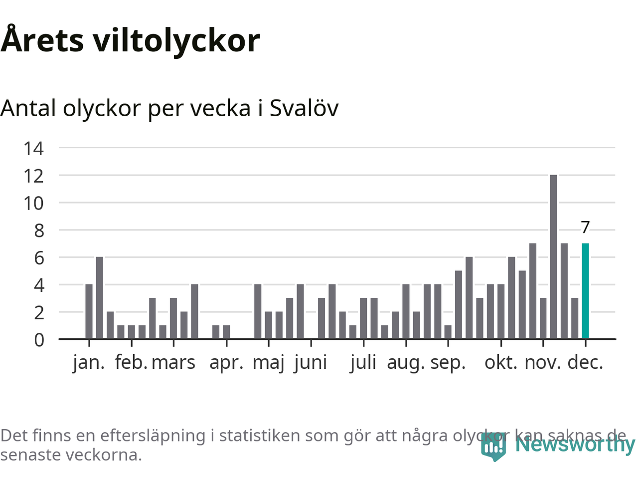 Sju olyckor på en enda vecka är däremot ovanligt många. Bara 18 gånger tidigare sedan 2015 har det skett